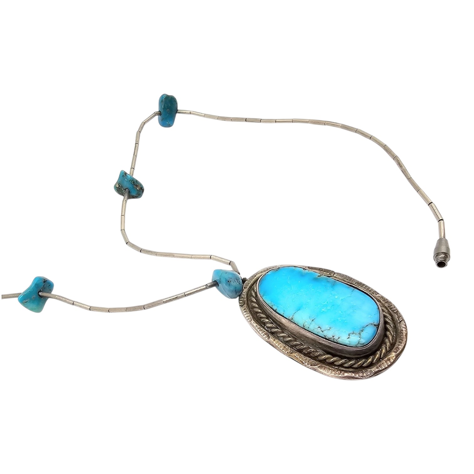 Navajo Turquoise Liquid Silver Sterling Silver Necklace 12.1 G