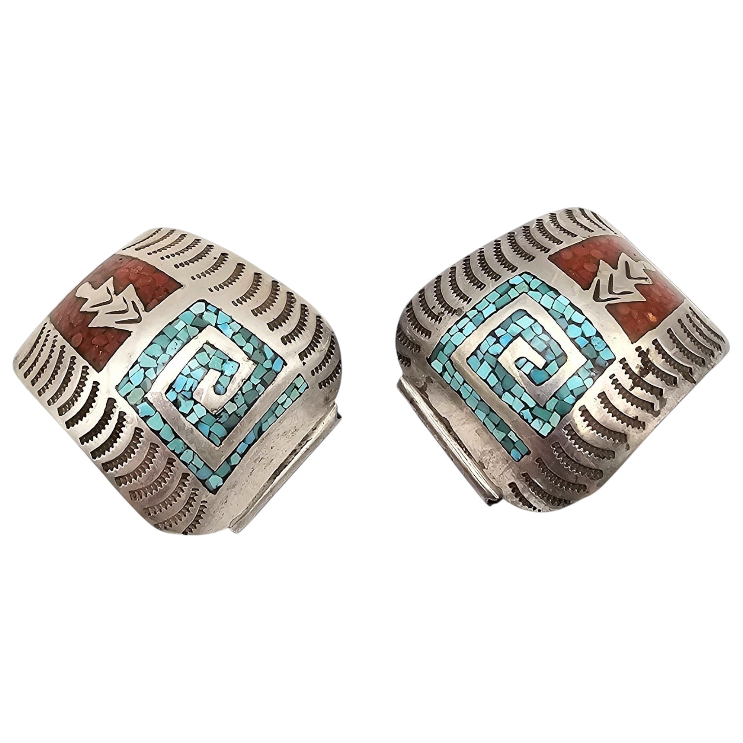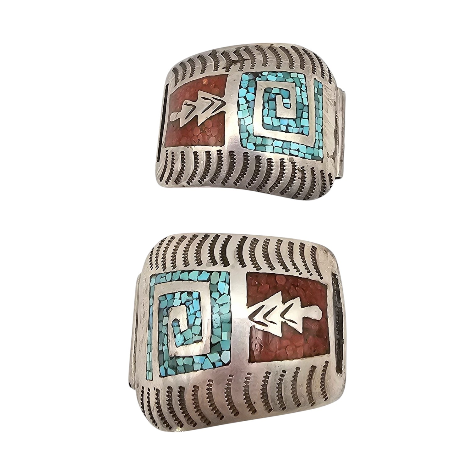 HB Native Crushed Turquoise Coral Sterling Silver Watch Band Pieces 29.6 G