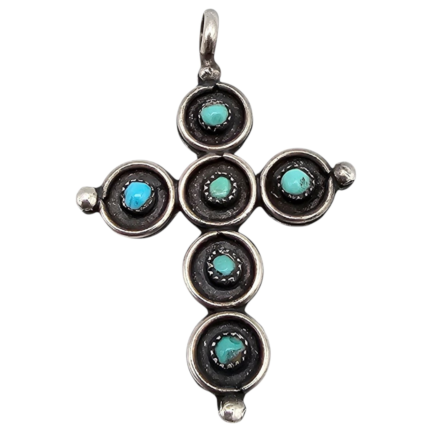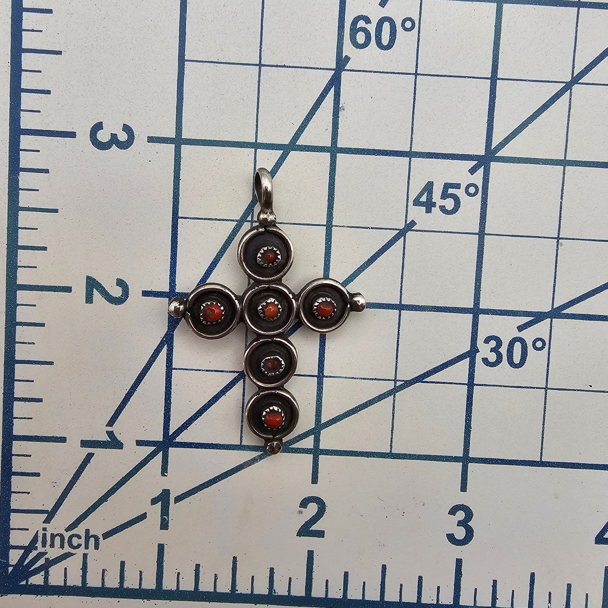 Navajo Coral Turquoise Sterling Silver Snake Eye Shadow Box Cross Pendant 5.6 G