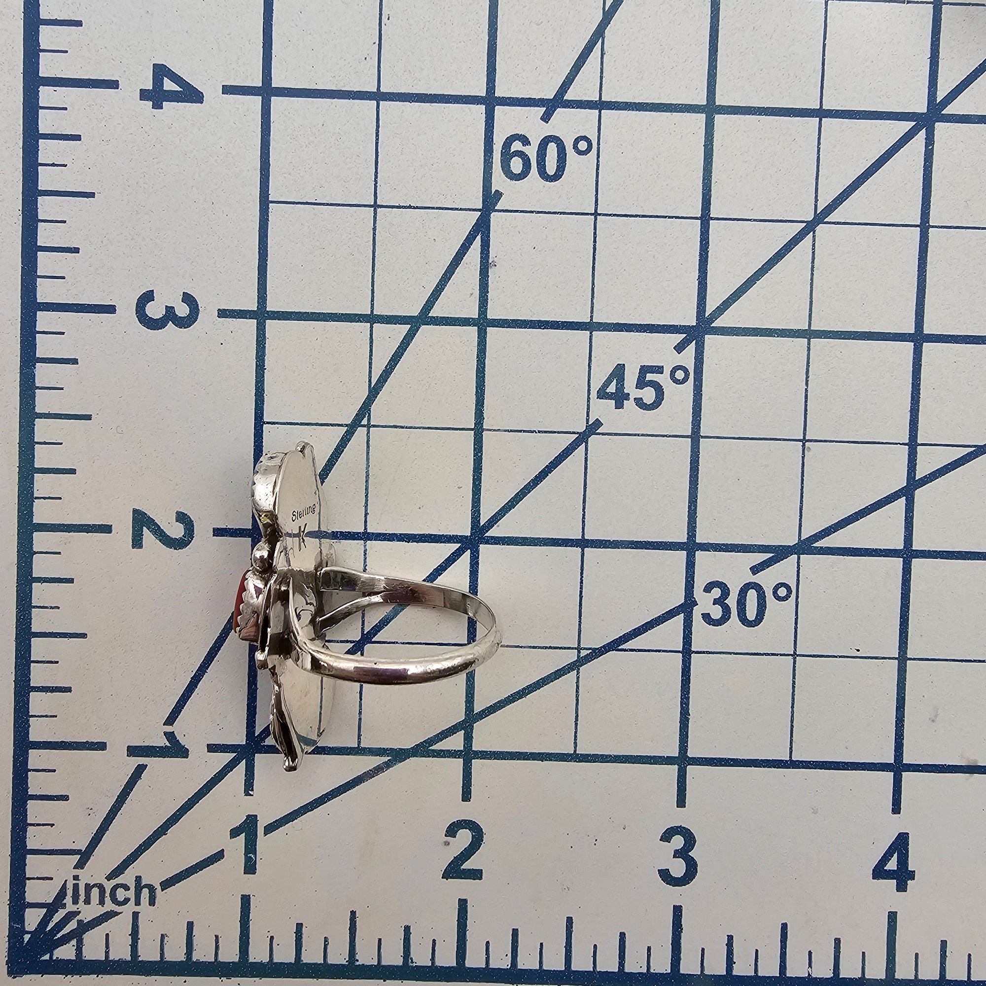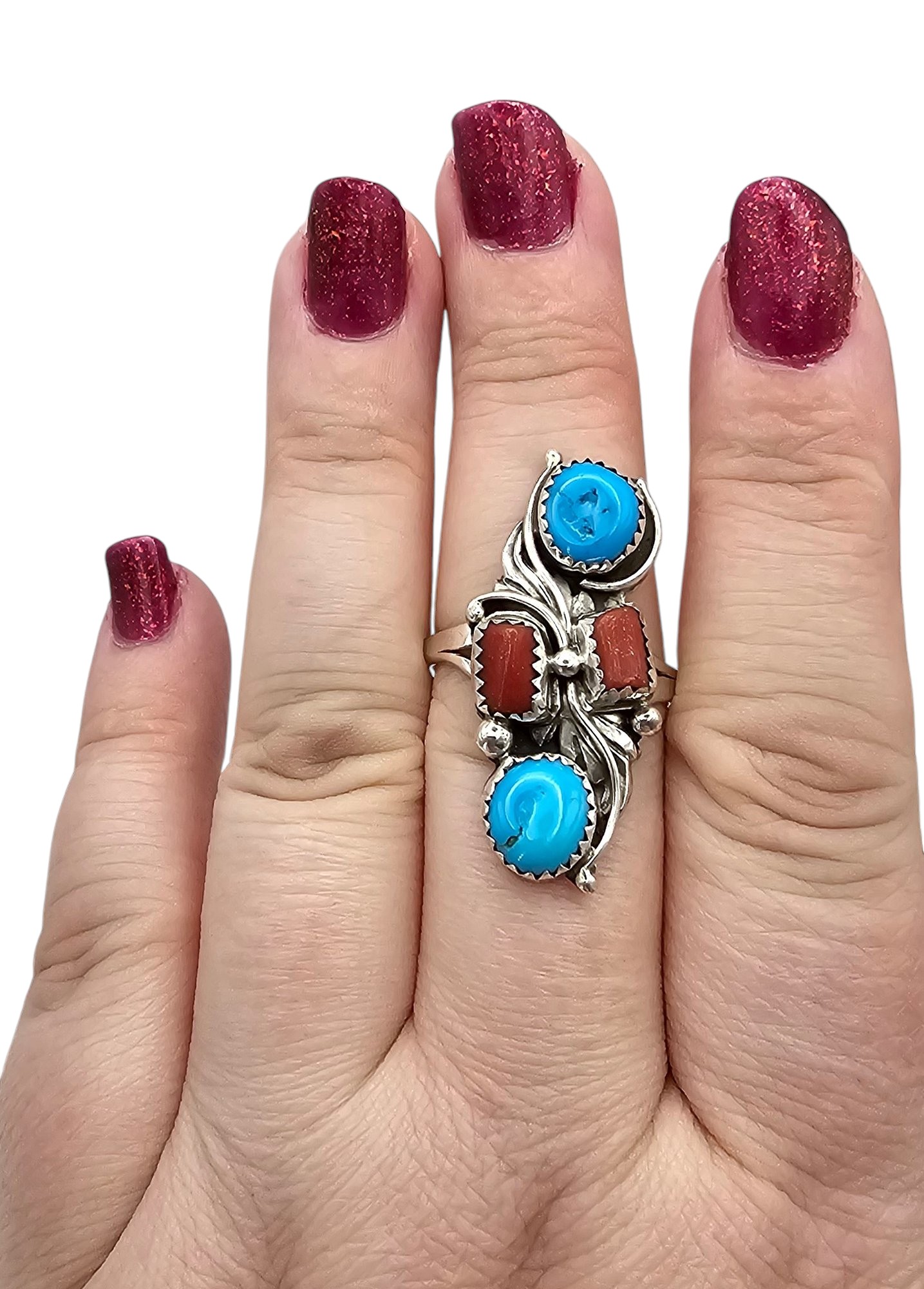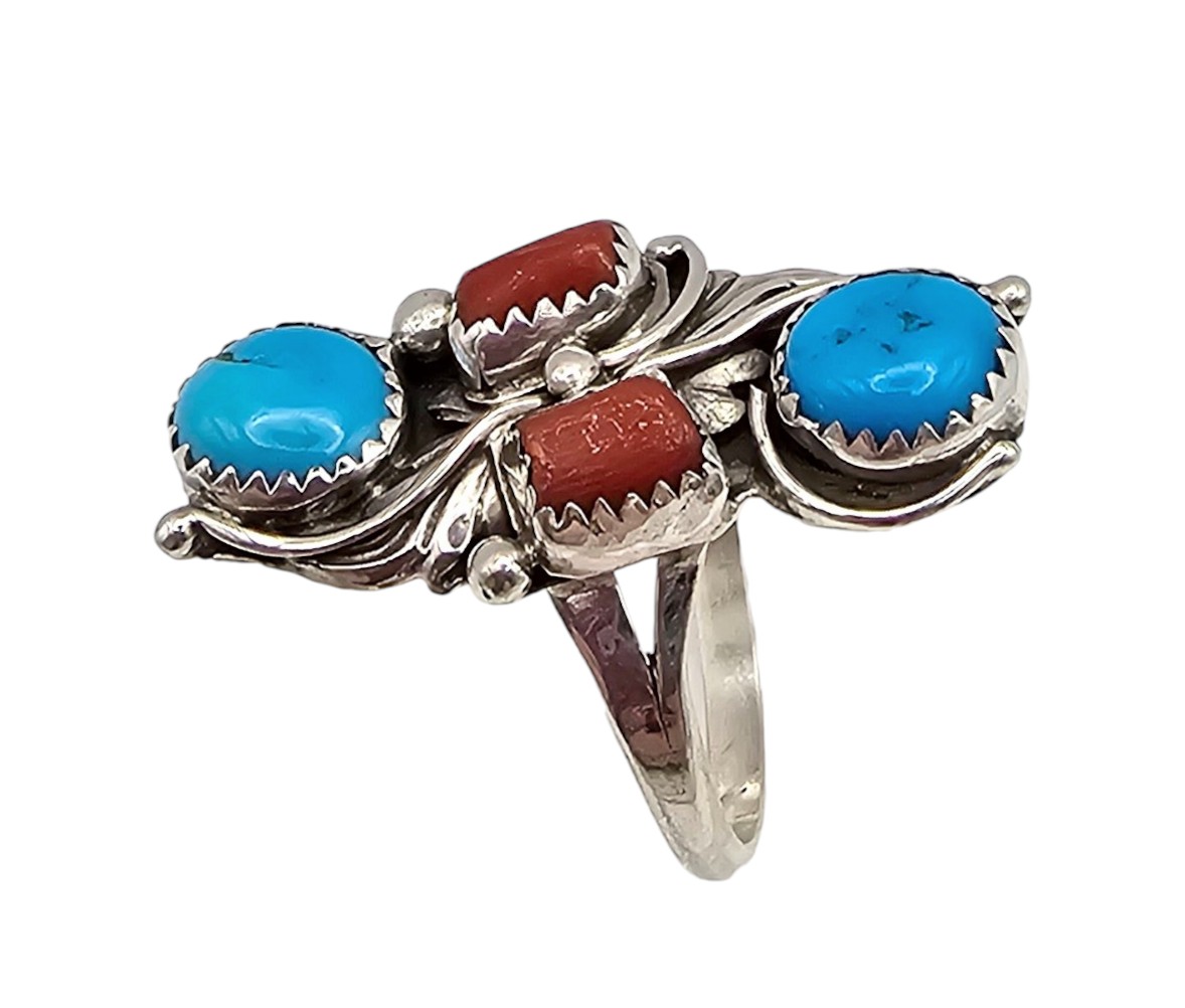 Jamison Kee Navajo Double Turquoise Coral Sterling Silver Ring Size 10.25 6.5 G