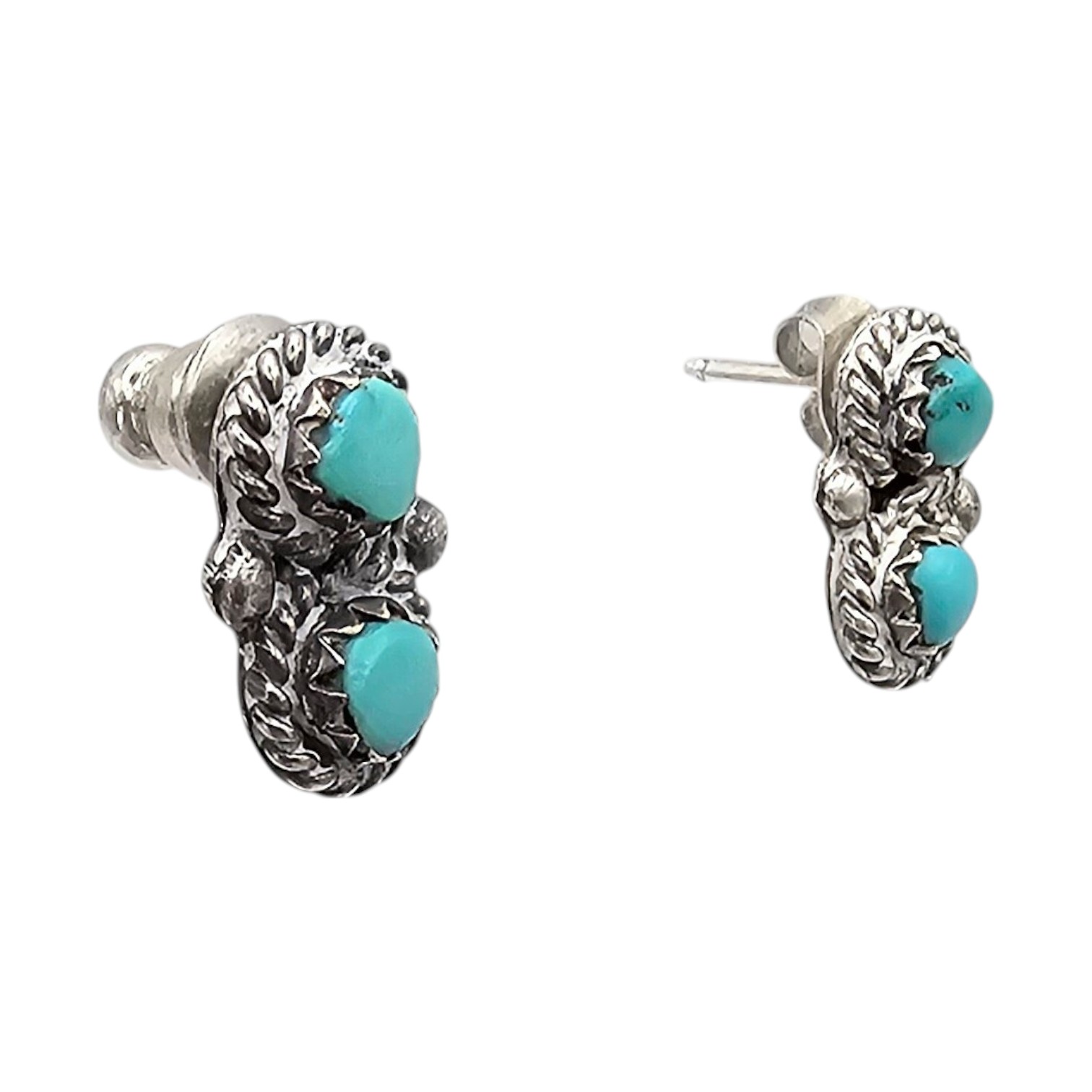 Navajo Turquoise Sterling Silver Earrings 2.1 G