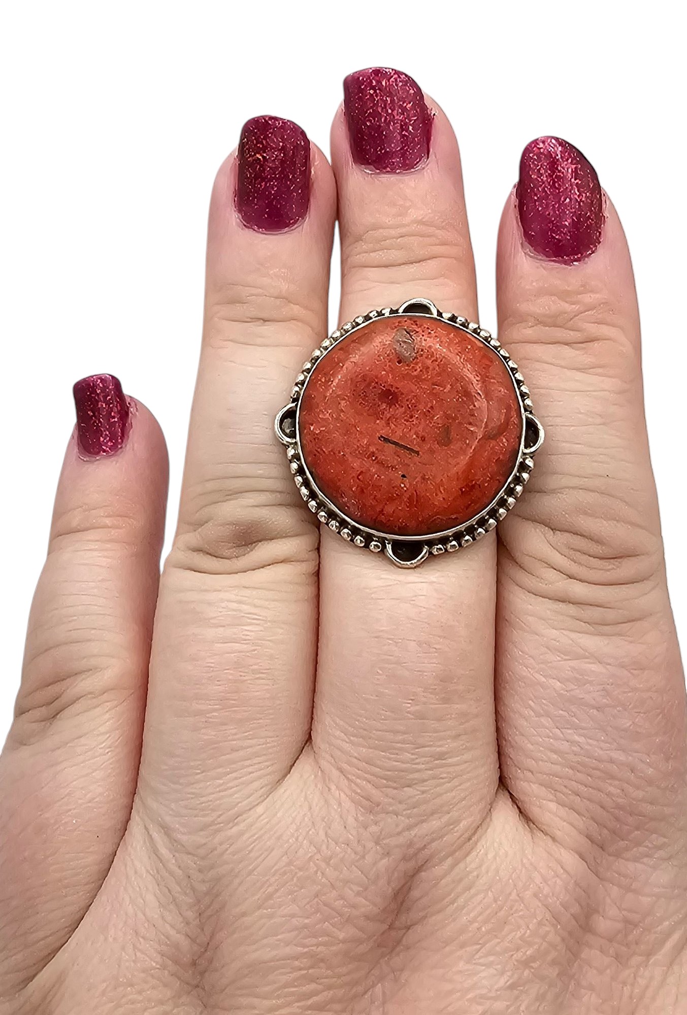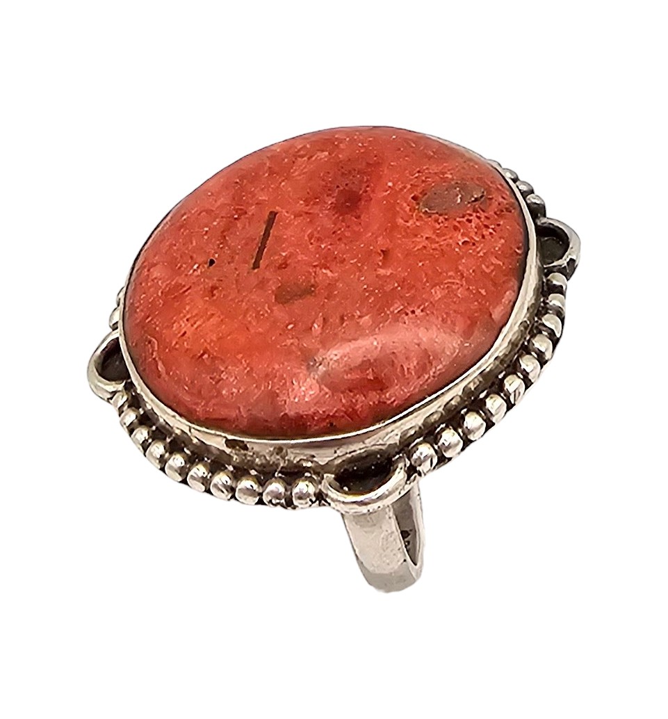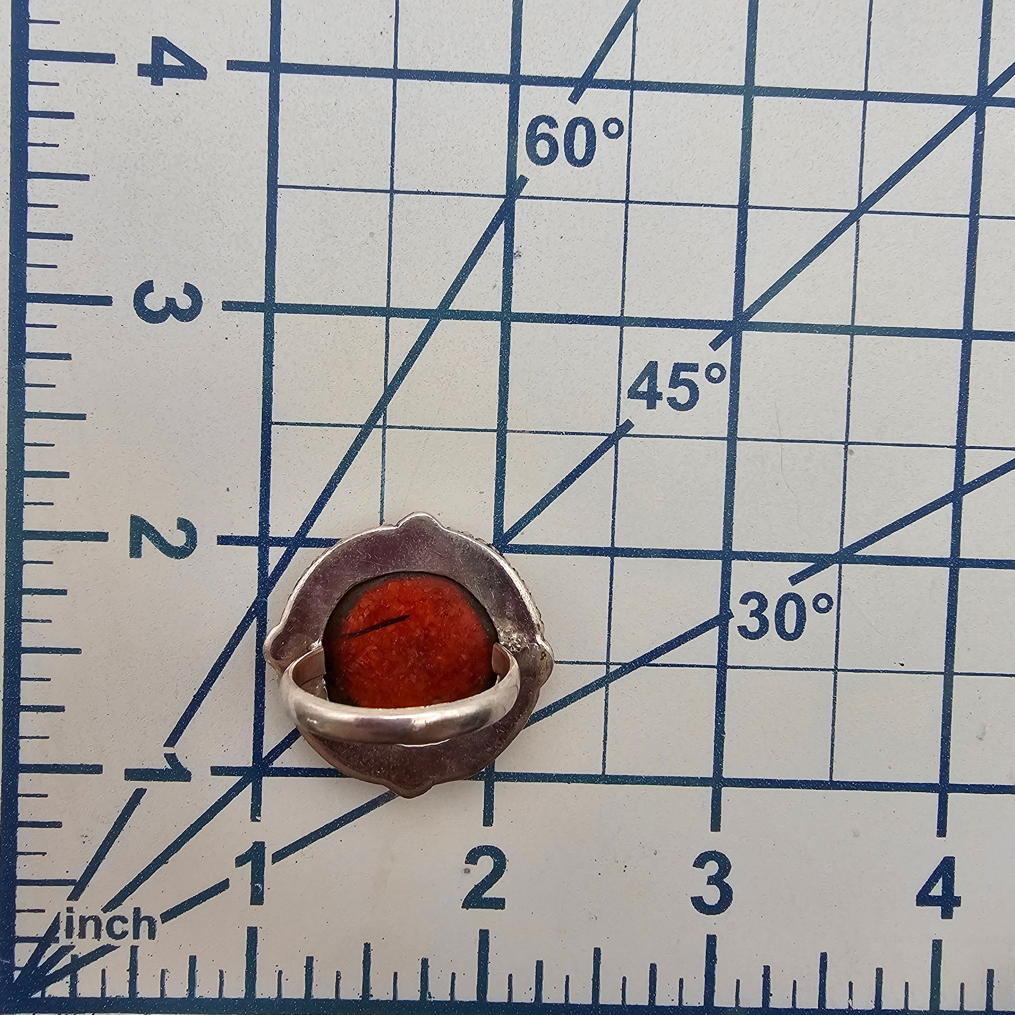 Southwestern Coral Sterling Silver Ring Size 7 9.4 G