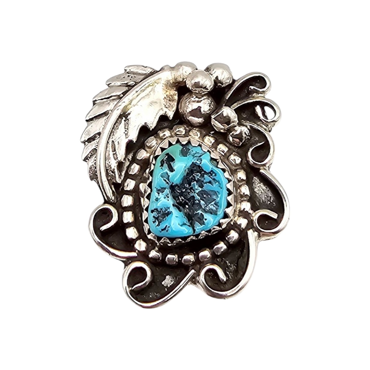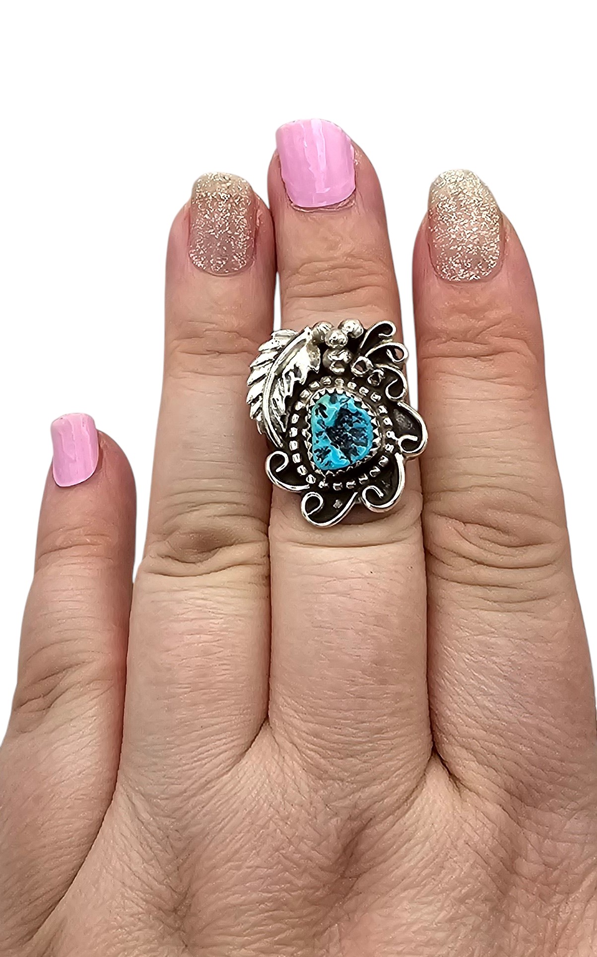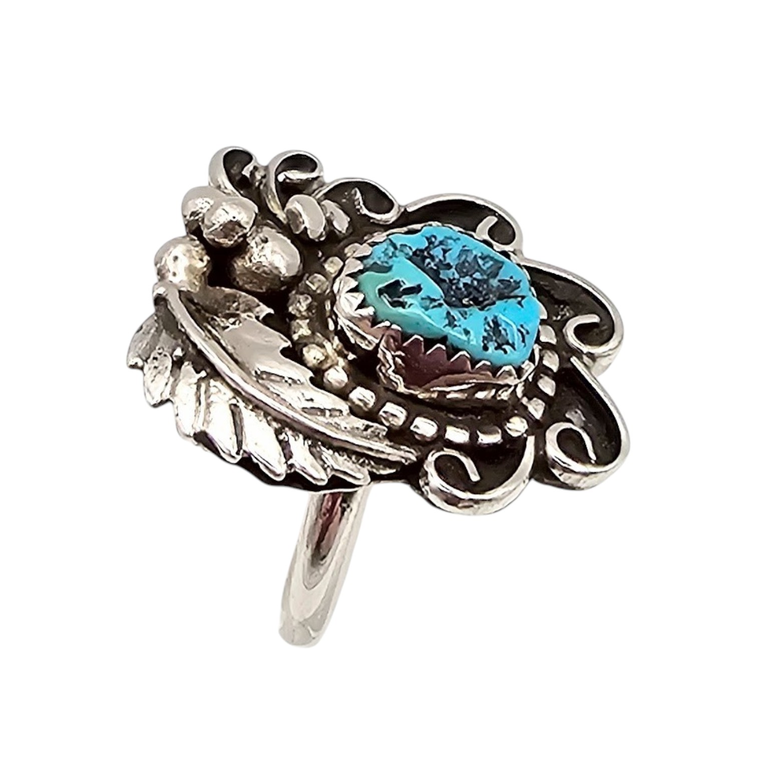 Navajo Turquoise Sterling Silver Leaf Design Ring Size 8 7.8 G