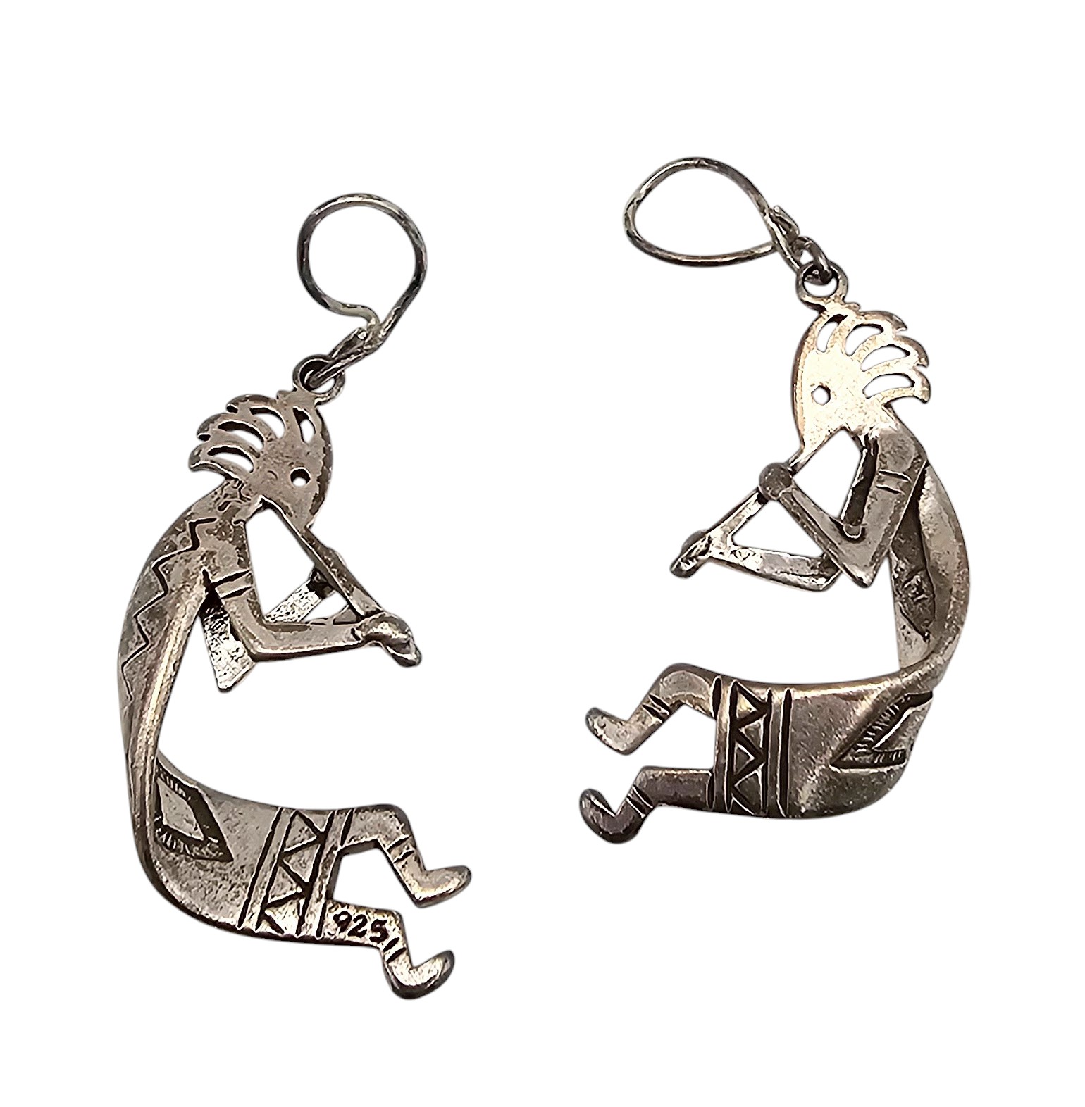 Southwestern Sterling Silver Kokopelli Drop Dangle Earrings 7.8 G