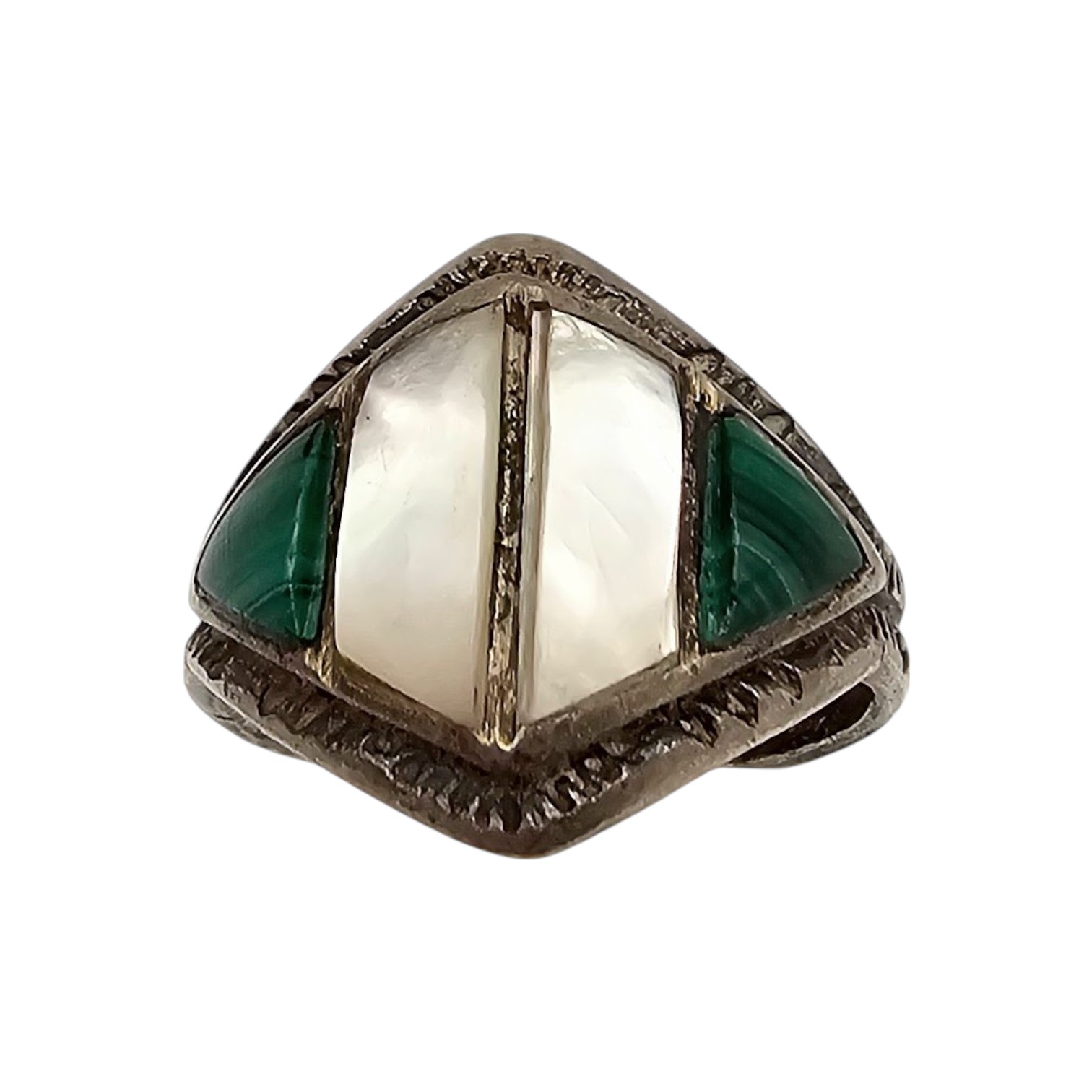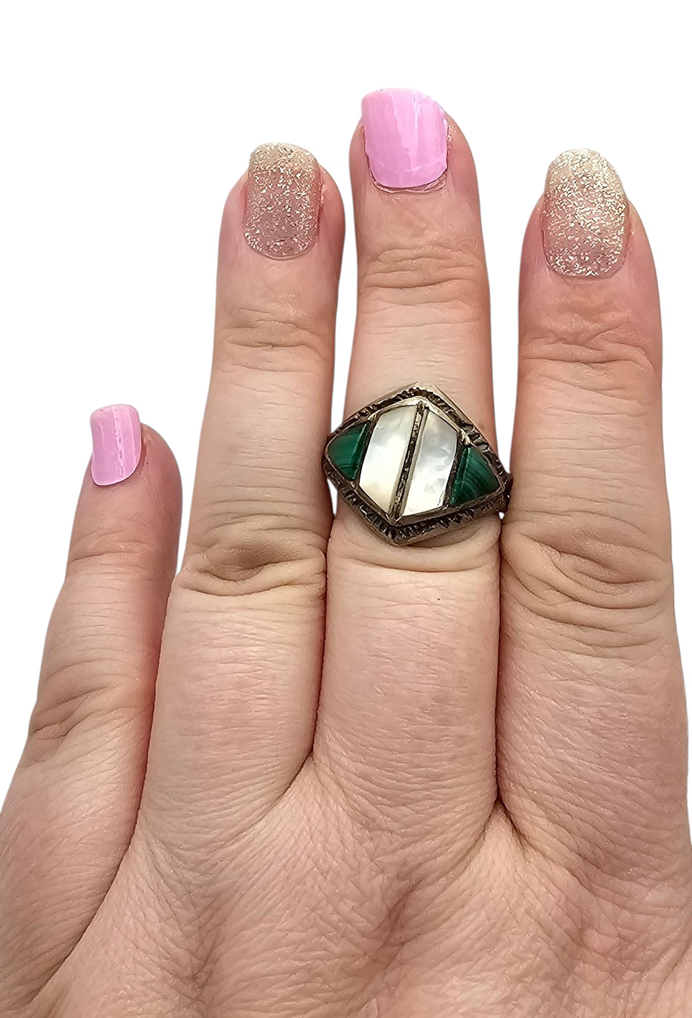 Navajo Mother of Pearl Malachite Sterling Silver Ring Size 9.75 7.7 G