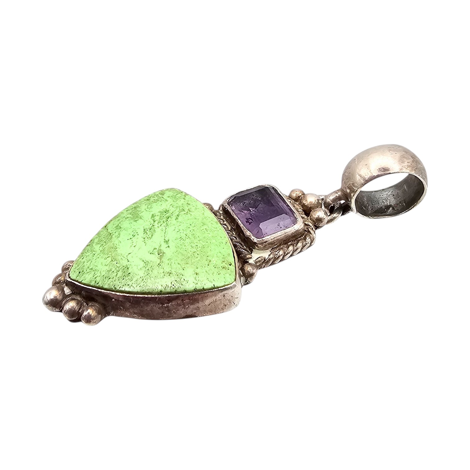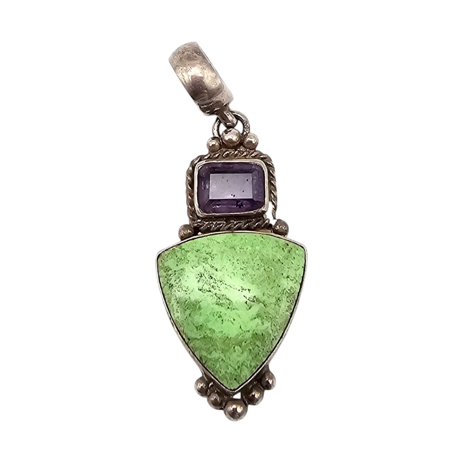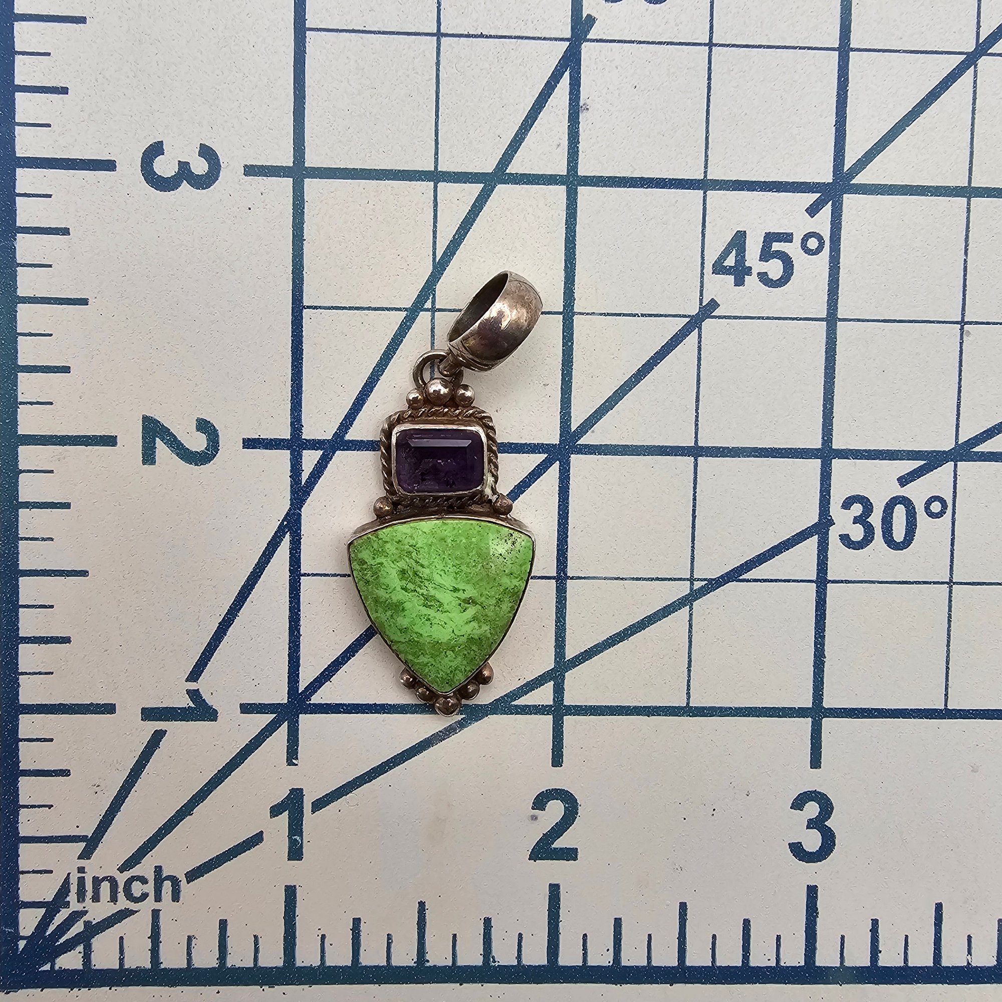 Southwestern Amethyst Turquoise Sterling Silver Pendant 6.1 G