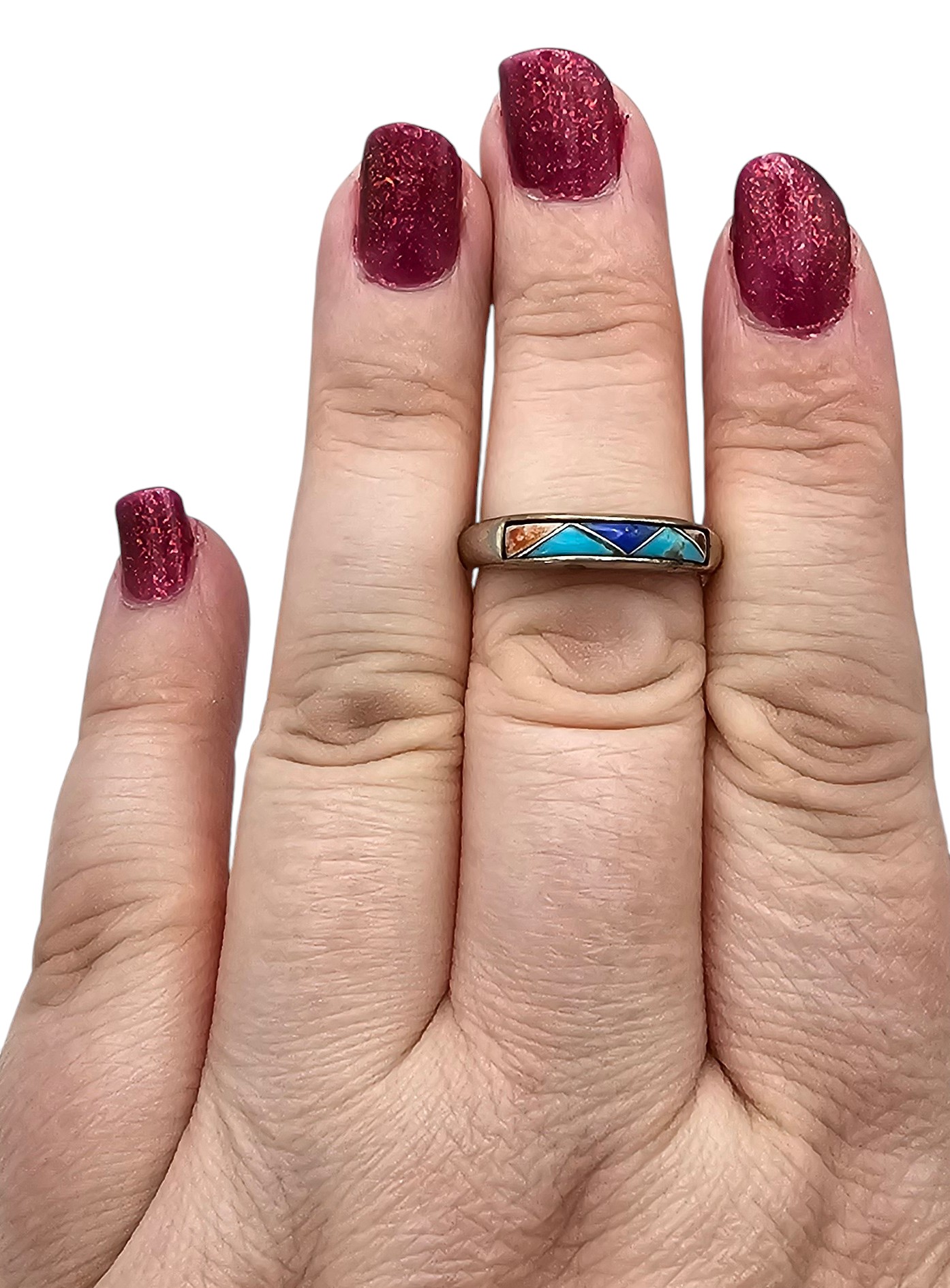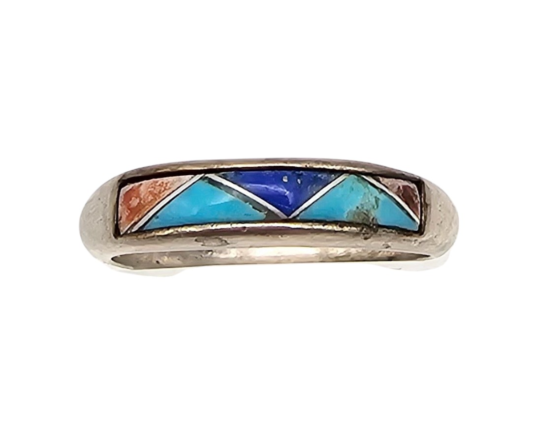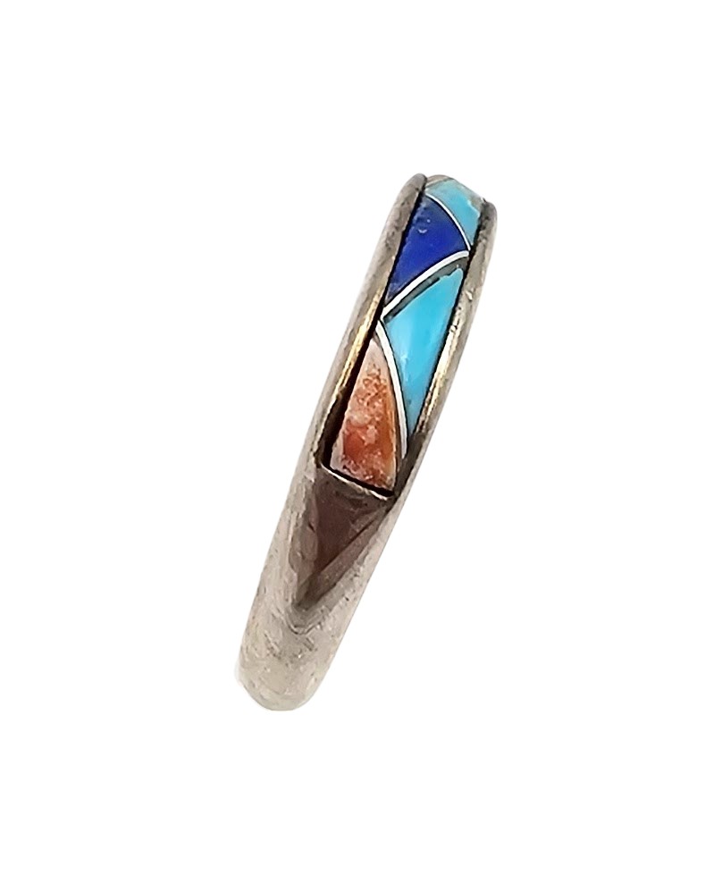 Southwestern Coral Turquoise Lapis Sterling Silver Ring Size 7.75 3.4 G