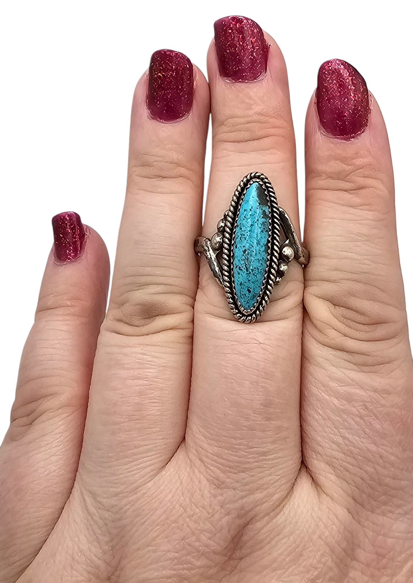 Southwestern Turquoise Sterling Silver Ring Size 8.75 6.2 G