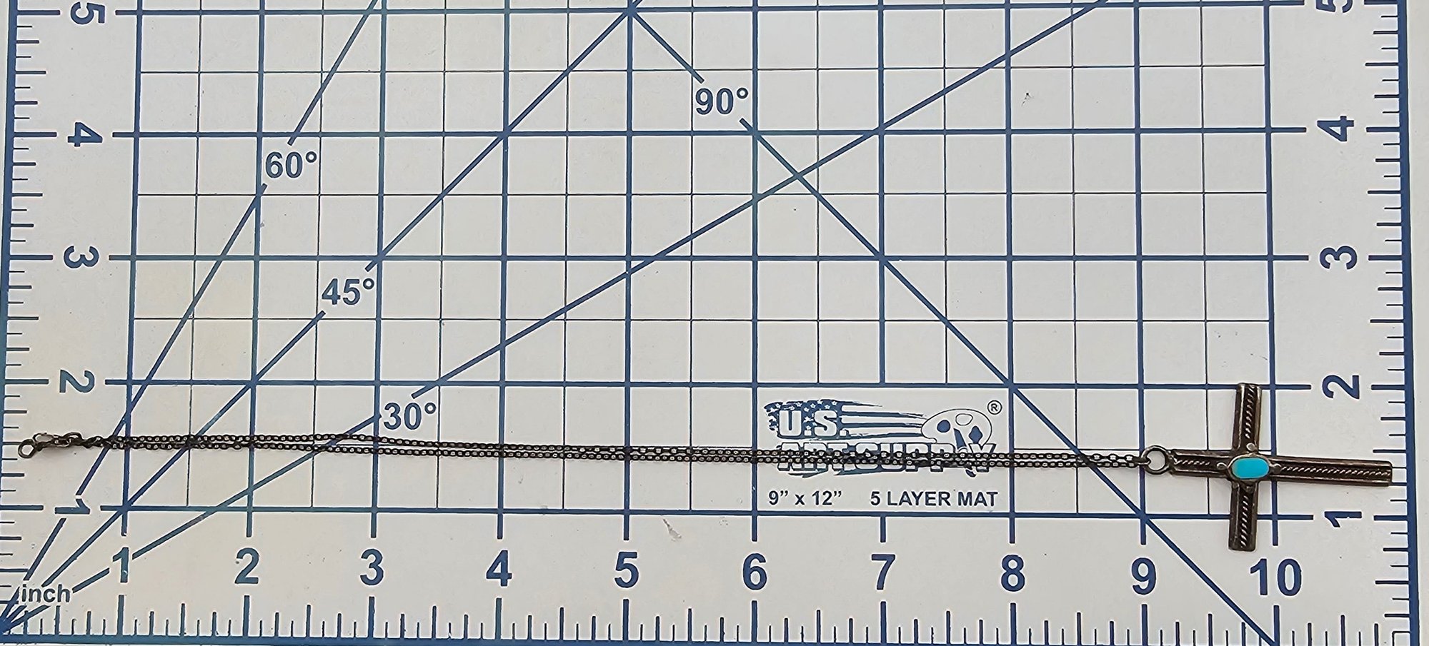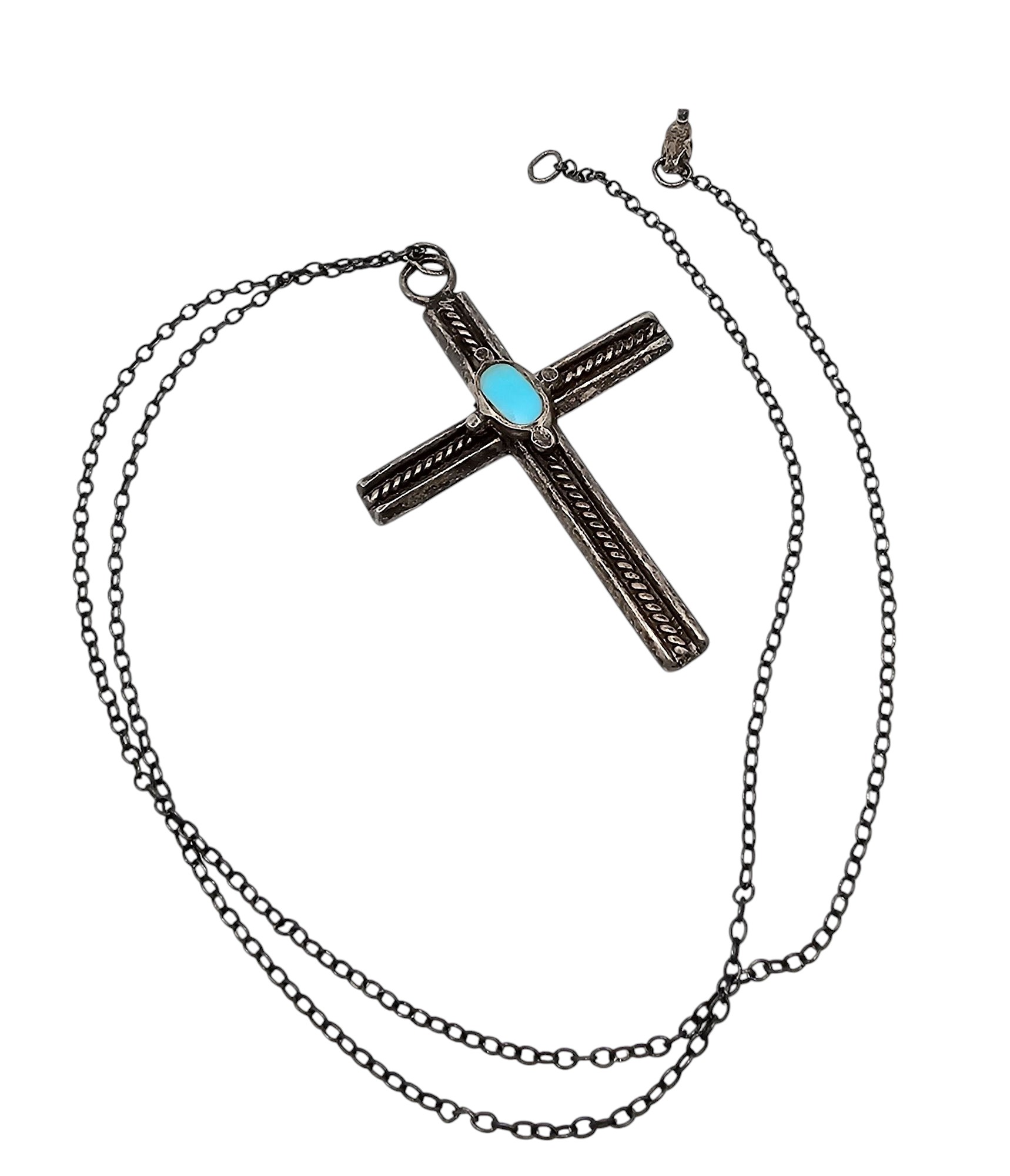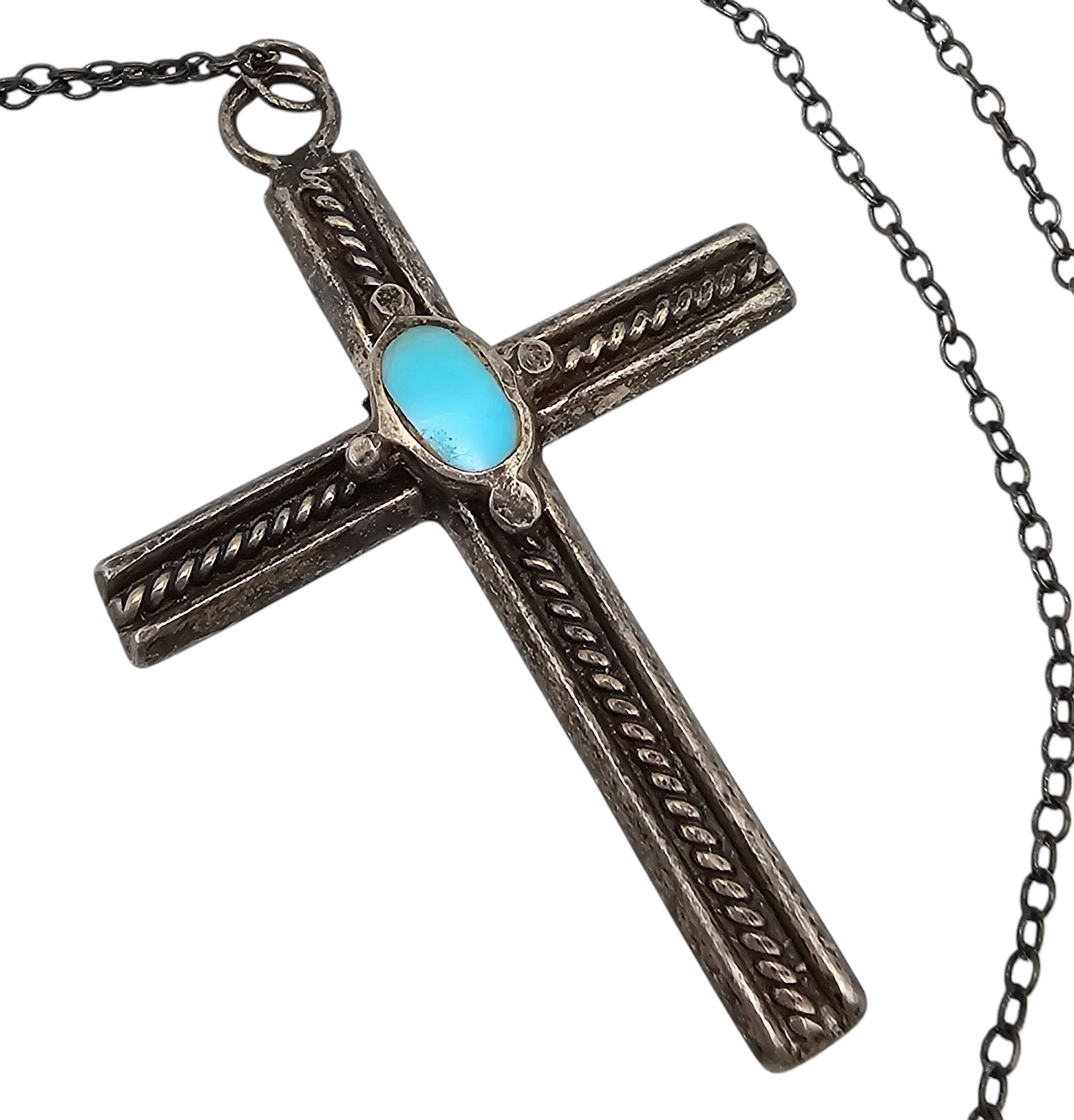 Navajo Turquoise Sterling Silver Cross Pendant Necklace 7.5 G