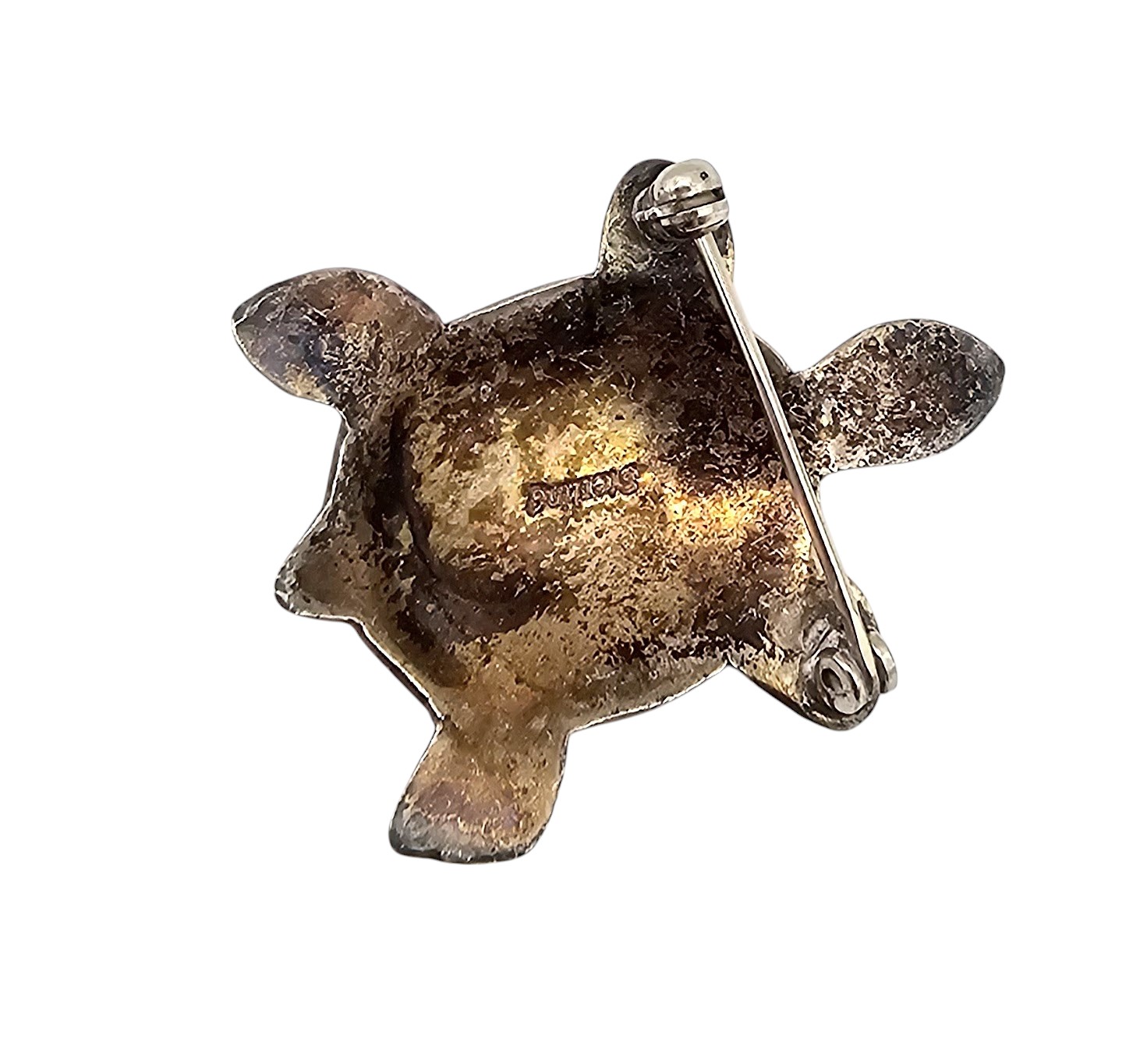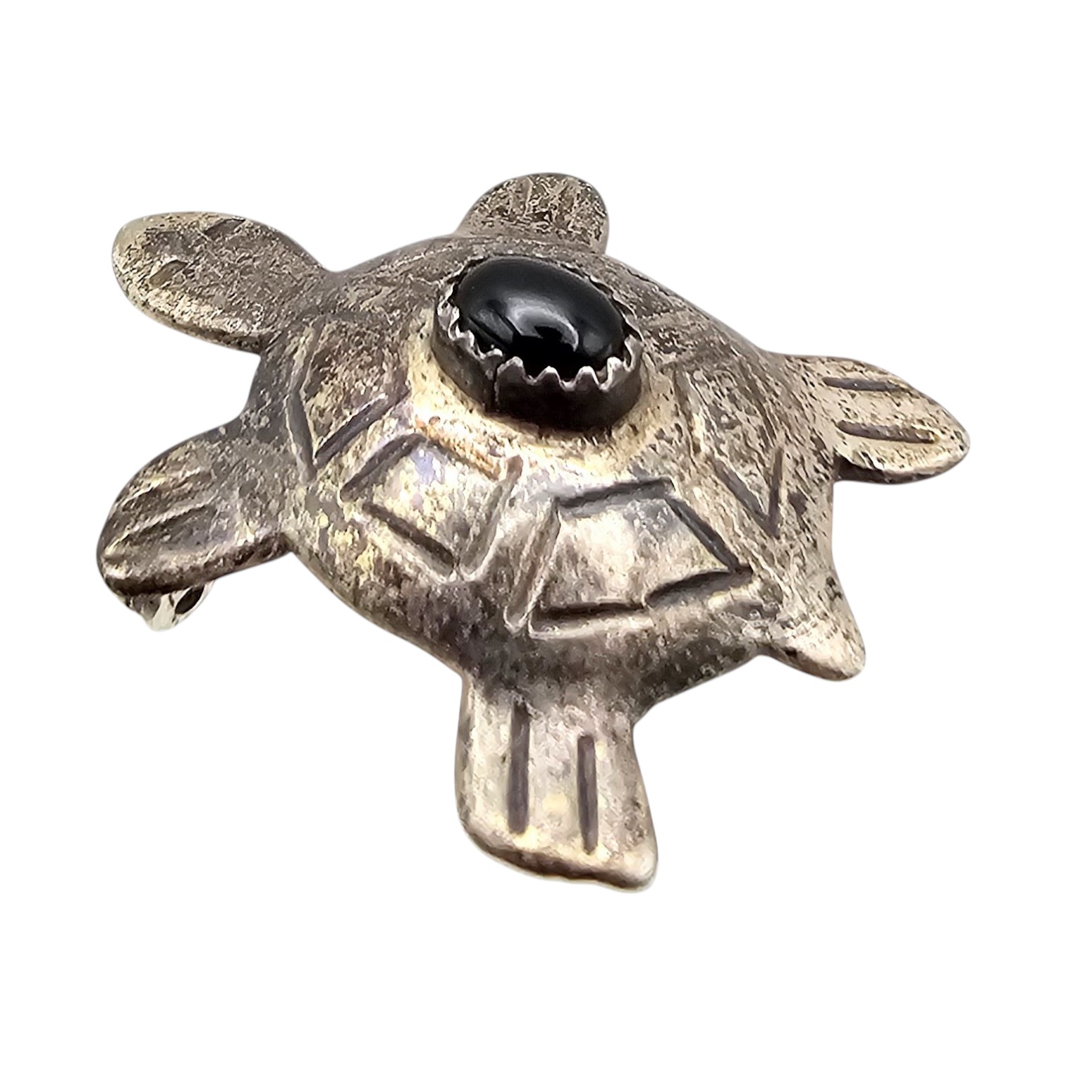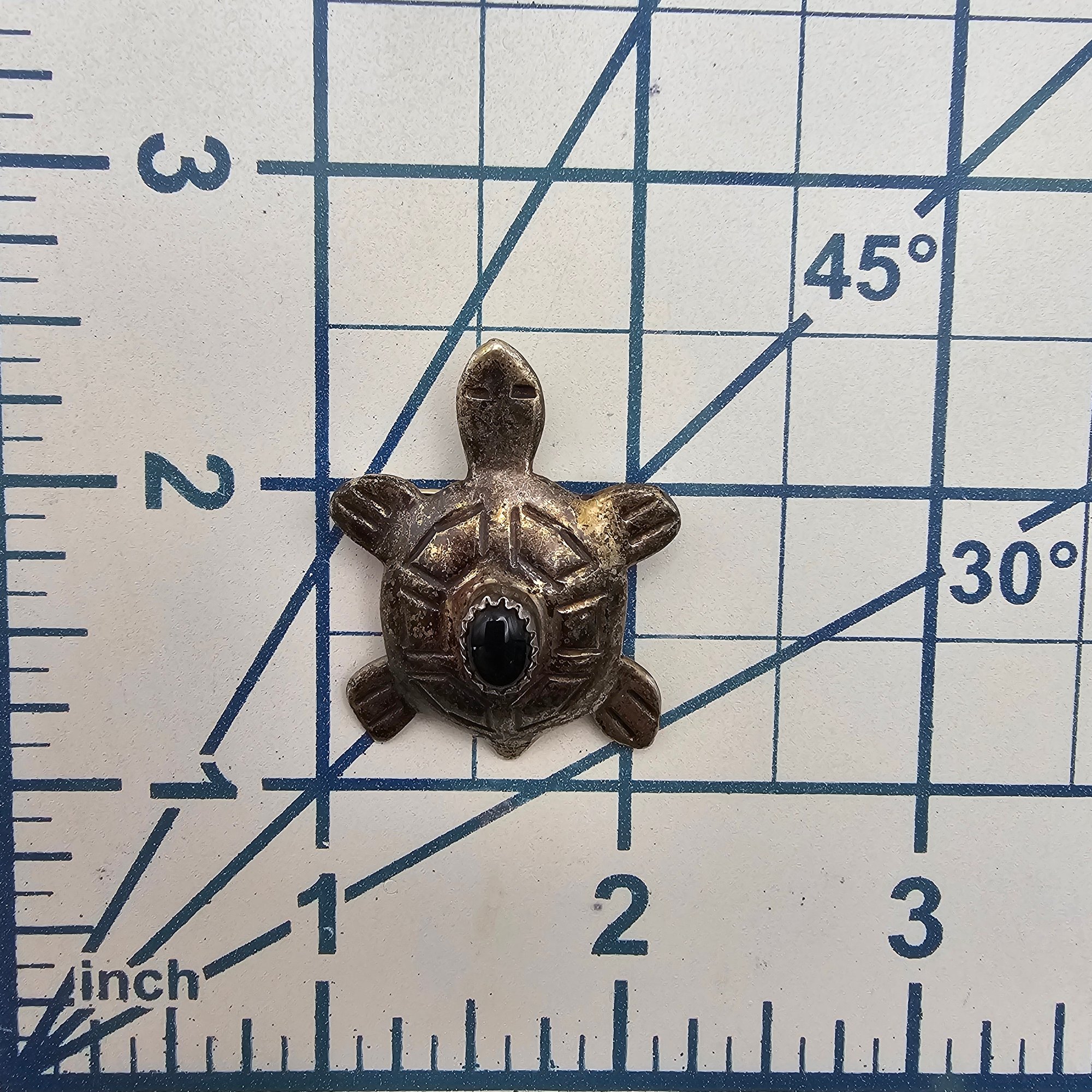 Southwestern Onyx Sterling Silver Turtle Brooch 6.9 G