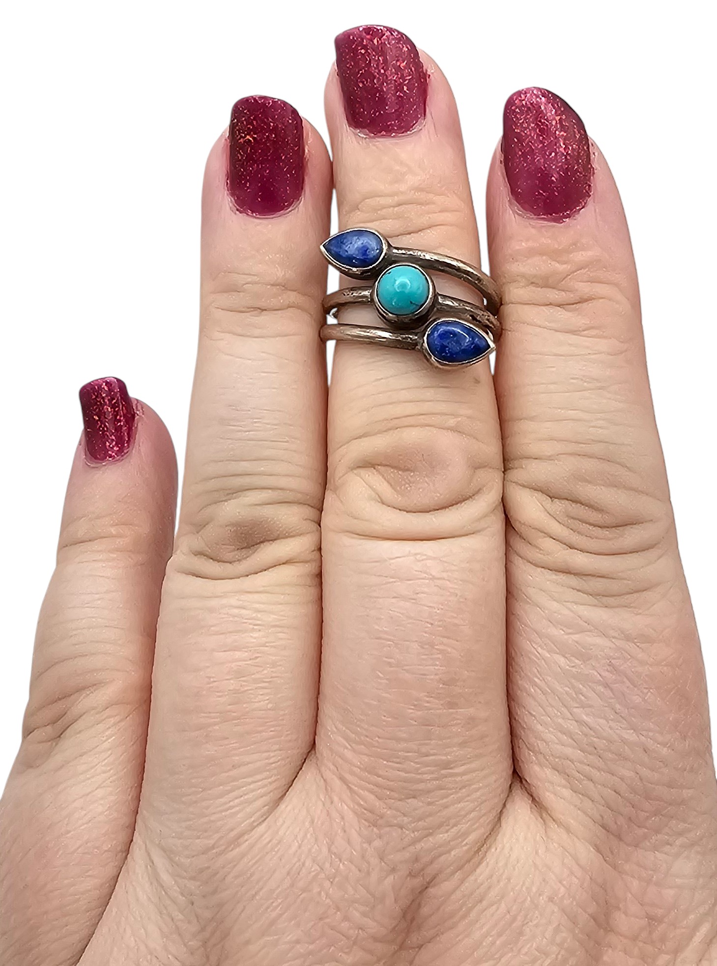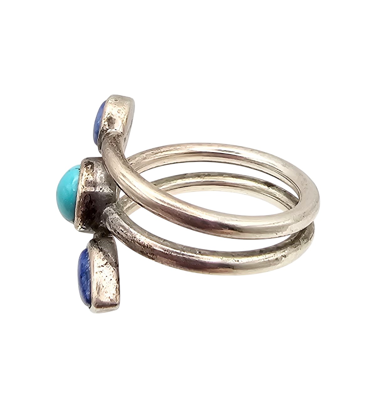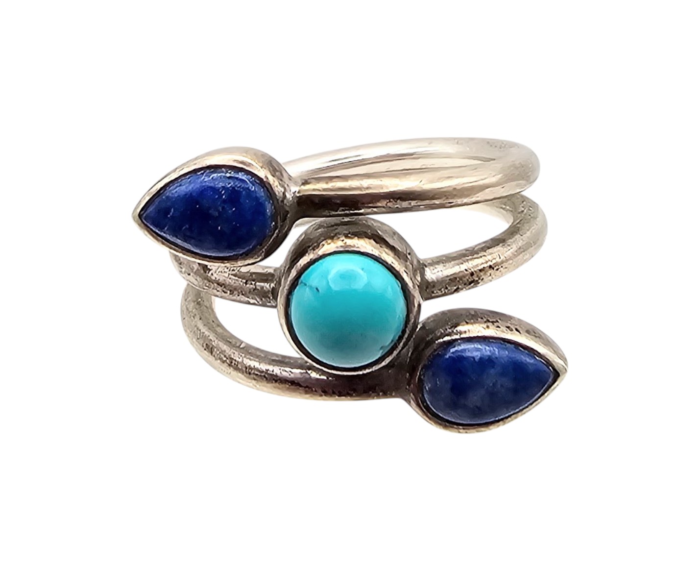 WK Southwestern Turquoise Lapis Sterling Silver Ring Size 6 5.6 G