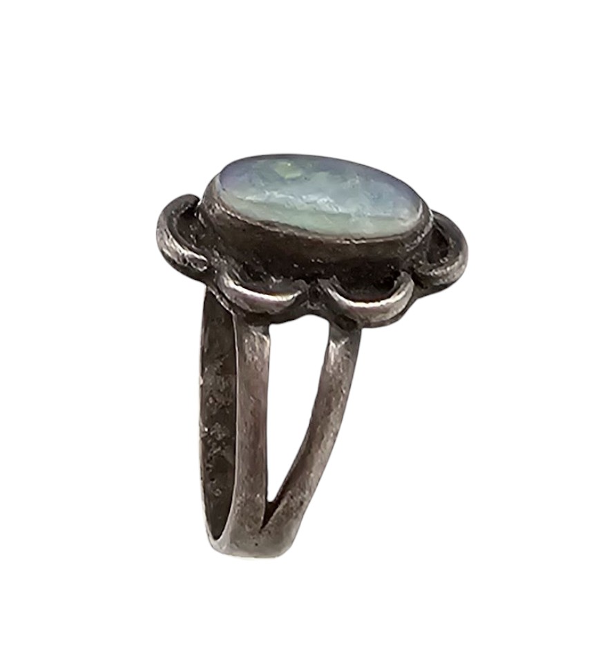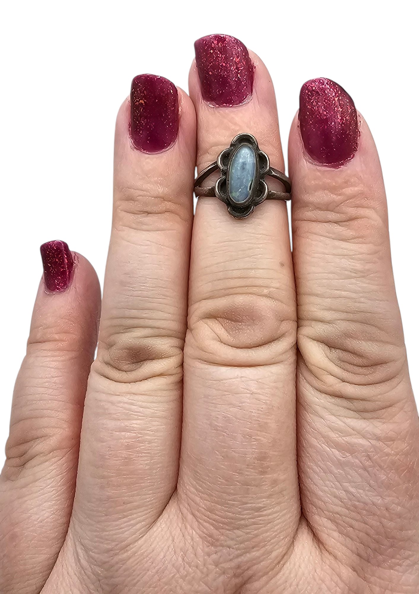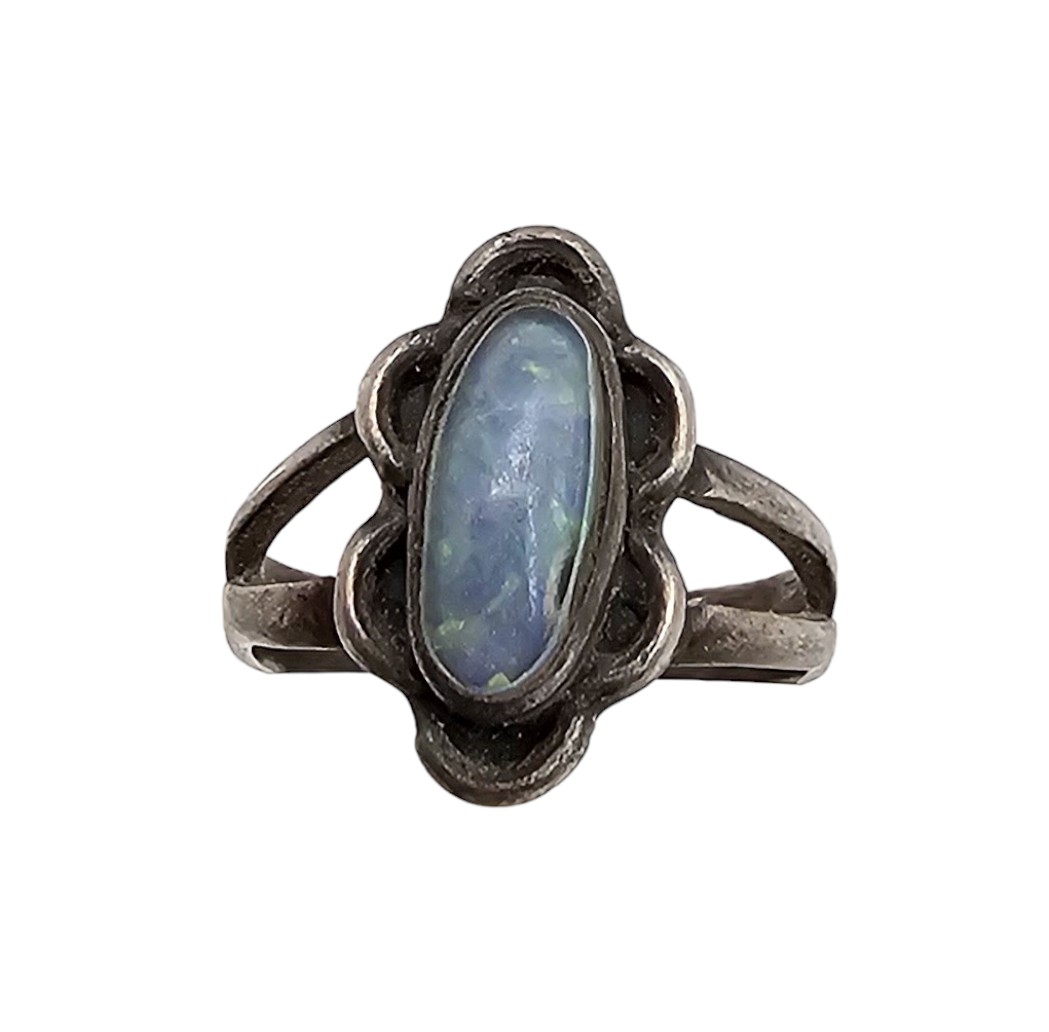Southwestern Glass Sterling Silver Ring Size 5 2.6 G