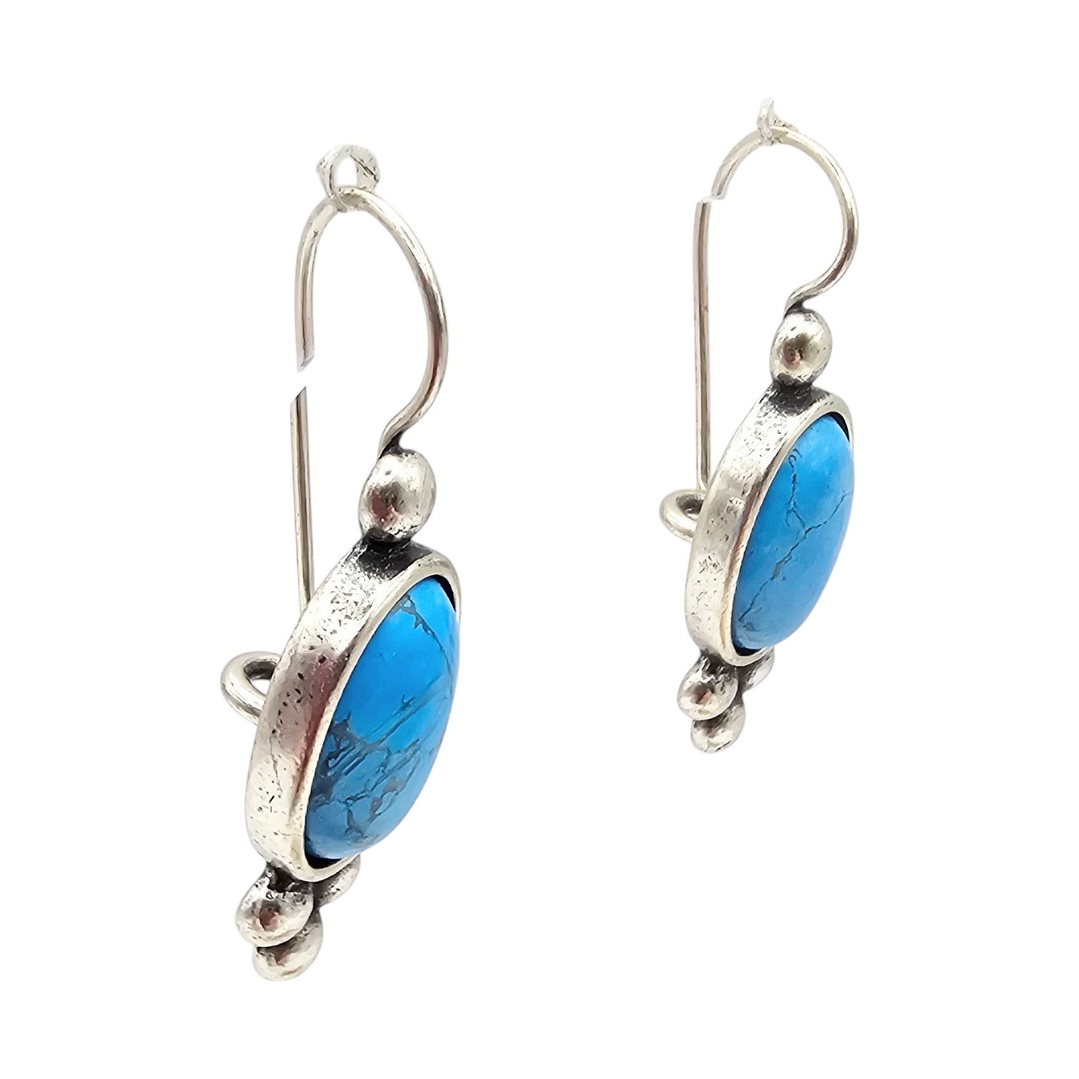 Signed Southwestern Faux Turquoise Sterling Silver Drop Dangle Earrings 9 G