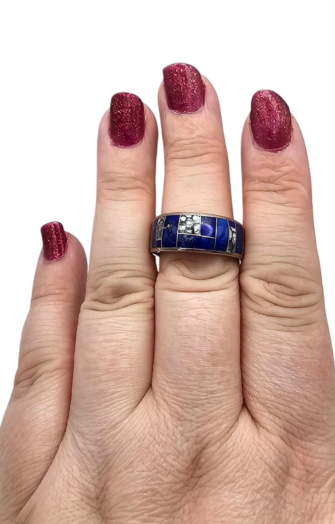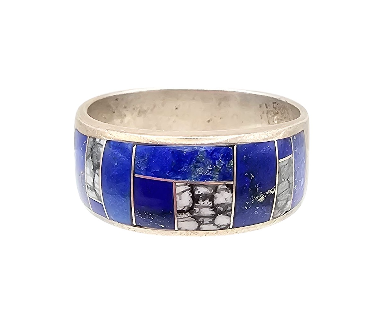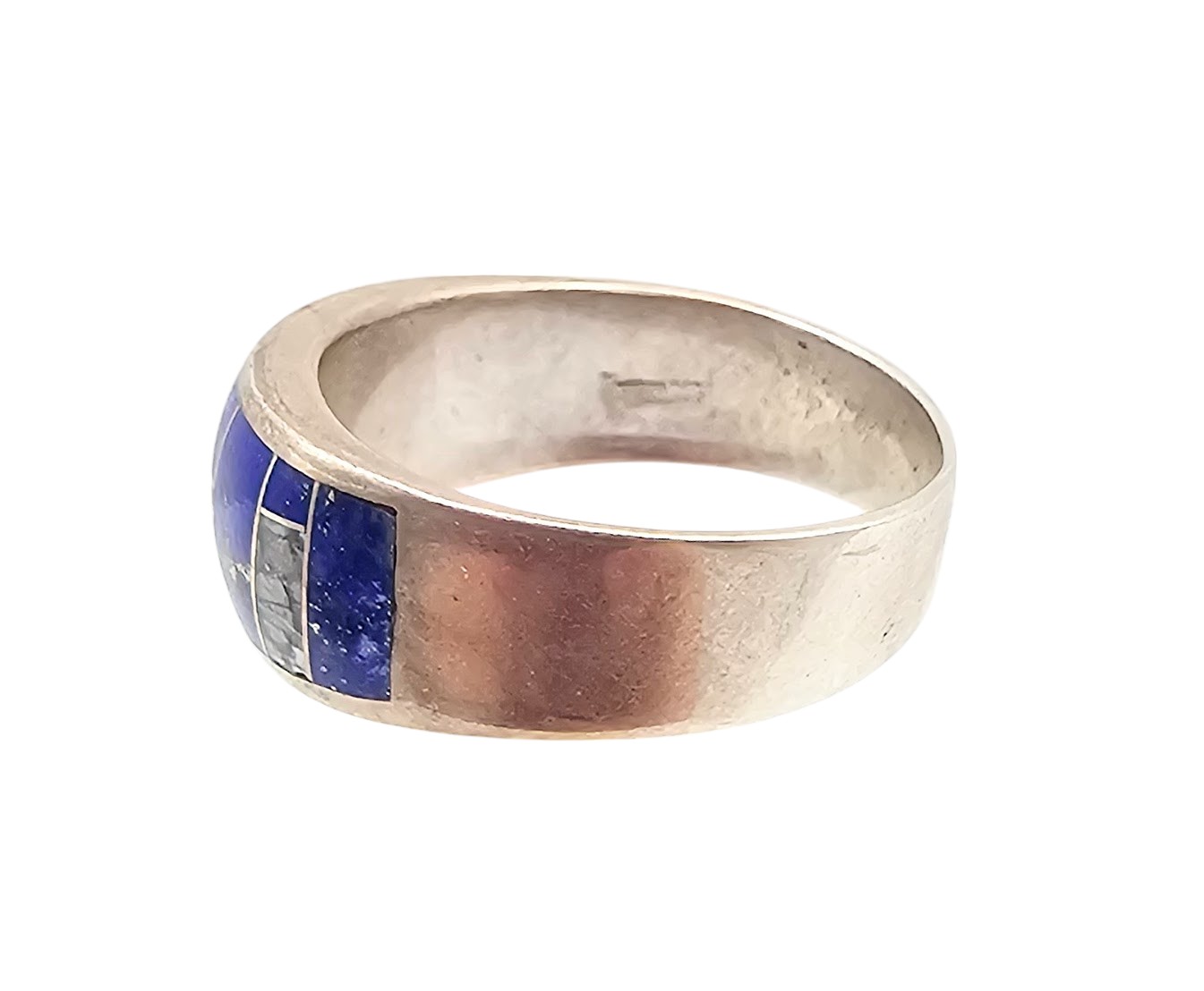 Southwestern Lapis Sterling Silver Inlay Ring Size 10.5 6.1 G