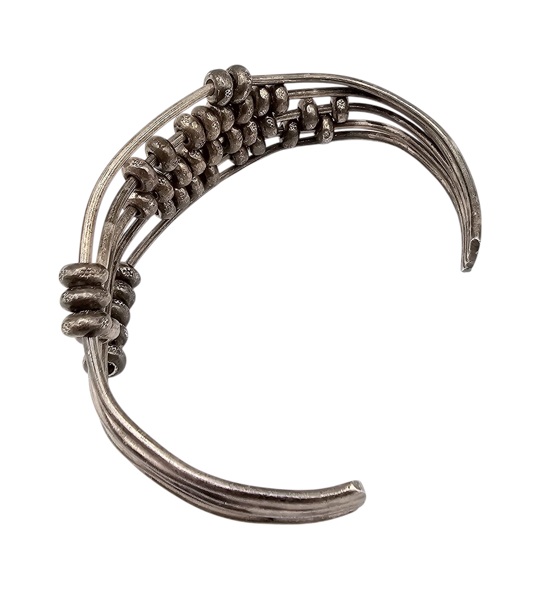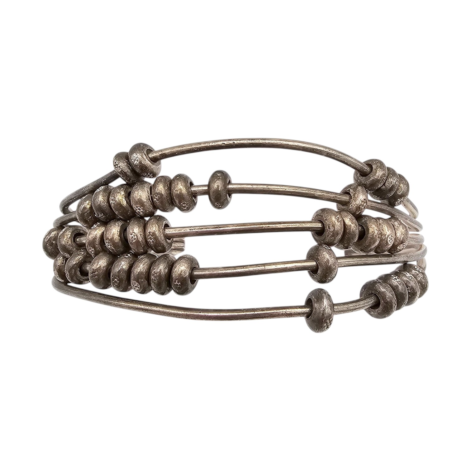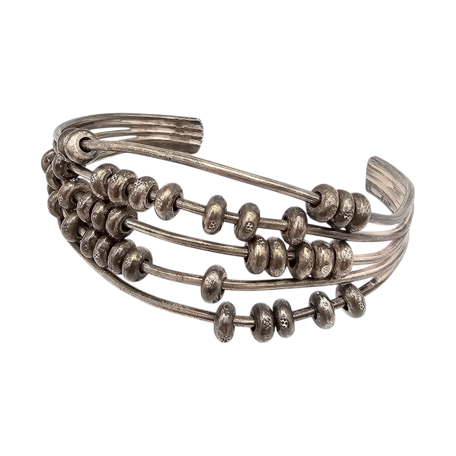 Southwestern Style Sterling Silver Multi Row Bead Cuff Bracelet 60.8 G