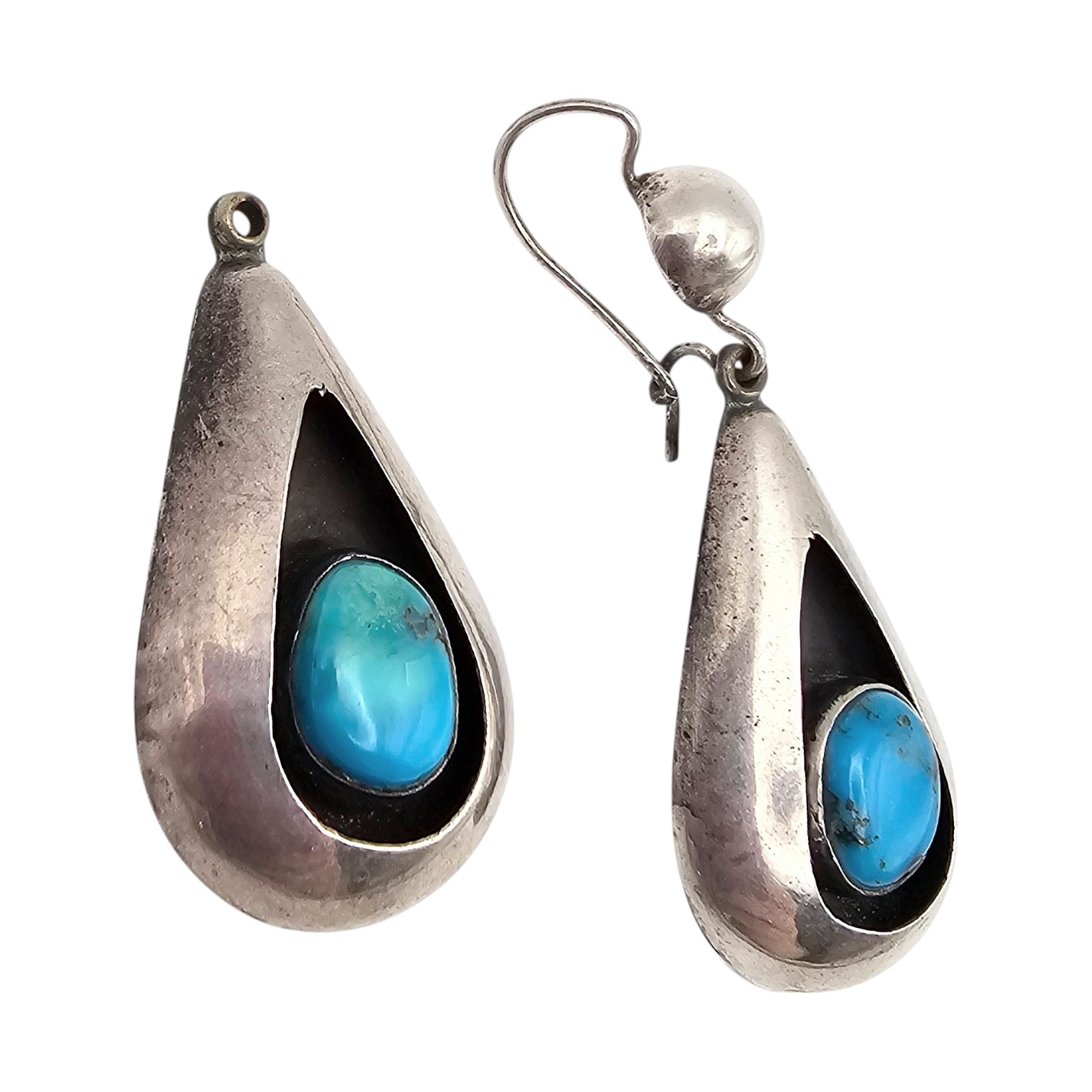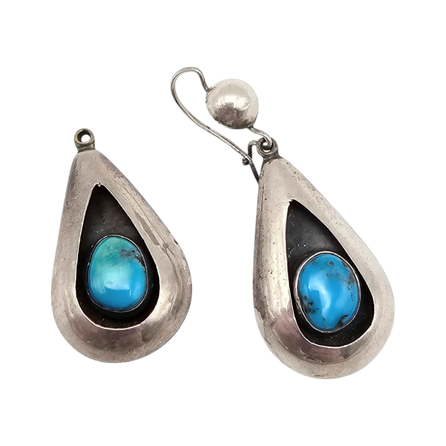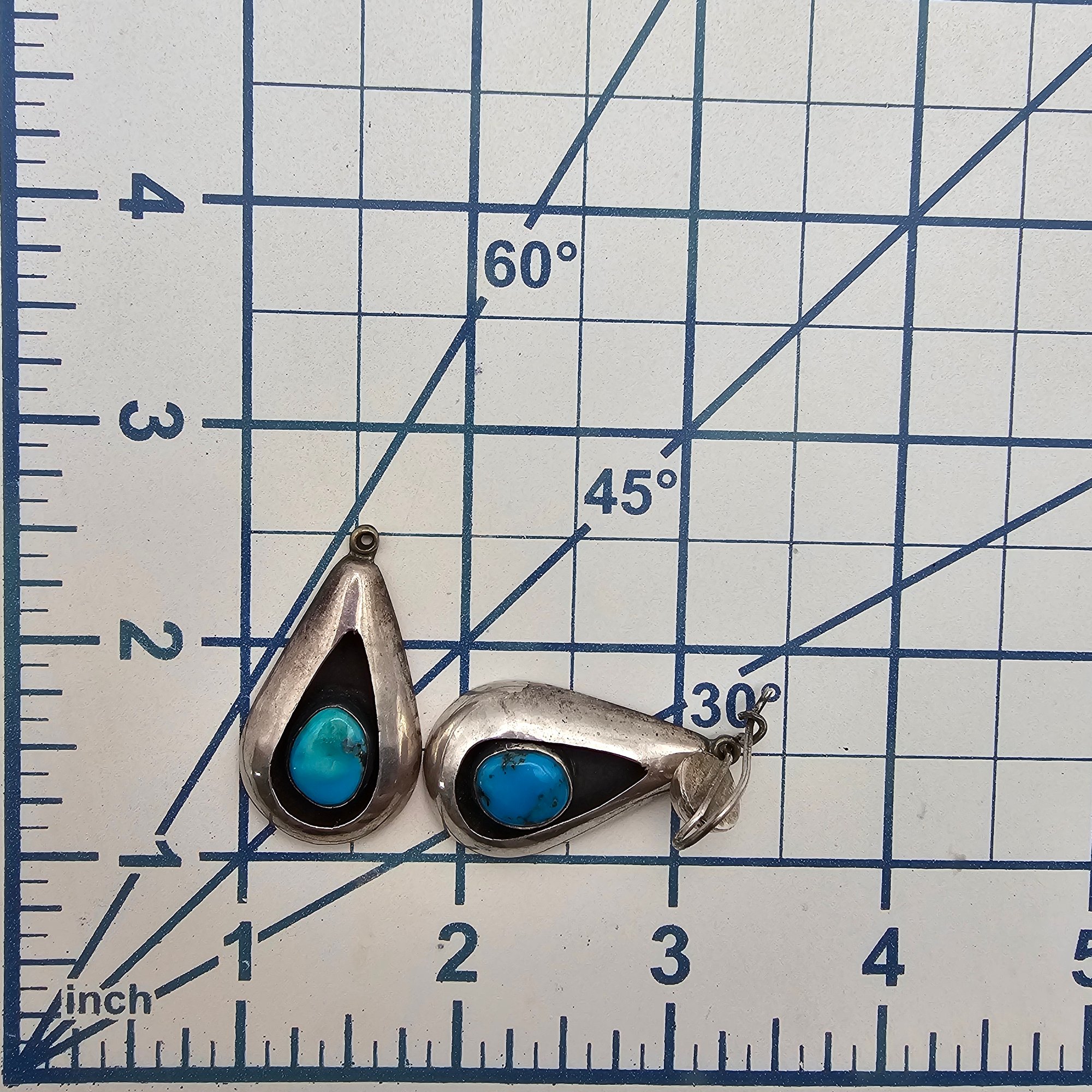 Southwestern Turquoise Sterling Silver Drop Dangle Earrings 11 G as is missing one hook