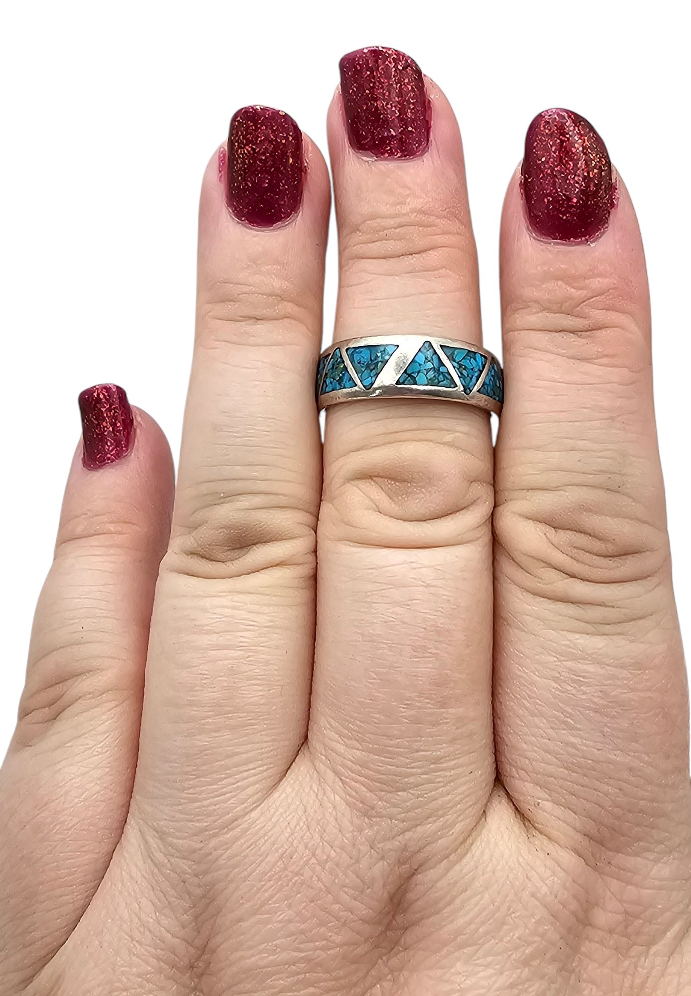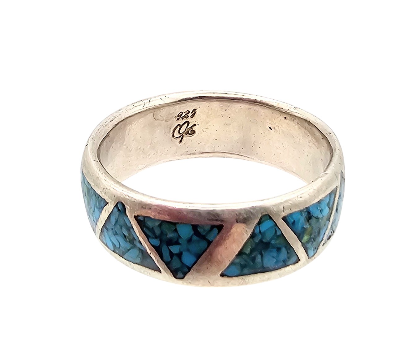 Old Carlisle Jewelry Albuquerque Crushed Turquoise Sterling Silver Ring Size 8.25 4.8 G