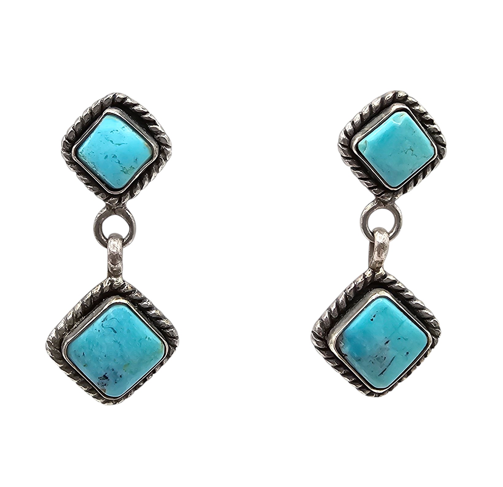 Quac Trading Turquoise Sterling Silver Drop Dangle Earrings 6.1 G