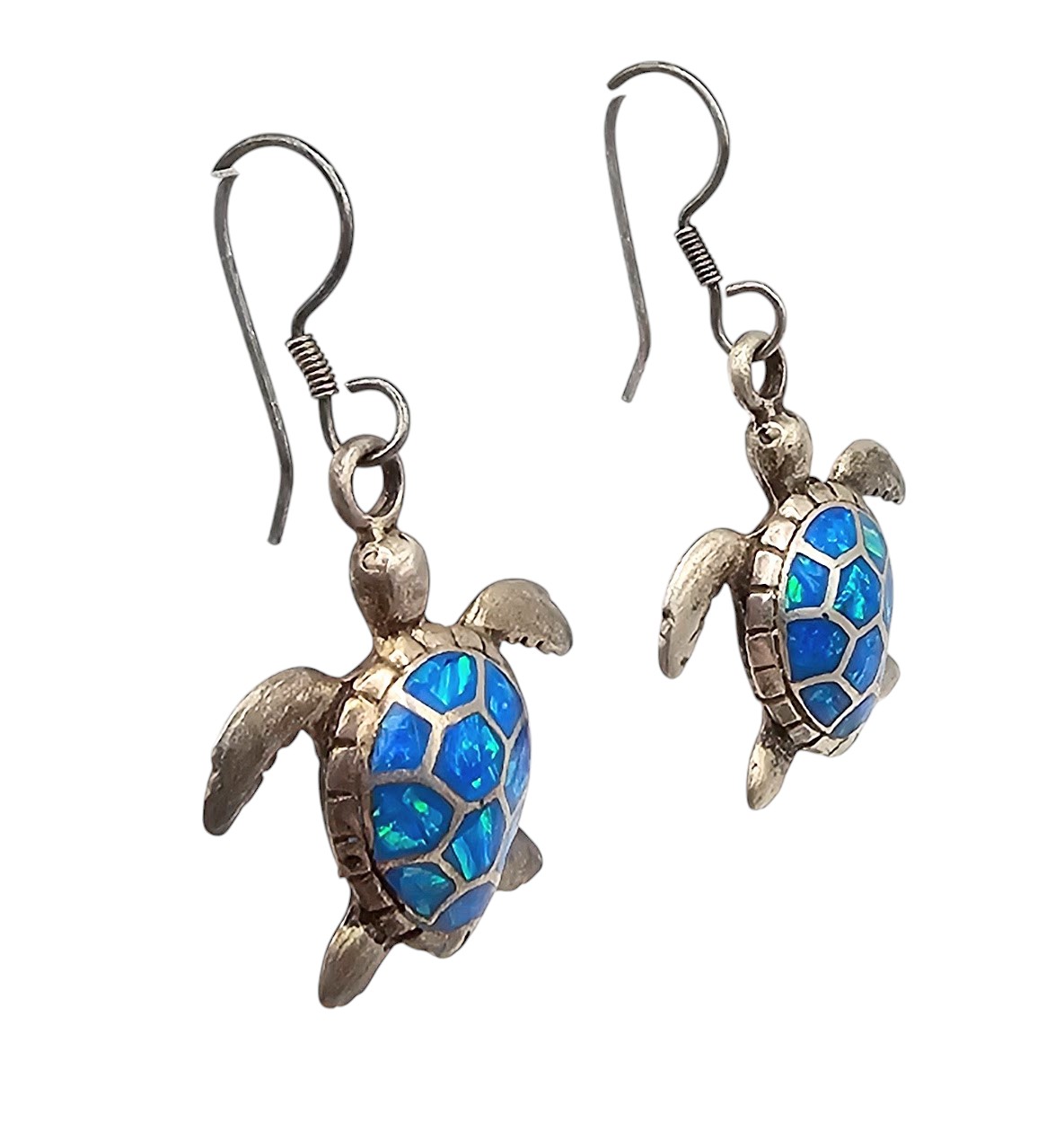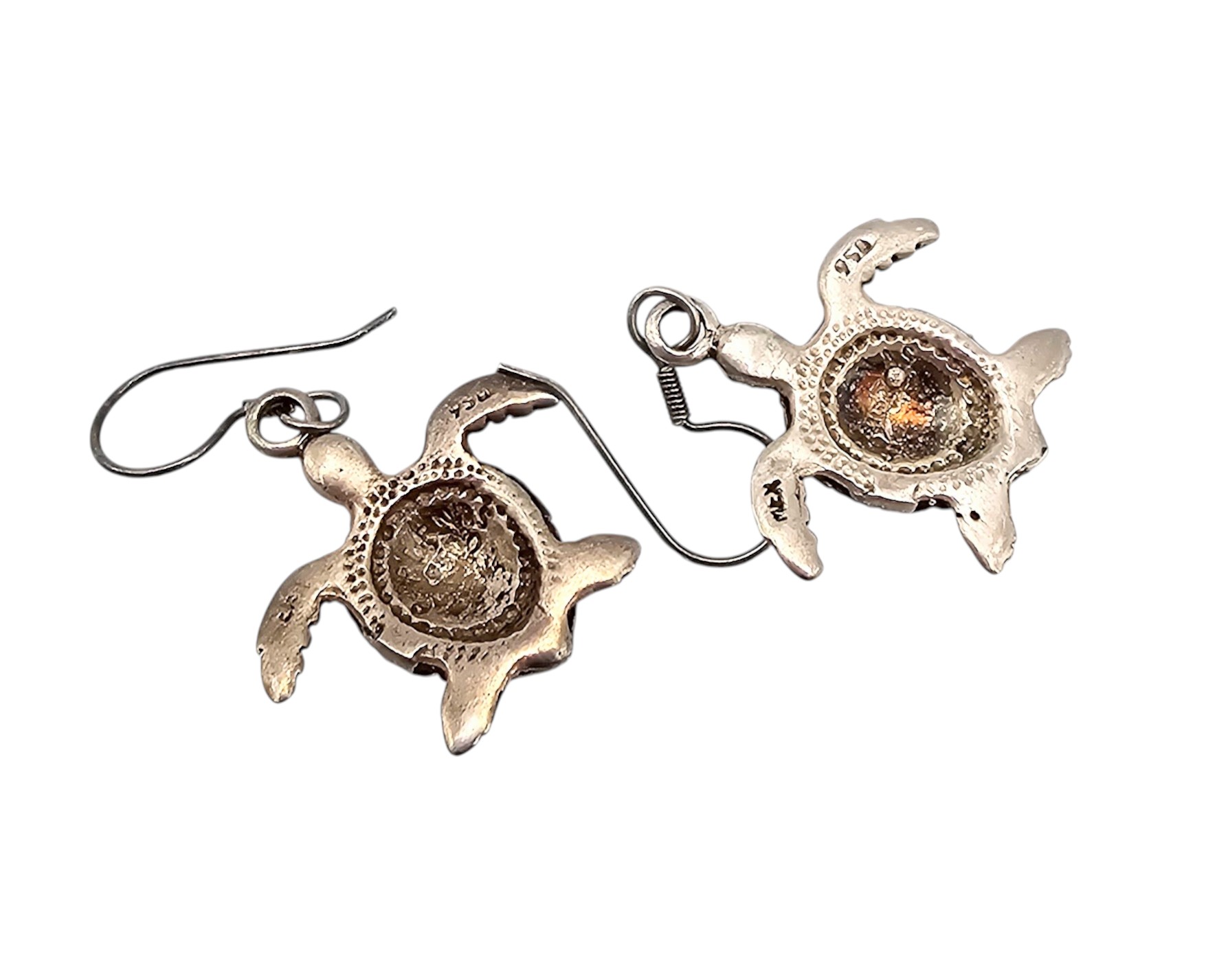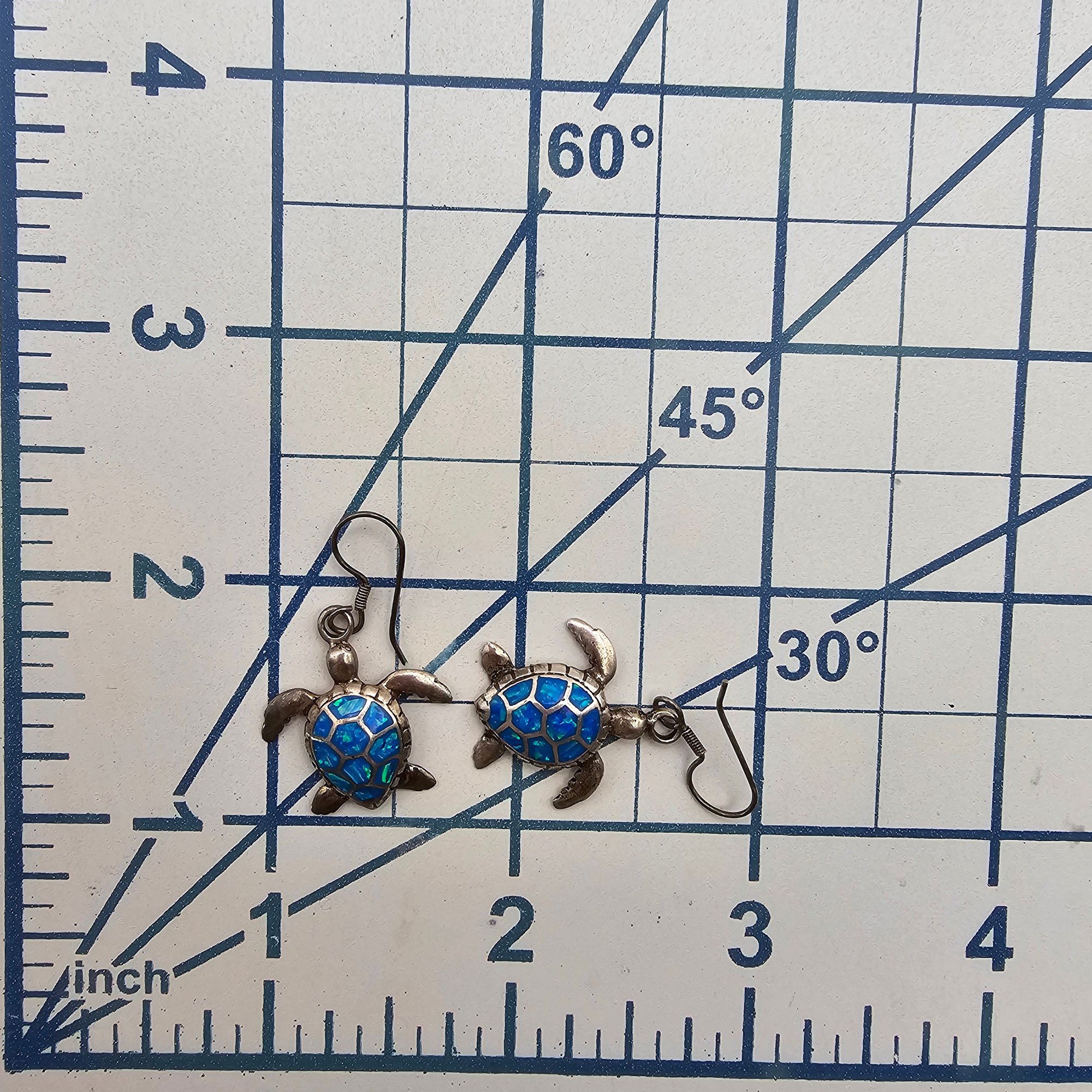 Mexico Opal Sterling Silver Sea Turtle Drop Dangle Earrings 5.8 G