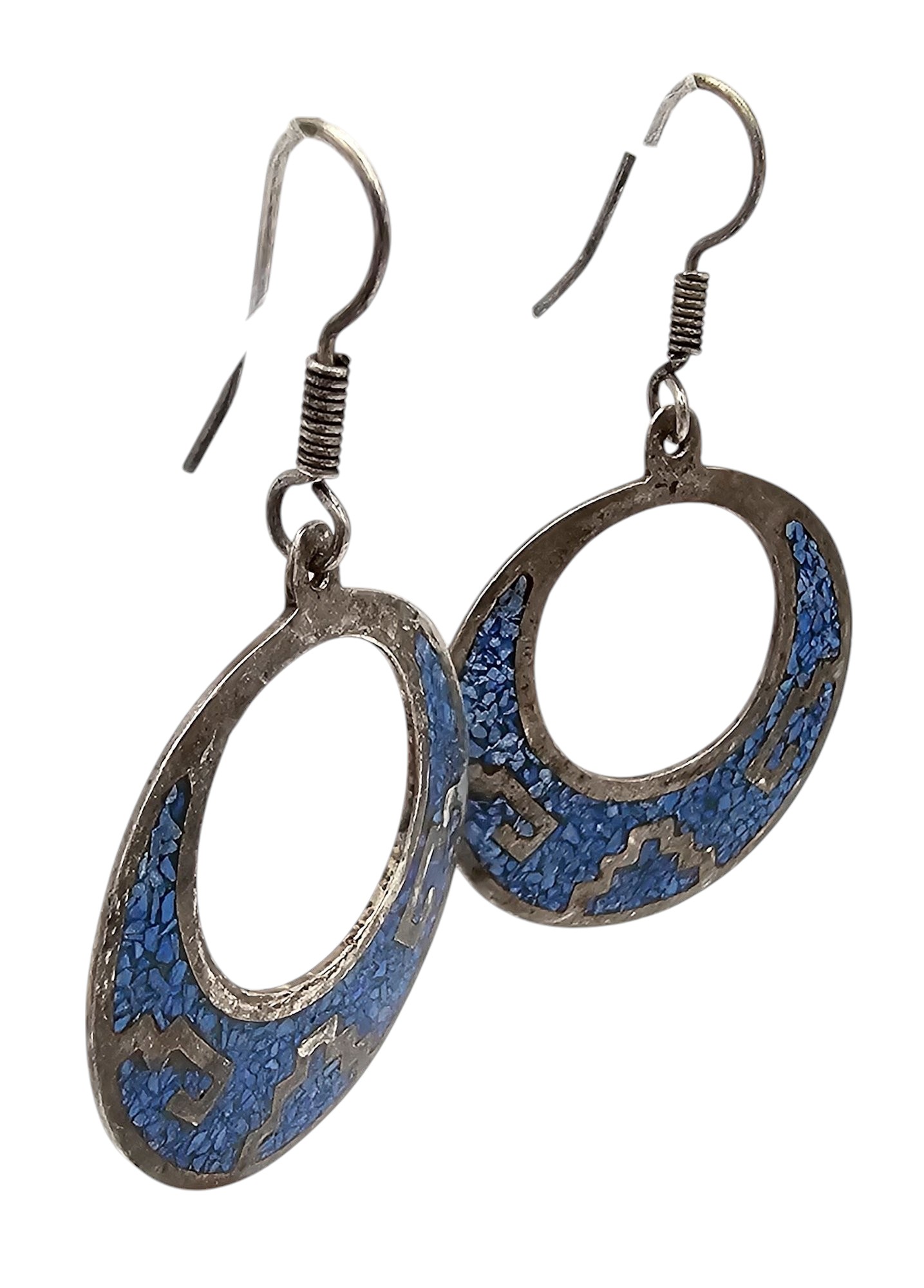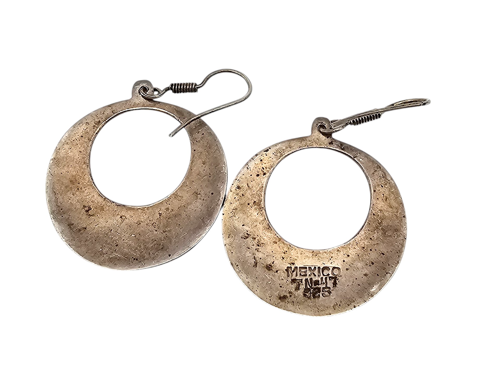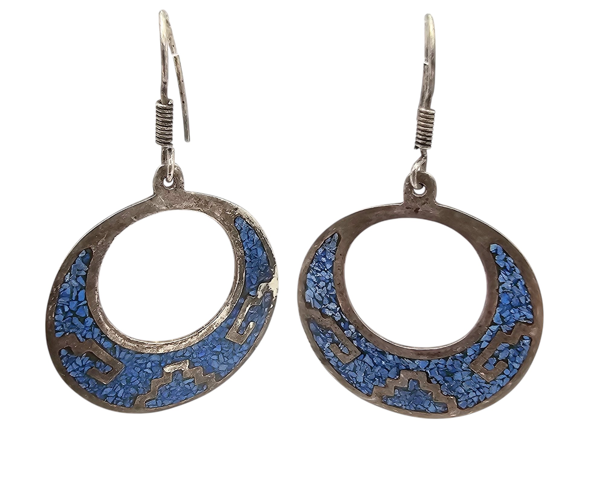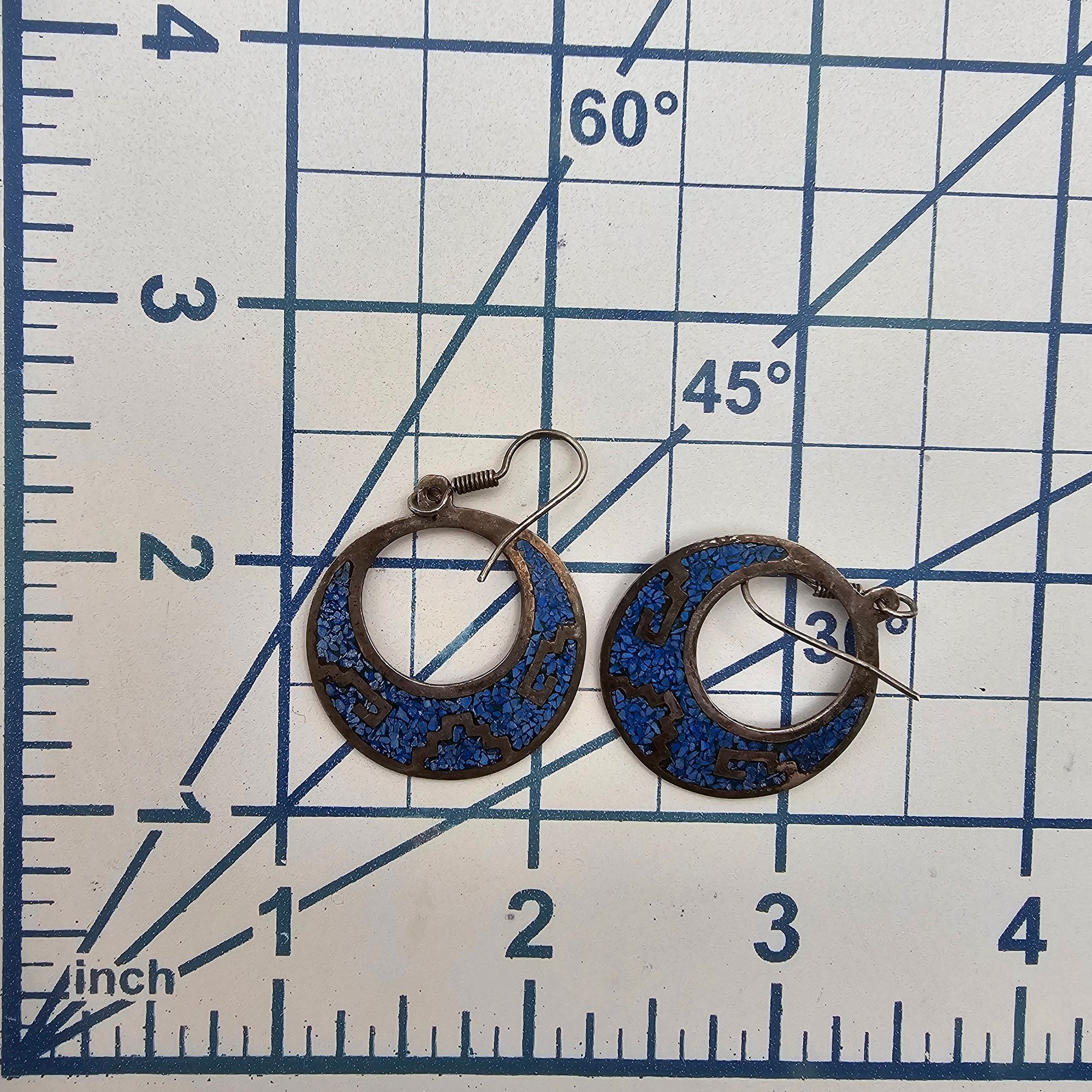Mexico Taxco TN-47 Crushed Turquoise Sterling Silver Drop Dangle Earrings 4.7 G