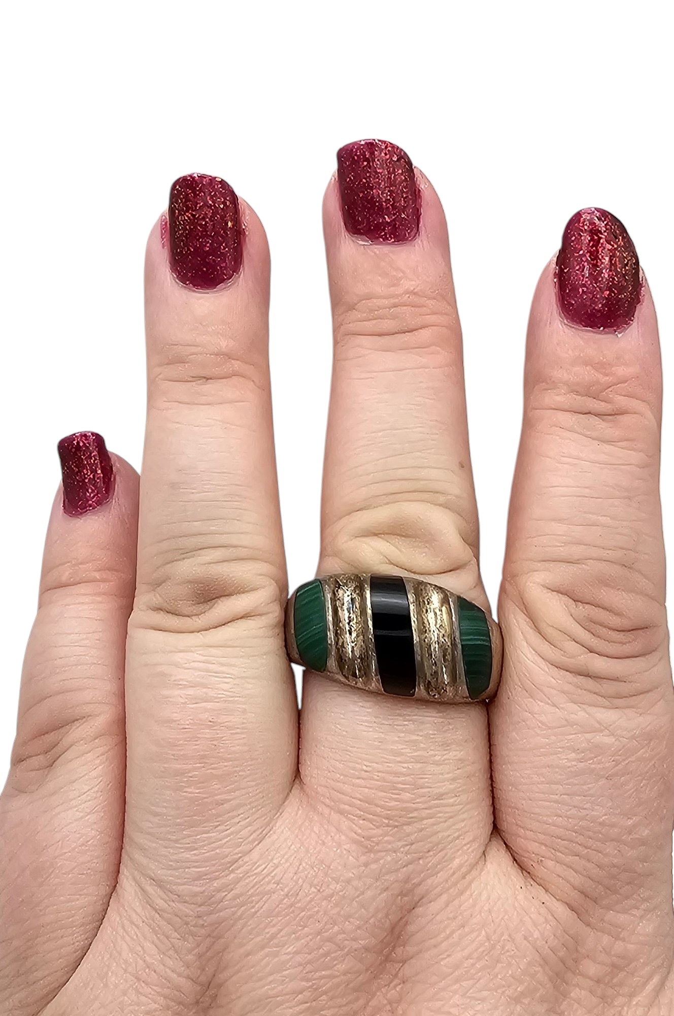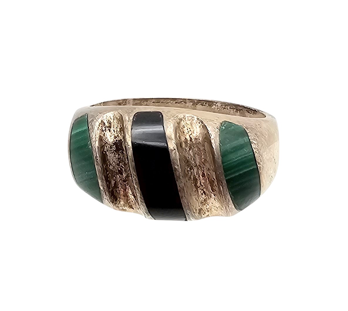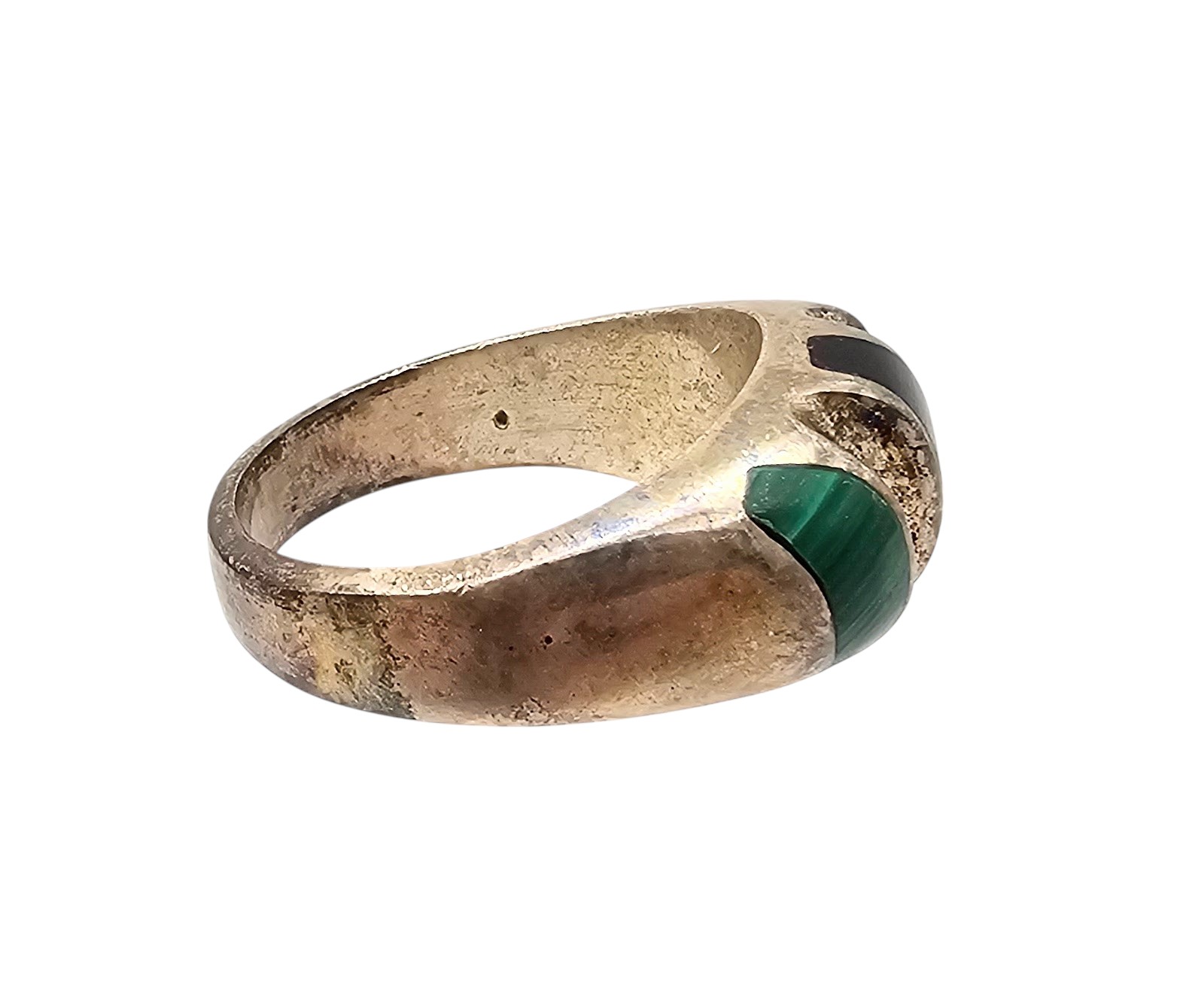 Mexico Taxco Malachite Onyx Sterling Silver Ring Size 13.5 20 G