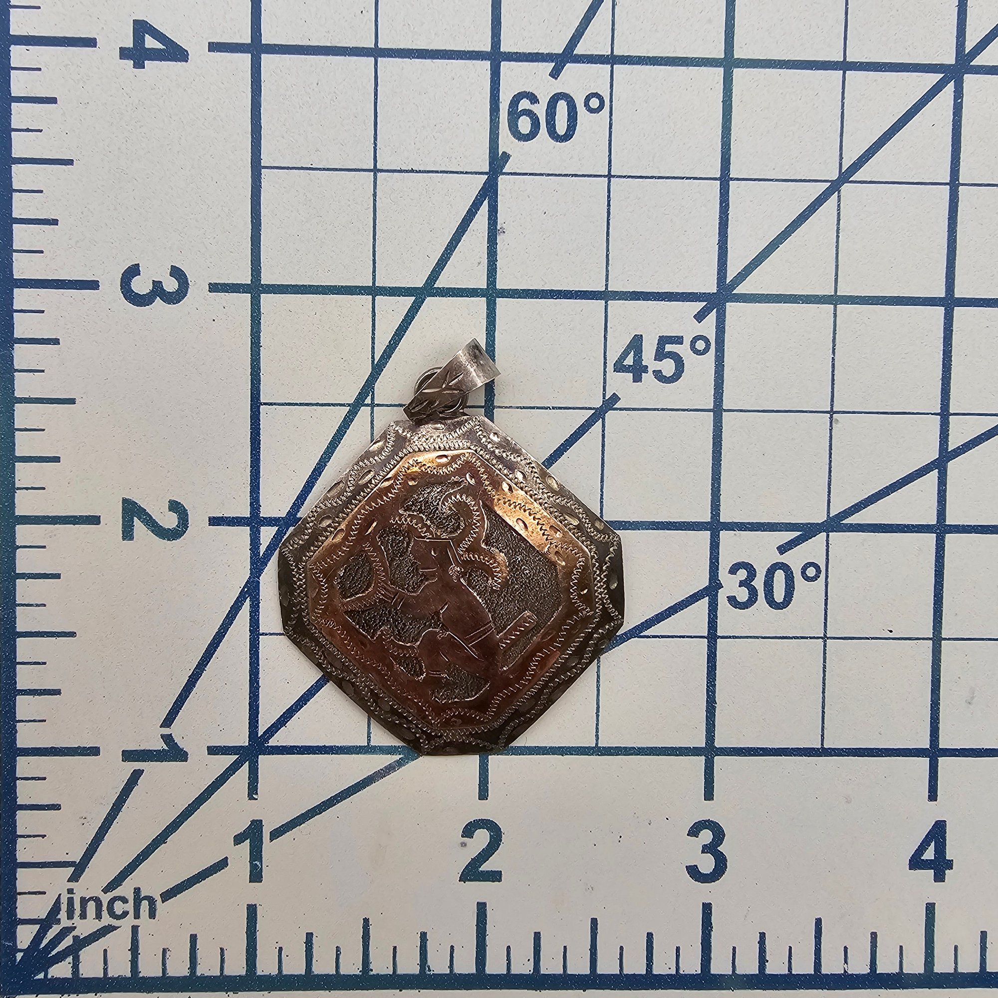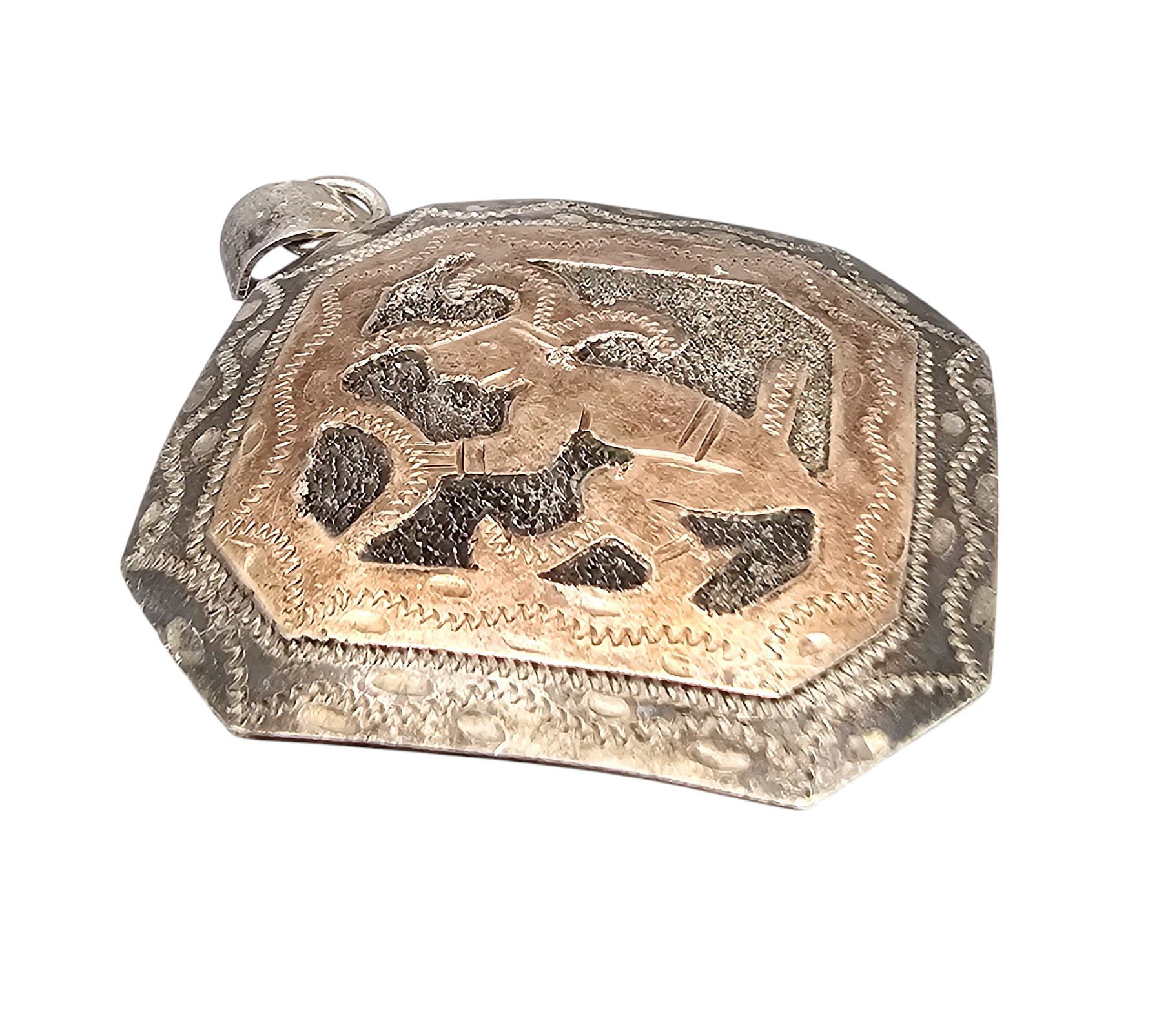 ?UTE 900 Silver Two-Tone Aztec/Mayan Style Pendant 7.8 G