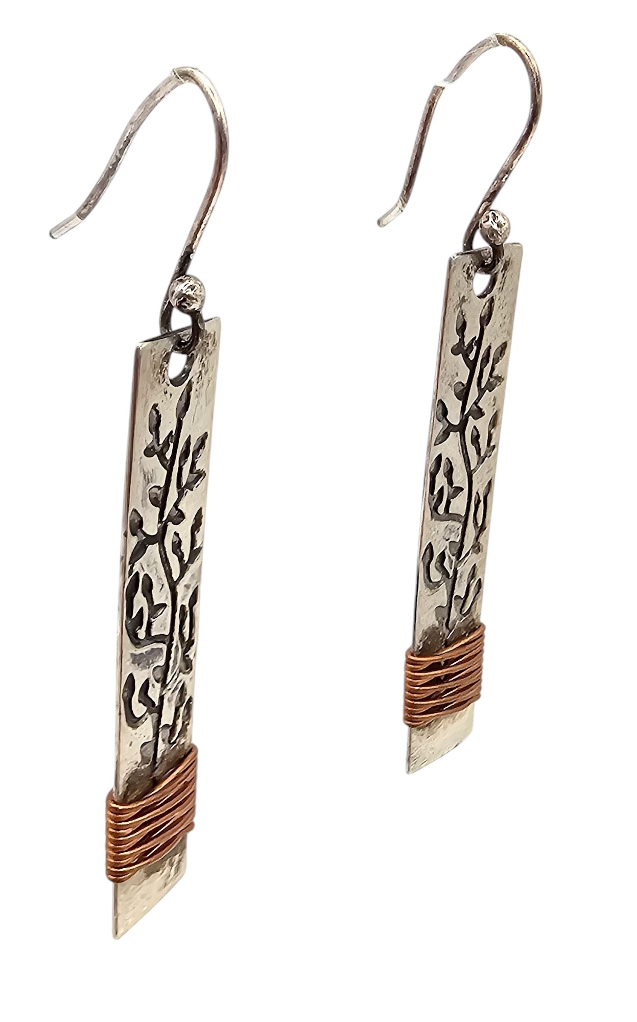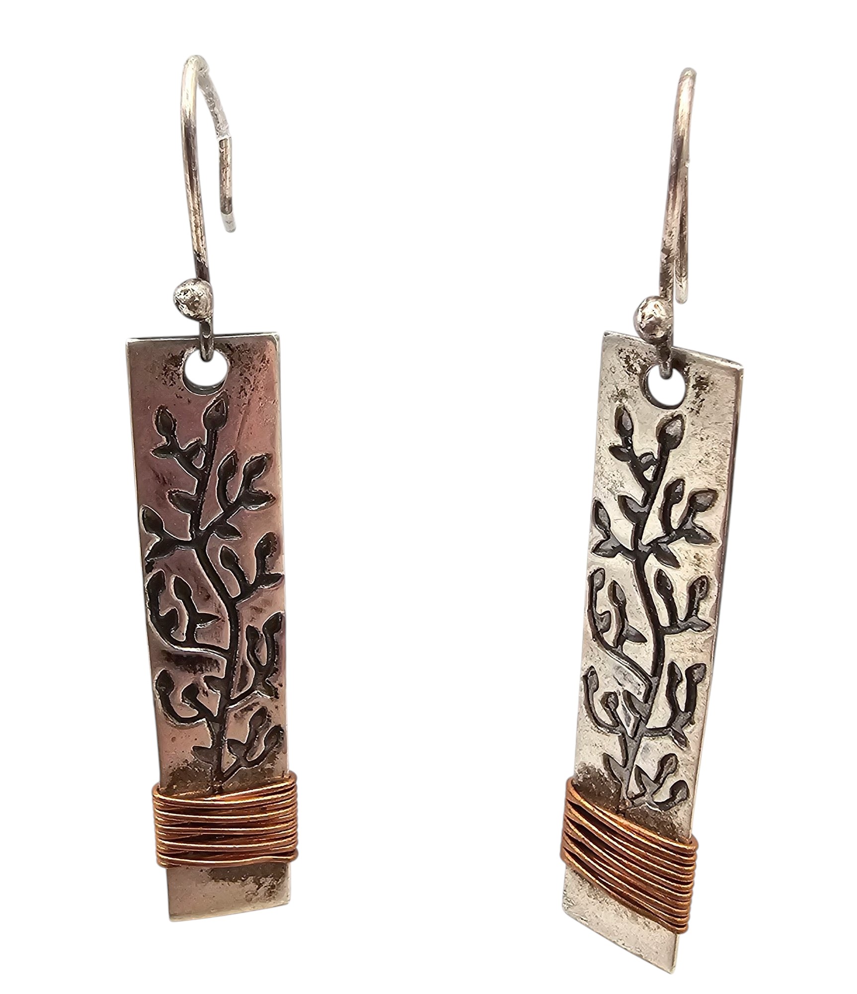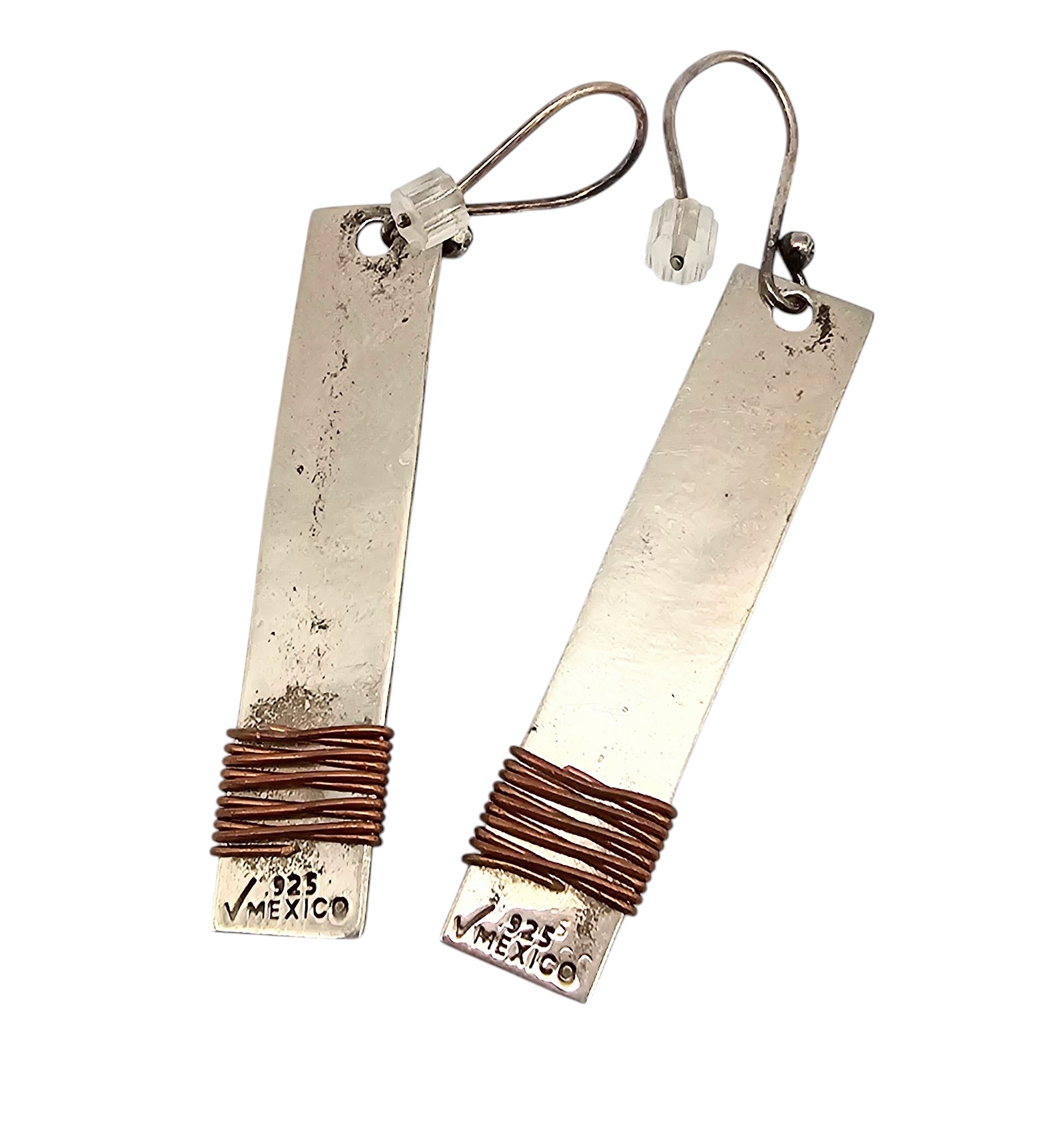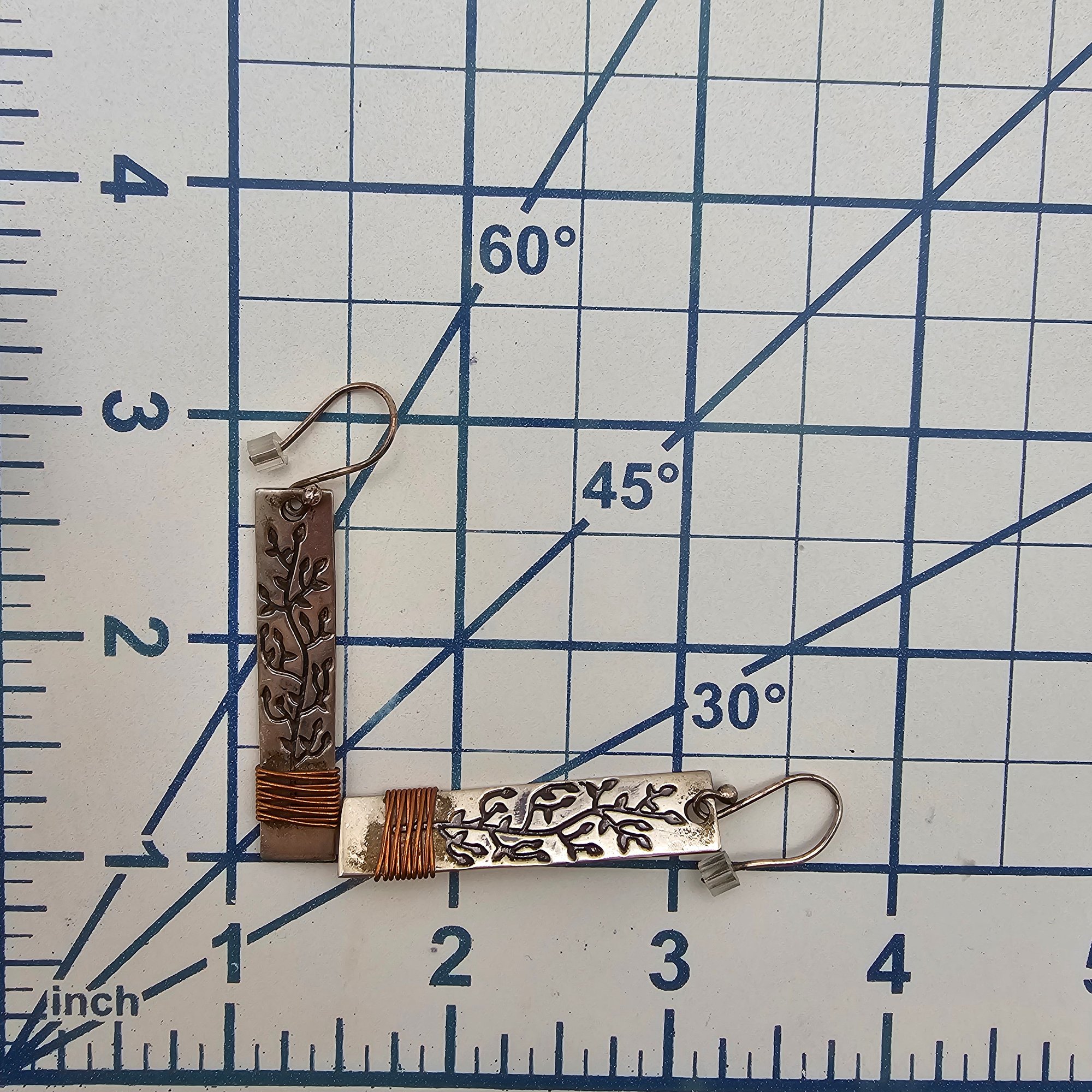 Mexico Sterling Silver Brass Tree Drop Dangle Earrings 5.8 G