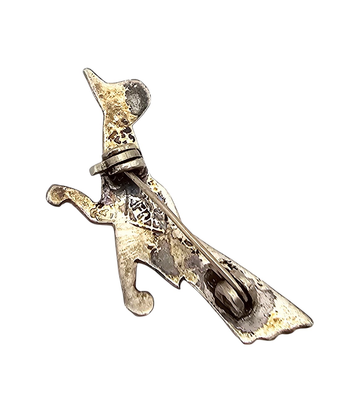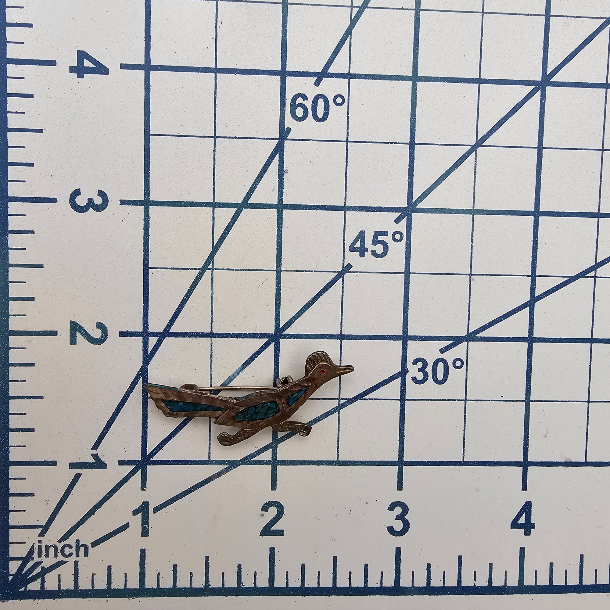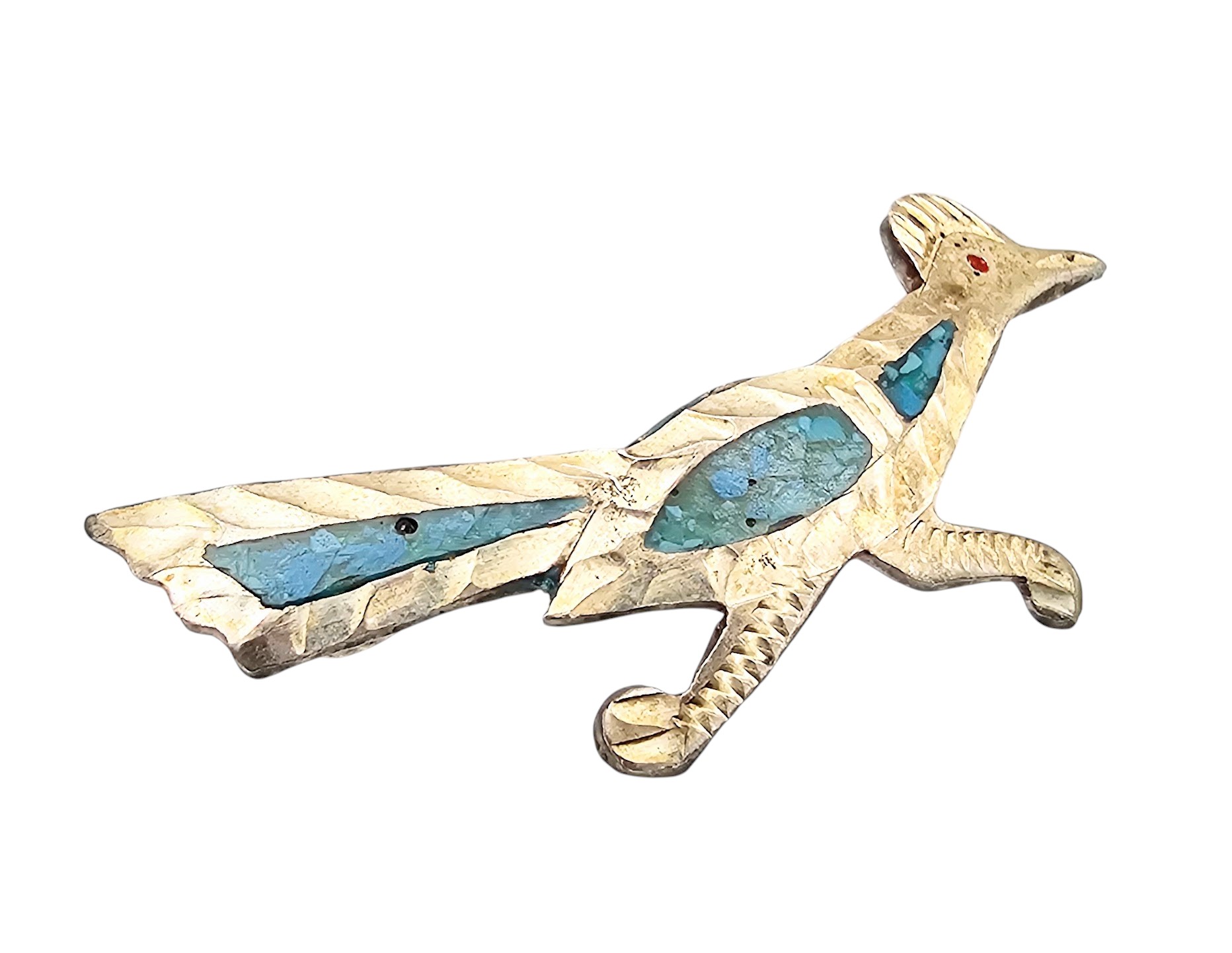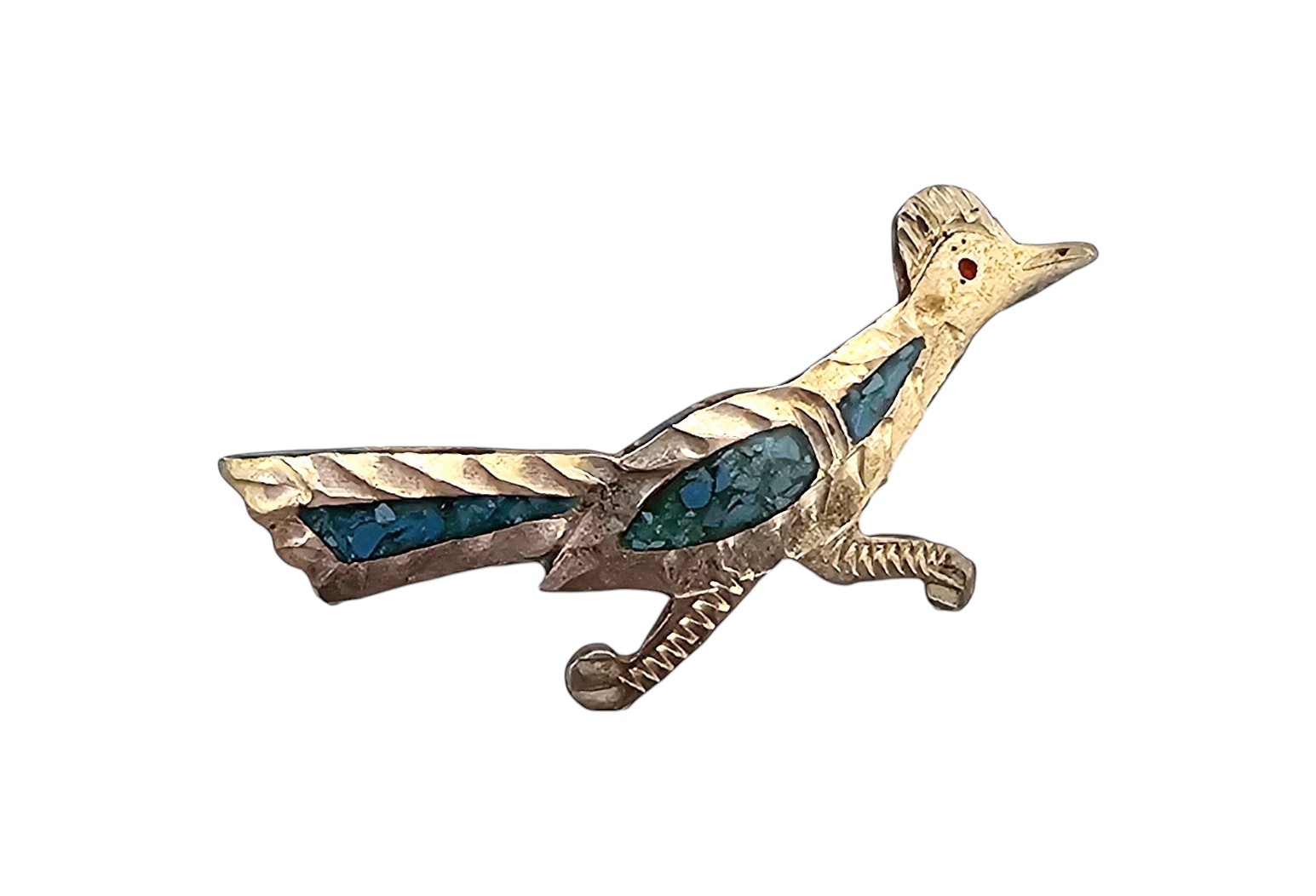 JF? Mexico Crushed Turquoise Sterling Silver Roadrunner Brooch 2.6 G