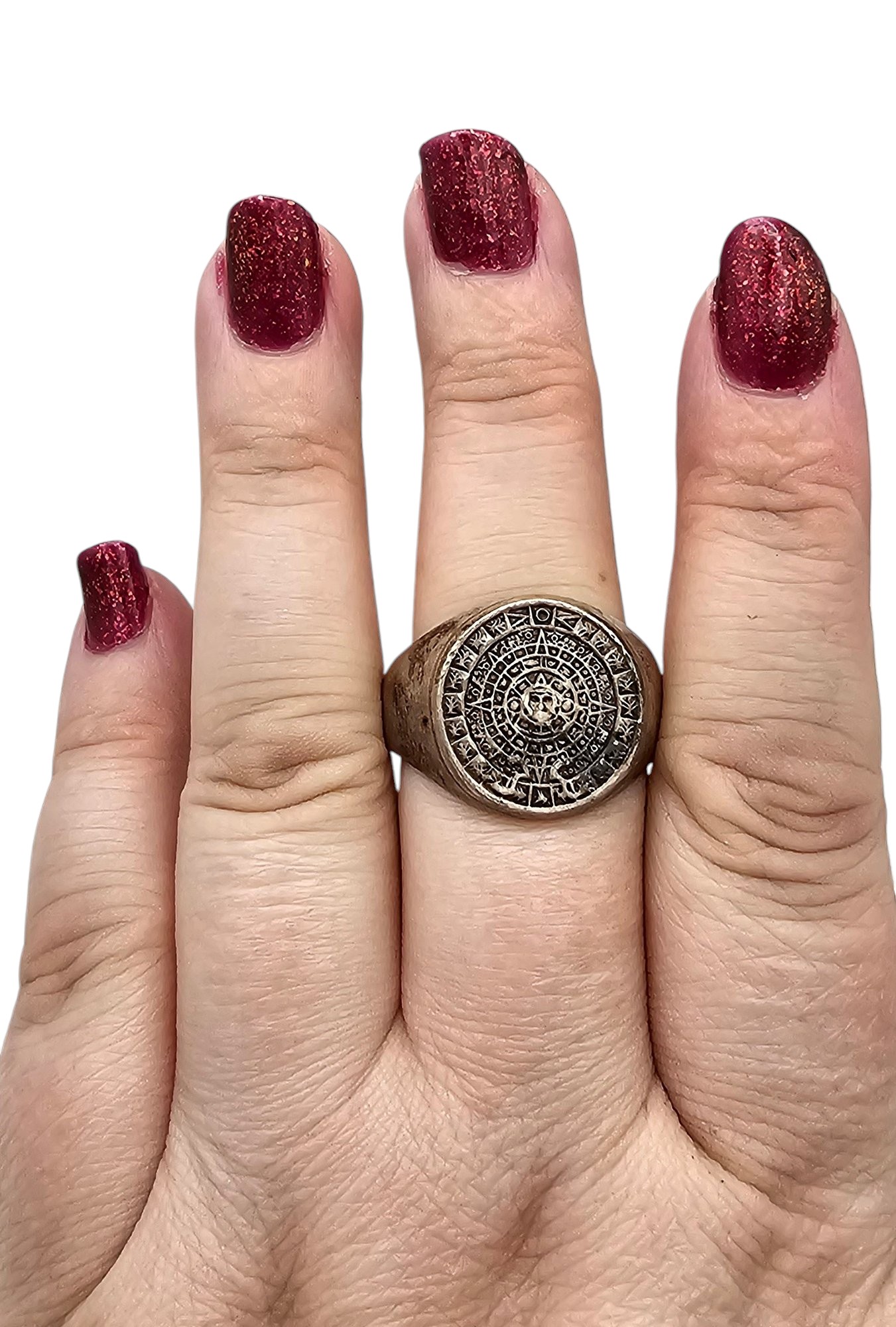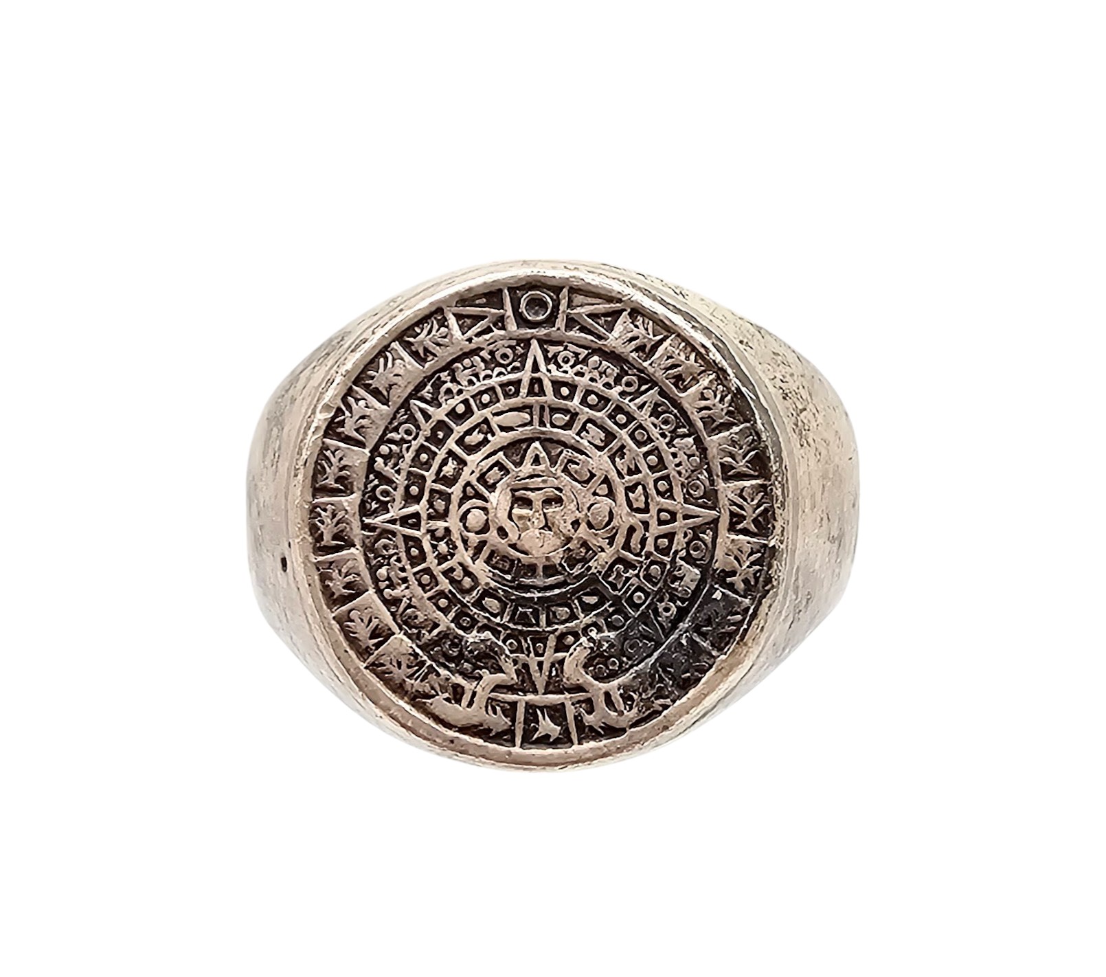 Mexico Sterling Silver Aztec/Mayan Style Ring Size 12.25 14.6 G