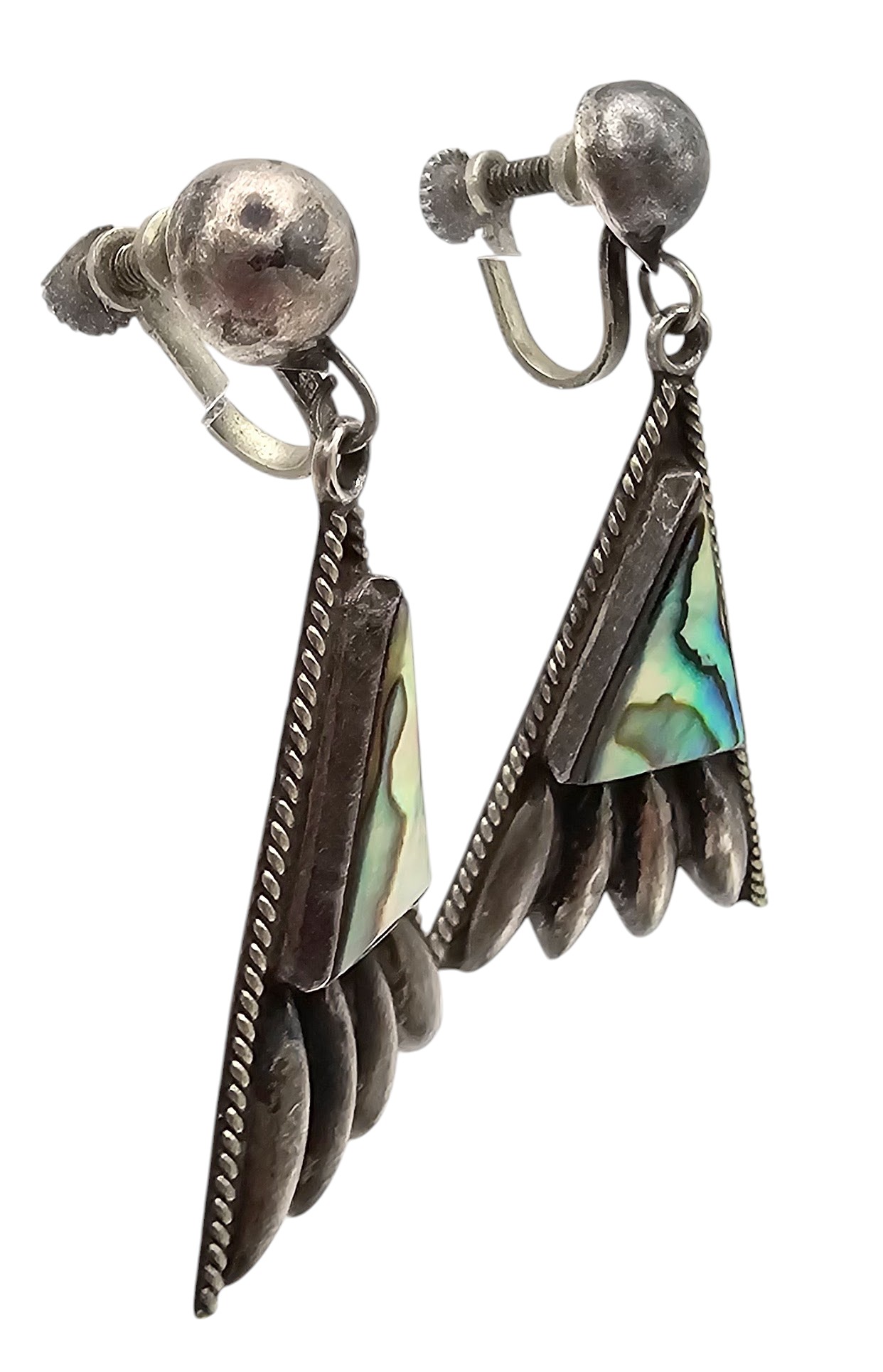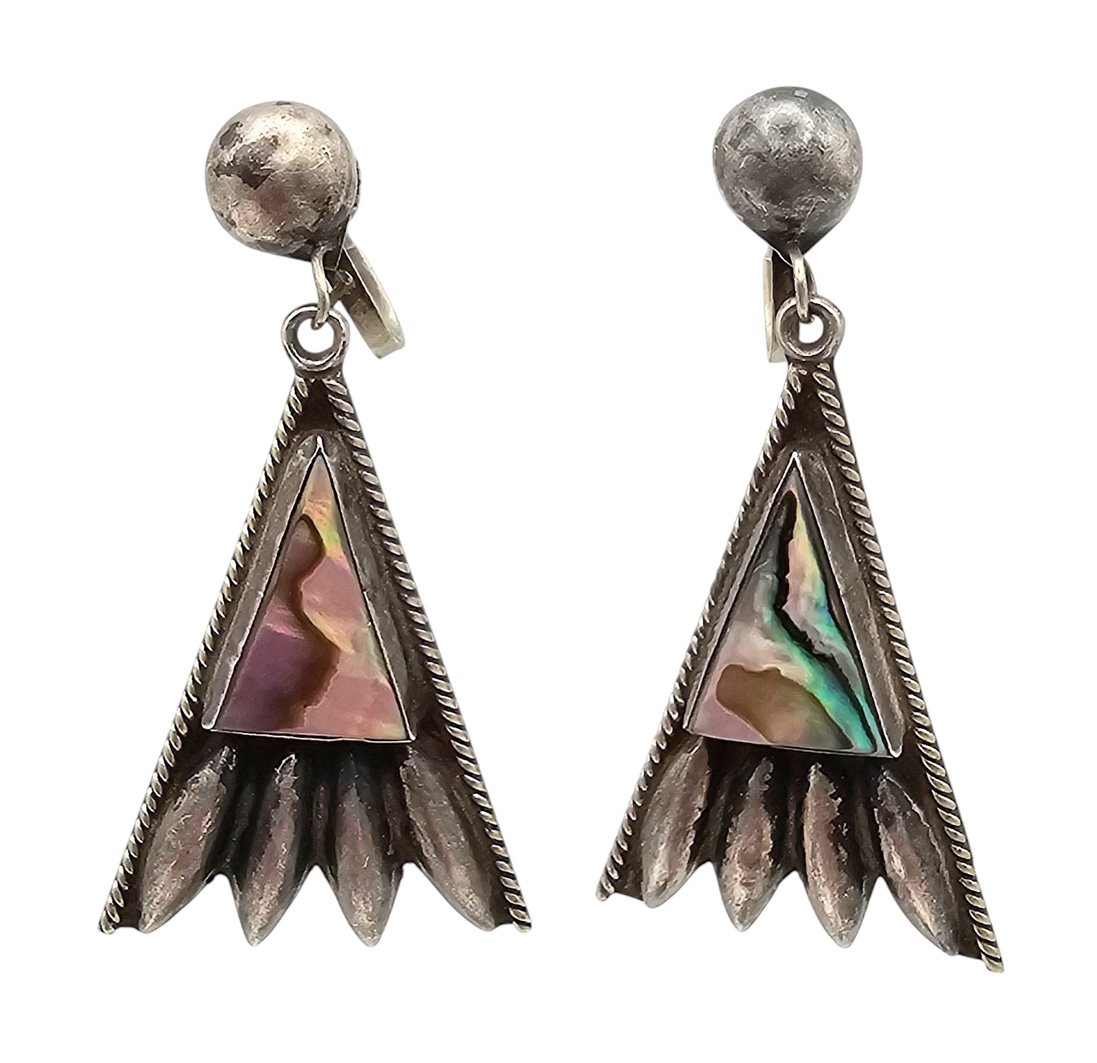 JFG Mexico Abalone Sterling Silver Drop Dangle Earrings 7.2 G