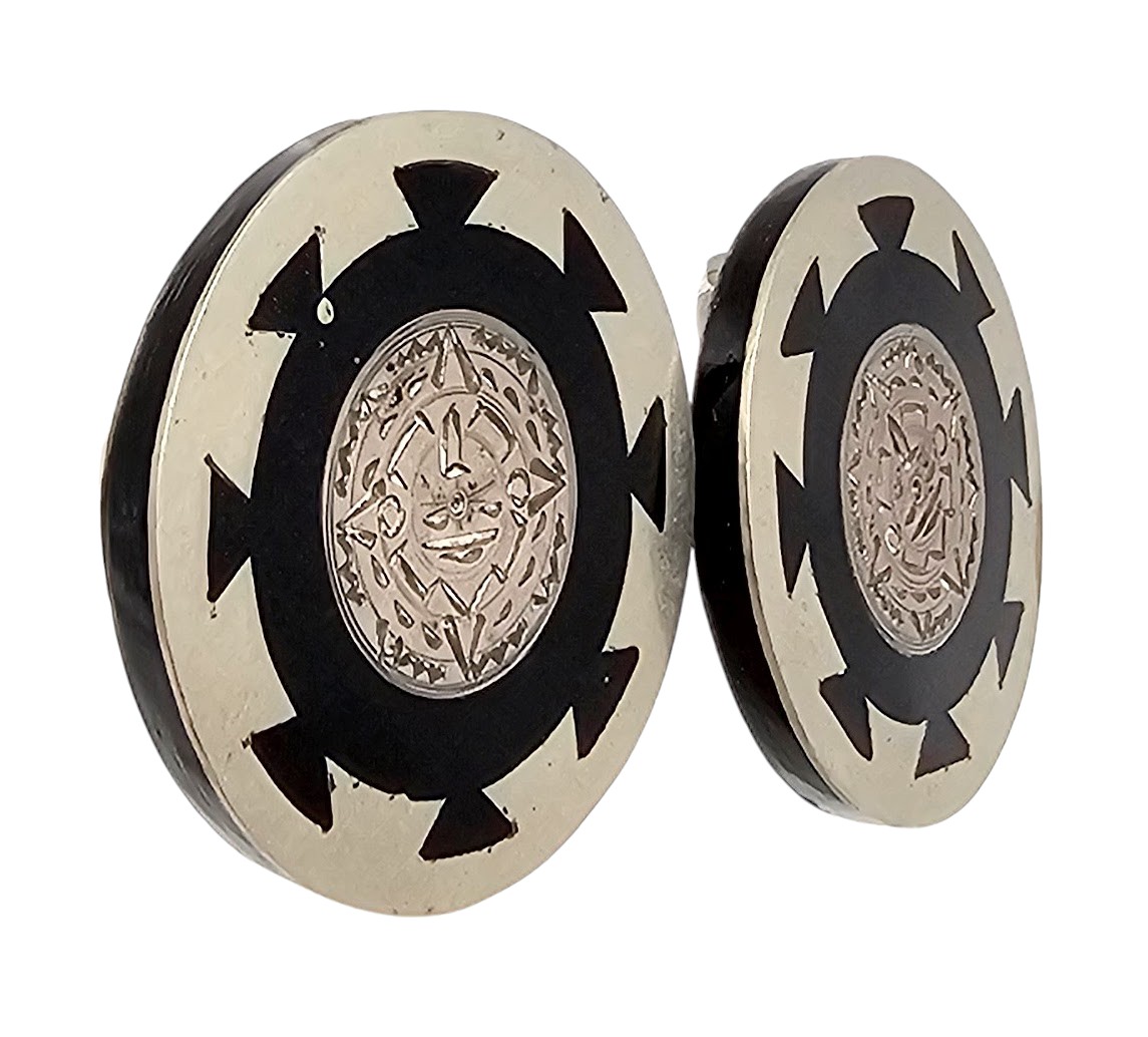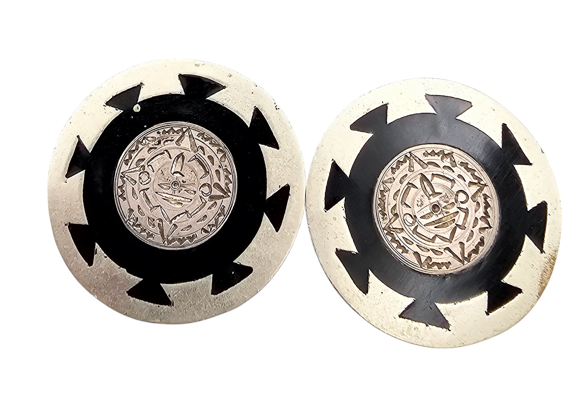 Mexico Enamel Sterling Silver Aztec/Mayan Style Earrings 12.4 G