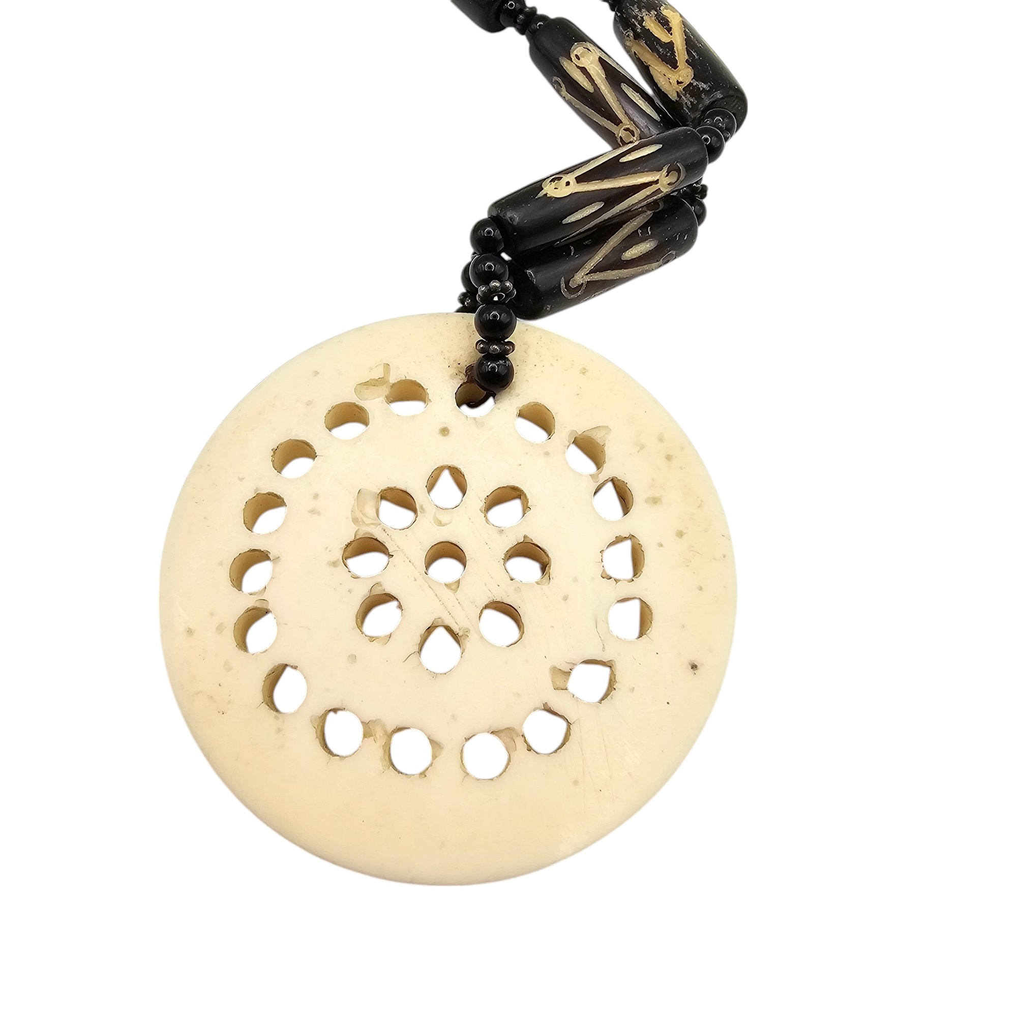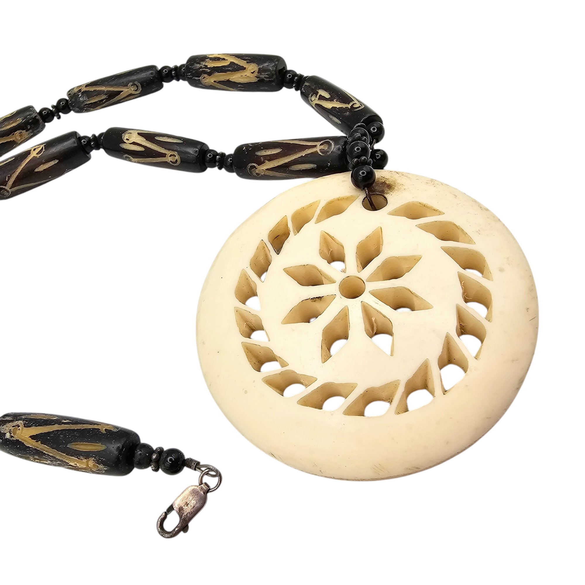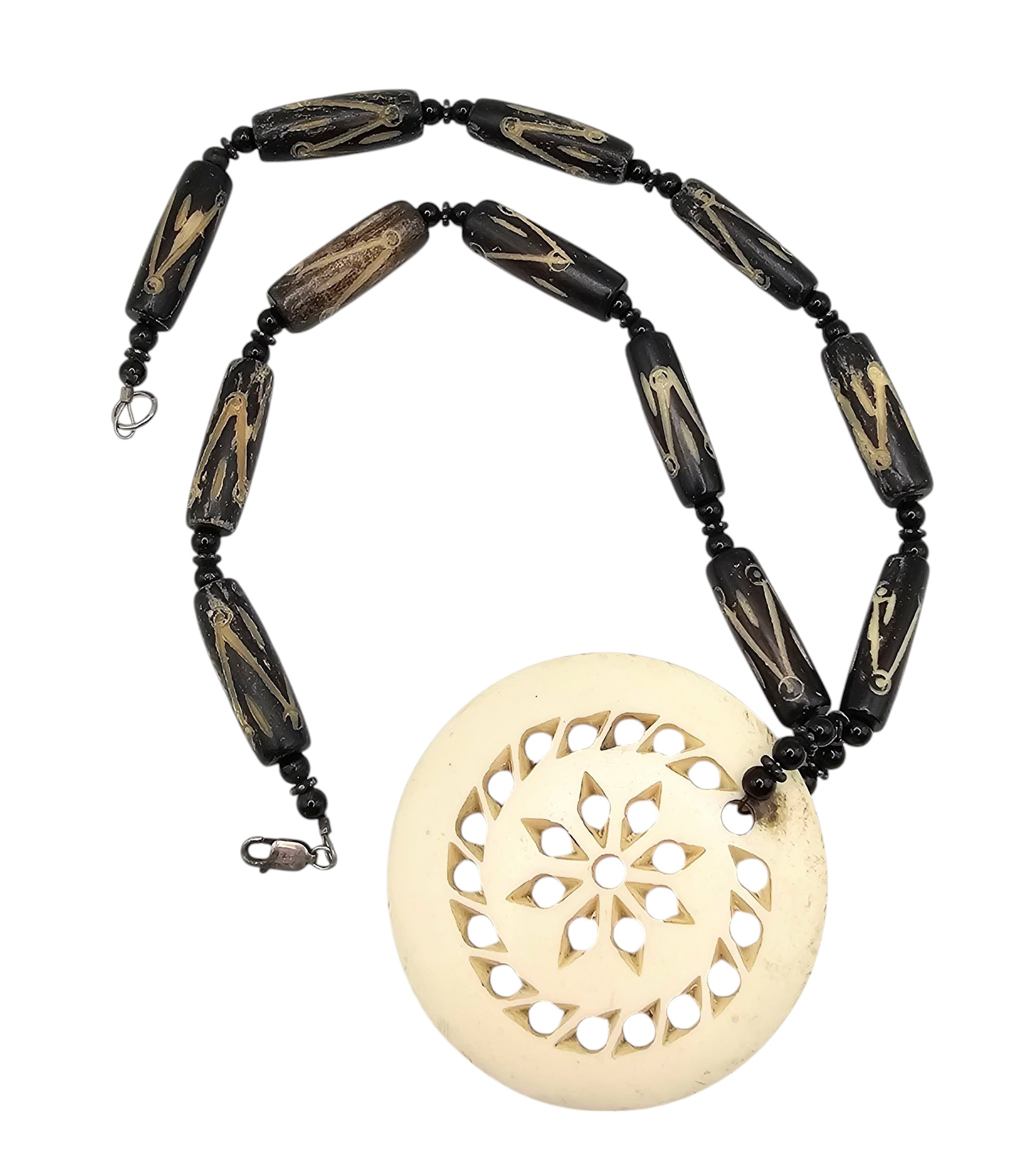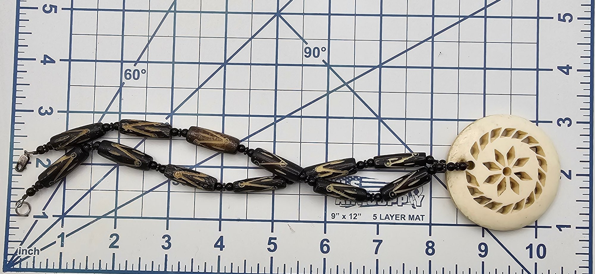 Southwestern Carved Bone Wood Sterling Silver Necklace 46.5 G