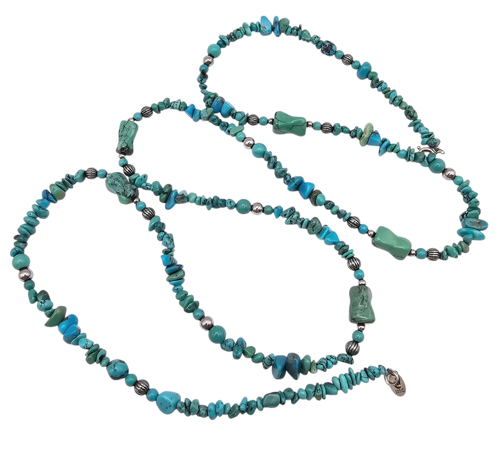 Carolyn Pollack Relios Southwestern Turquoise Chunk Sterling Silver Necklace 38.2 G