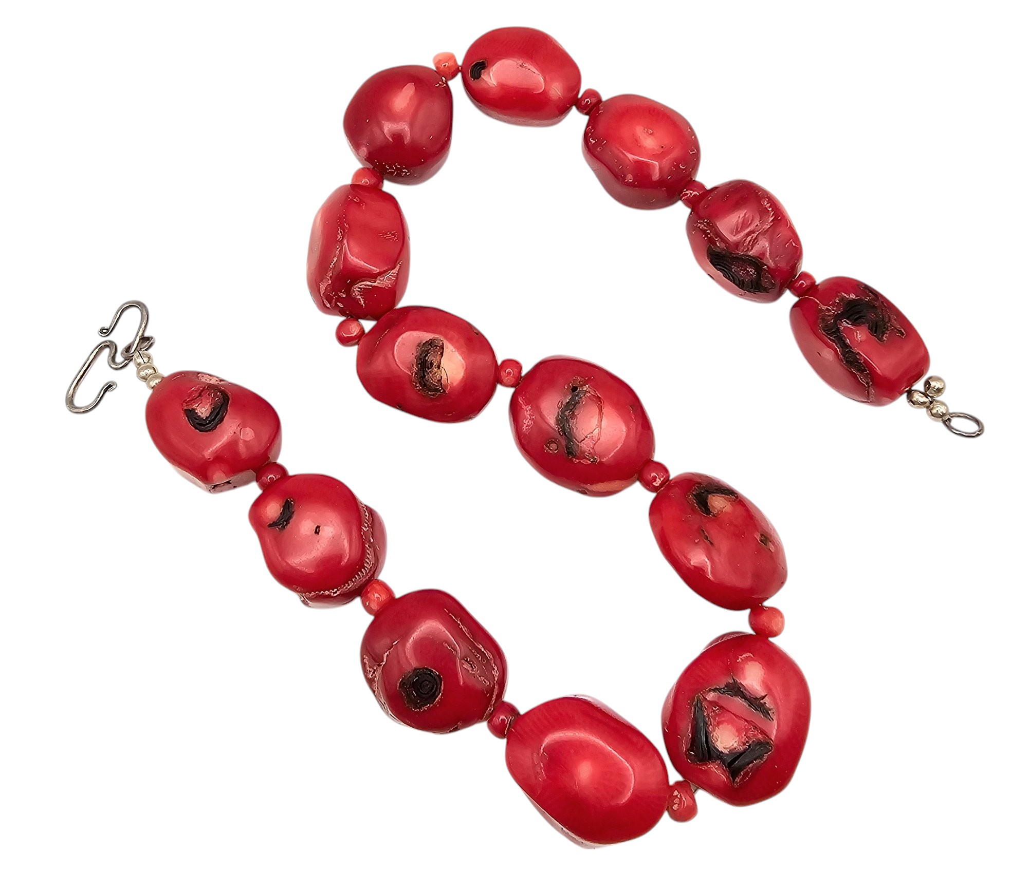 Southwestern Style Coral Sterling Silver Necklace 190 G