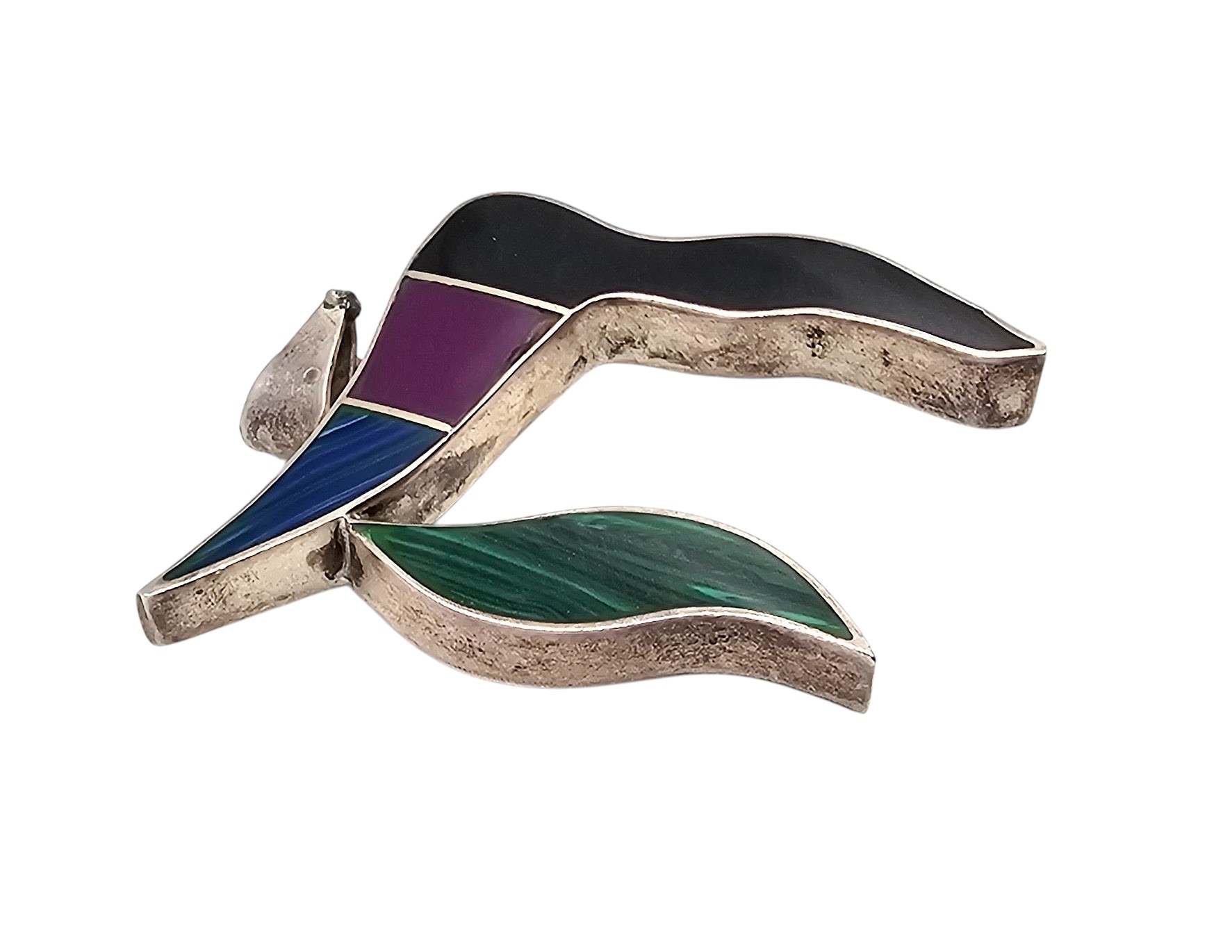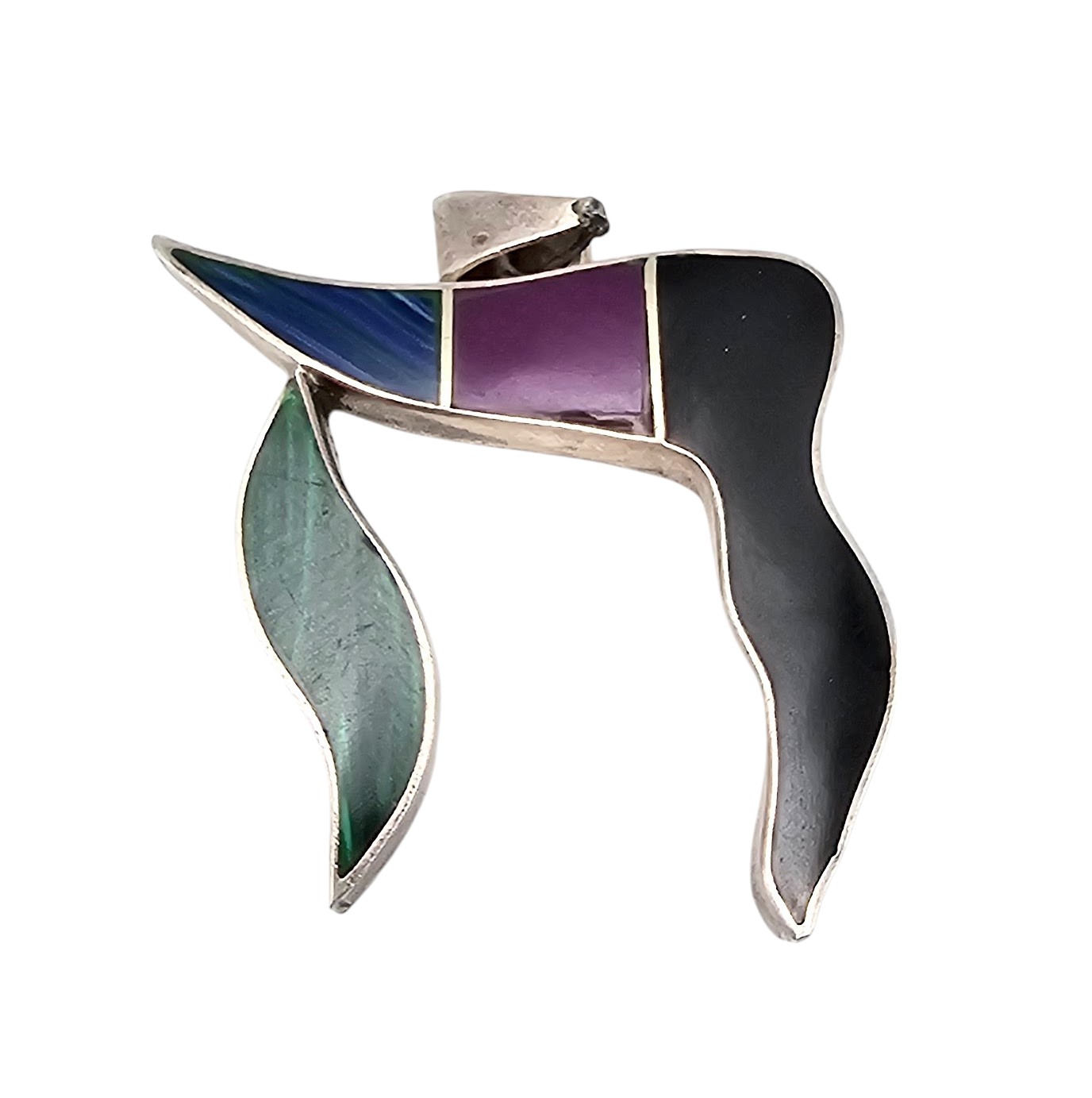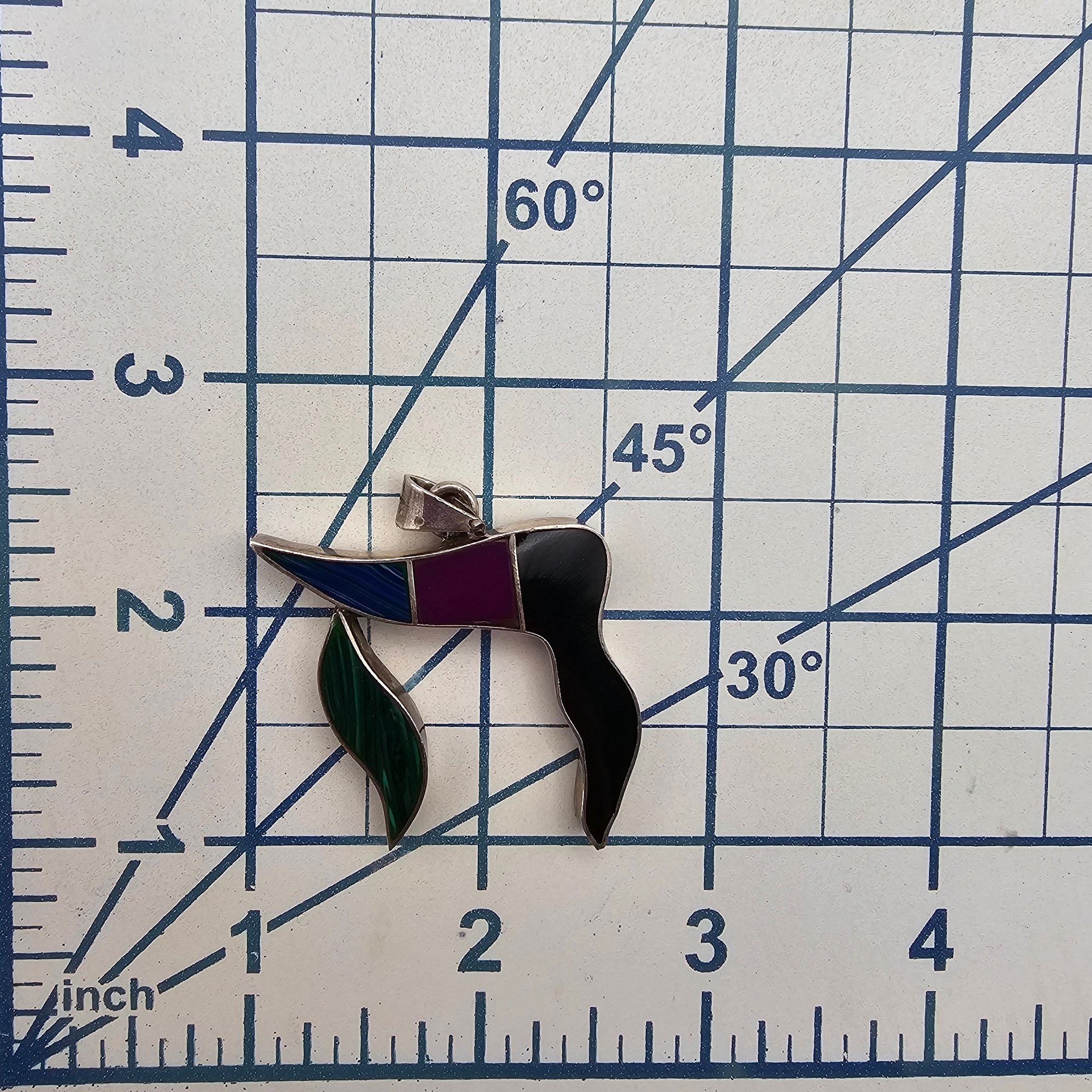 Mexico Multi Stone Sterling Silver Pendant 11.9 G