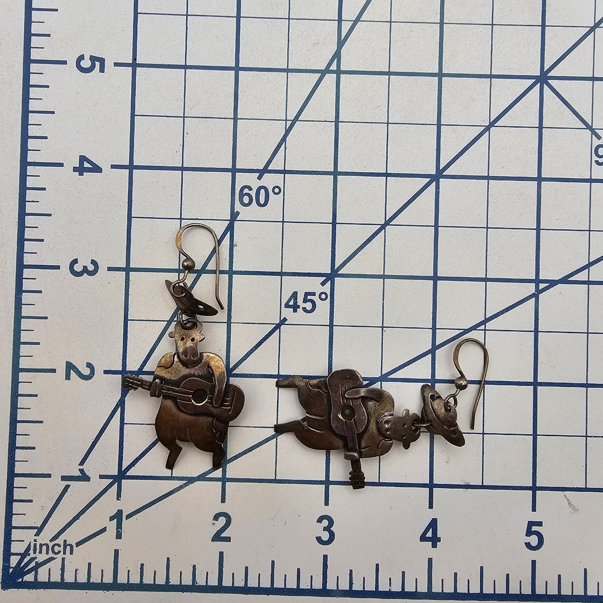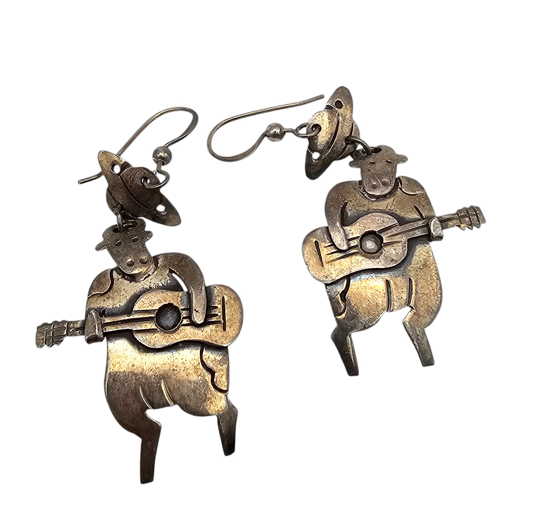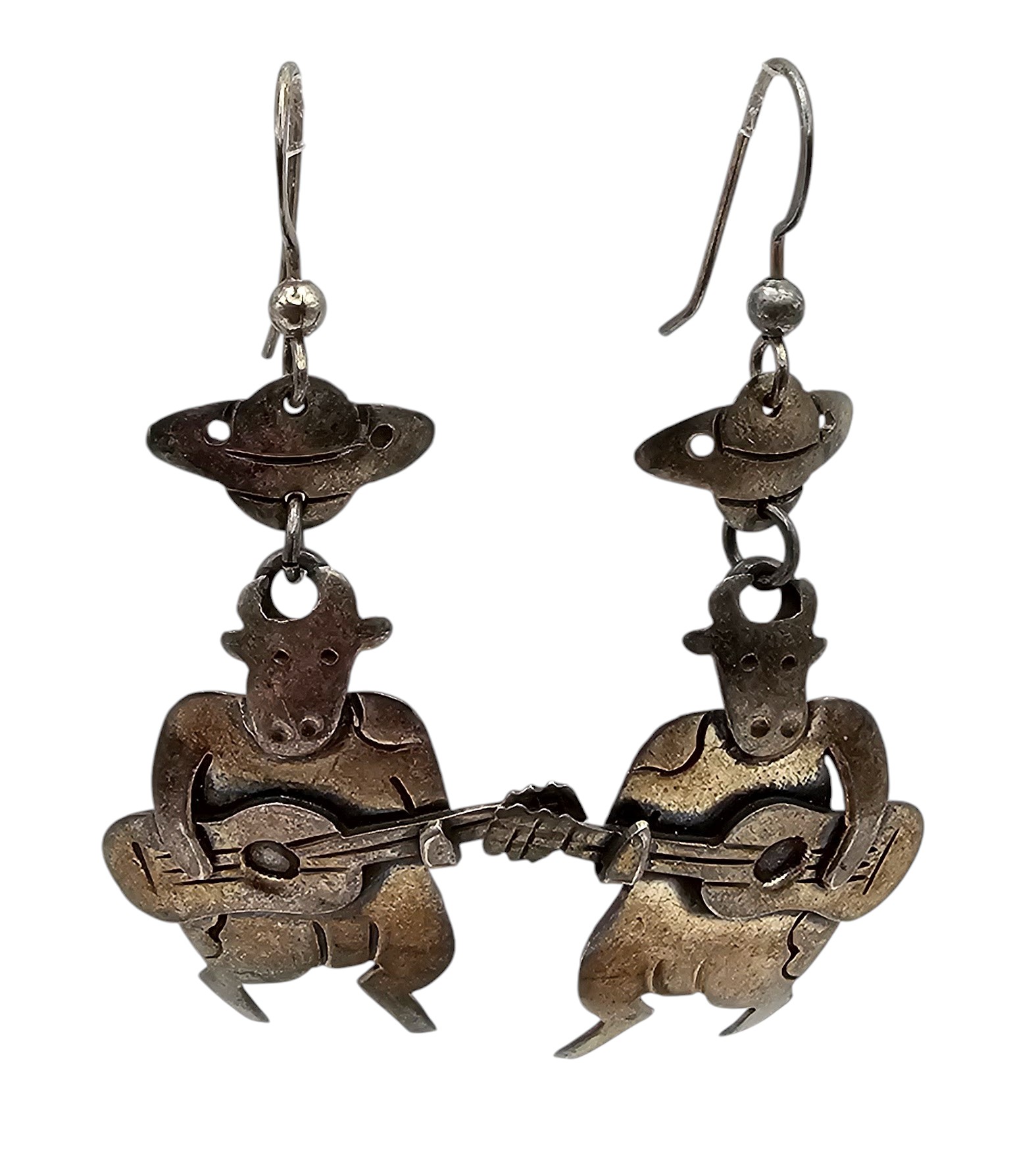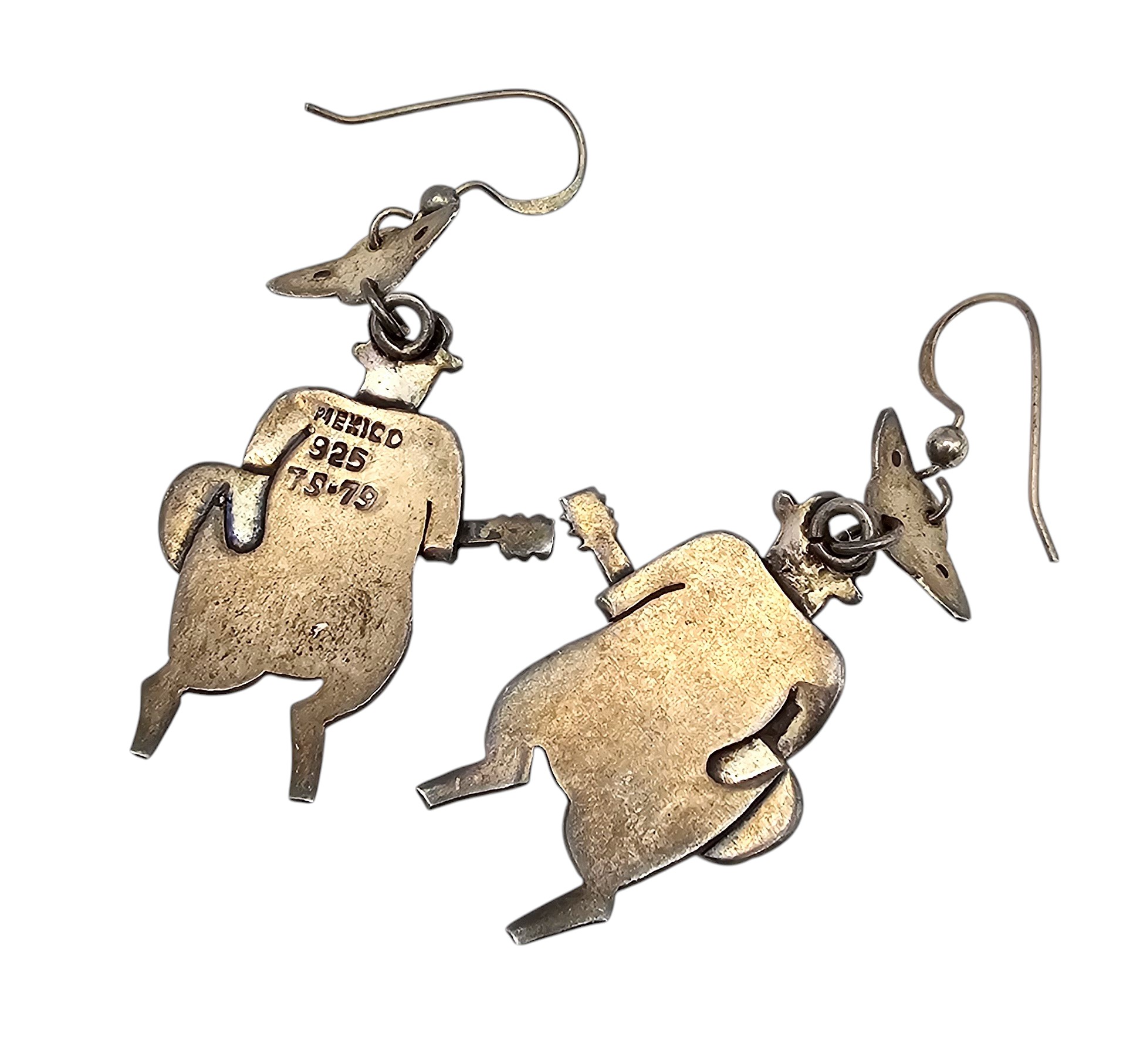 Mexico Taxco TS-79 Sterling Silver Musical Cow Drop Dangle Earrings 10 G