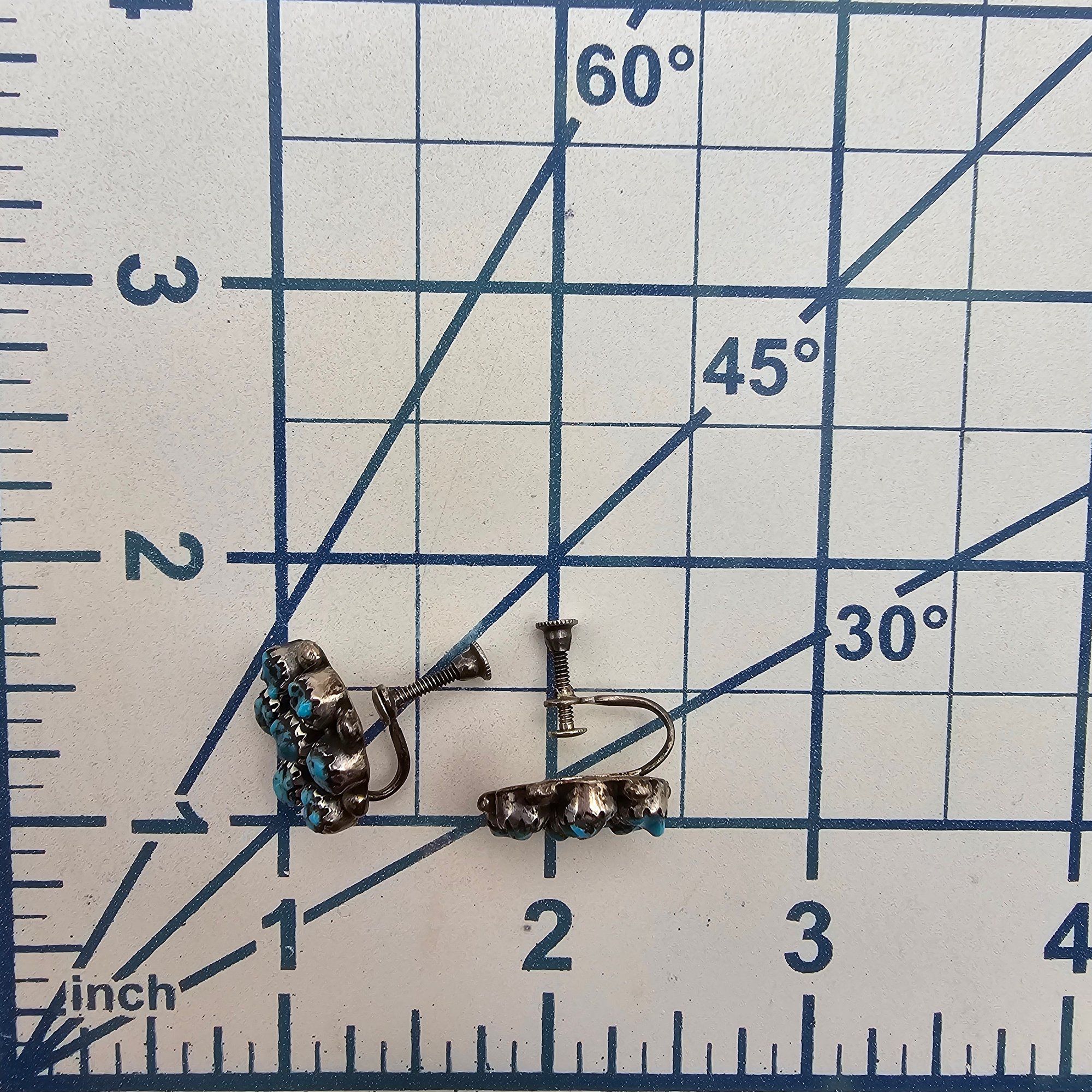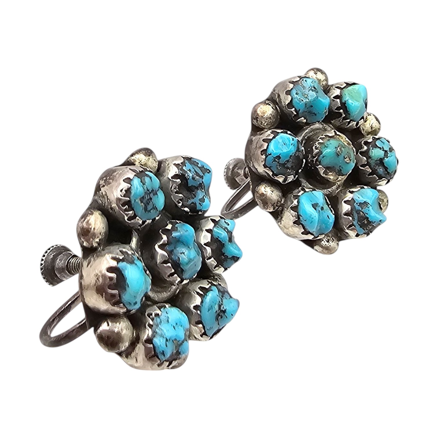 Navajo Turquoise Cluster Sterling Silver Earrings 6.5 G
