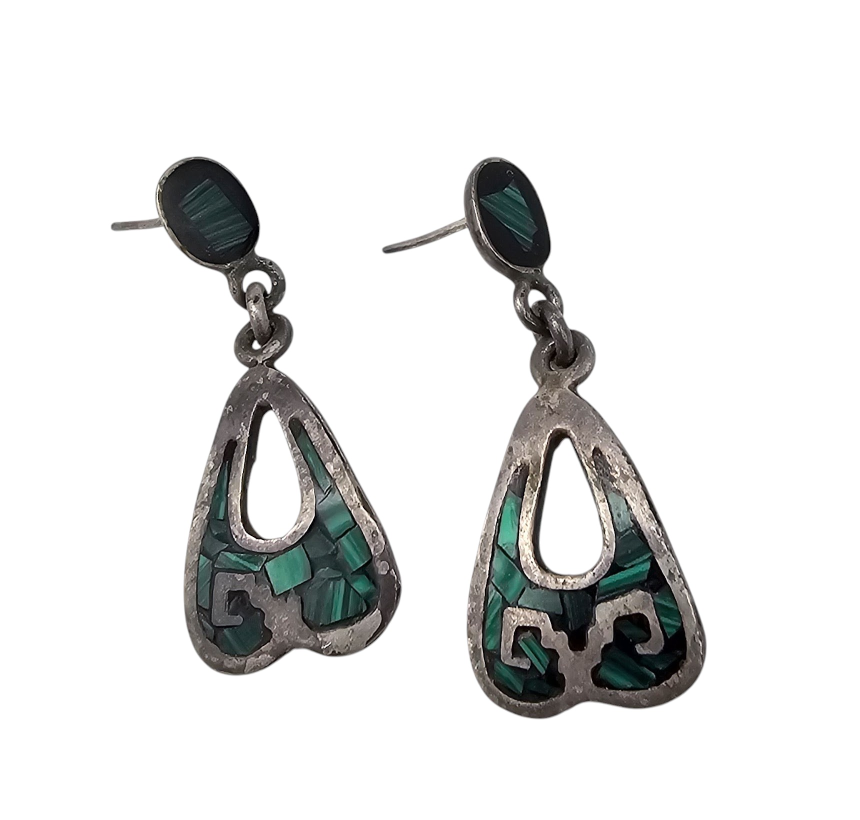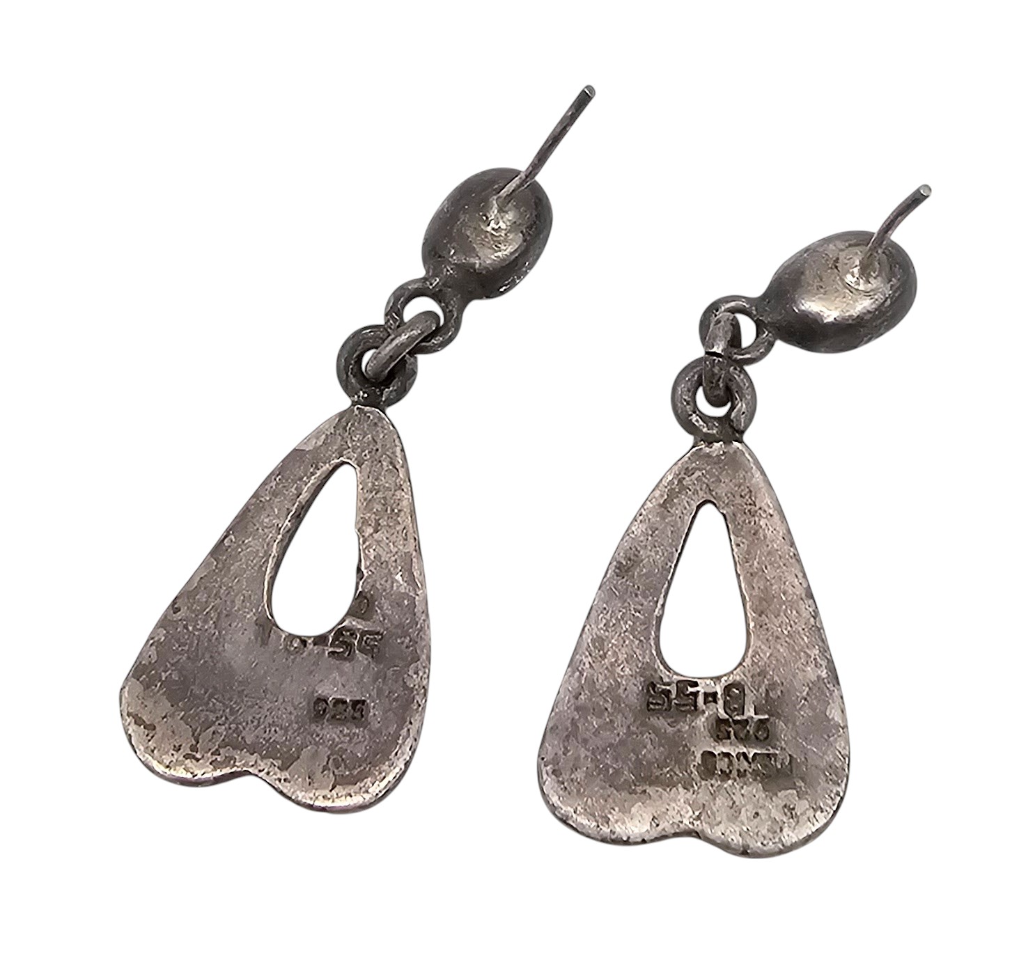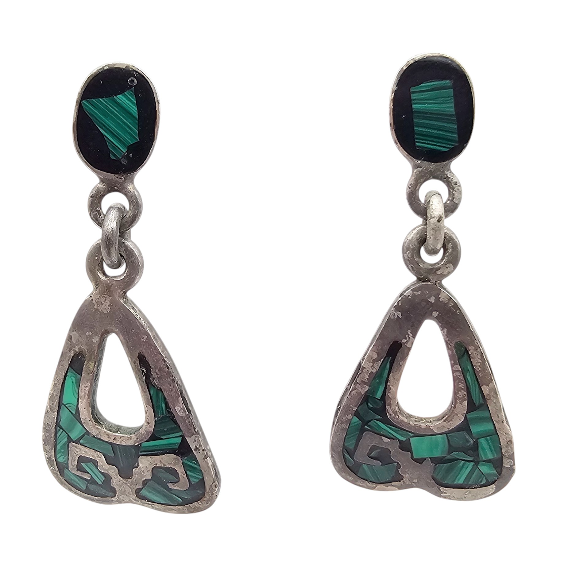 Mexico Taxco Crushed Turquoise Sterling Silver Drop Dangle Earrings 8.5 G