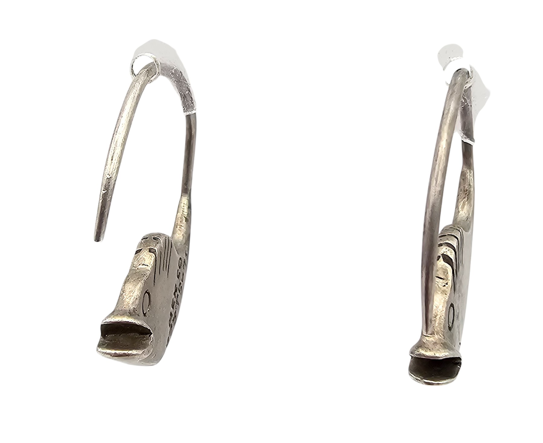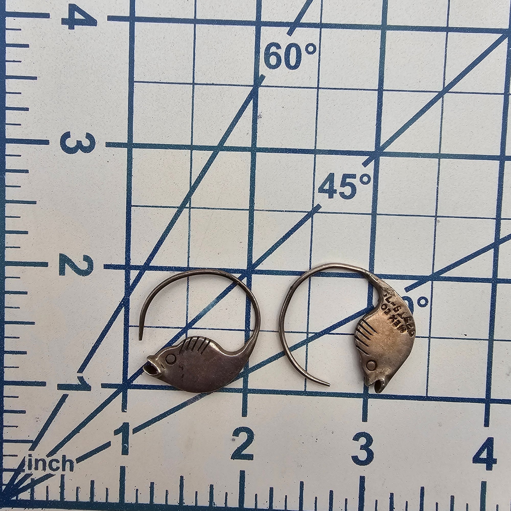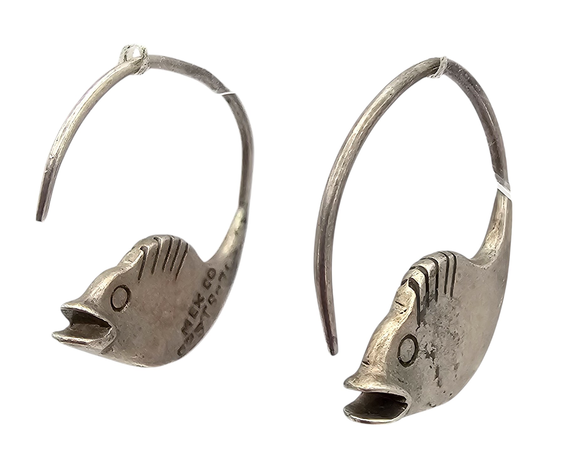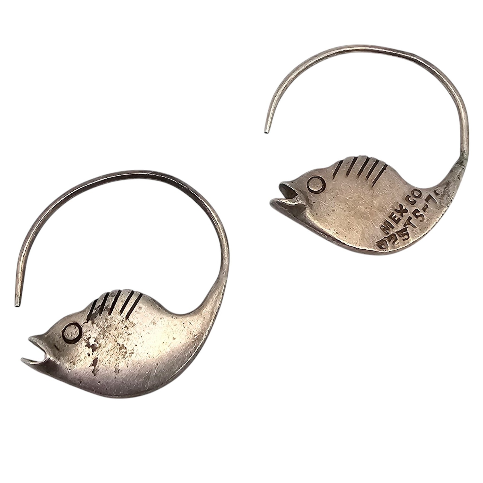 Mexico Taxco TS-79 Sterling Silver Fish Hoop Earrings 8.3 G