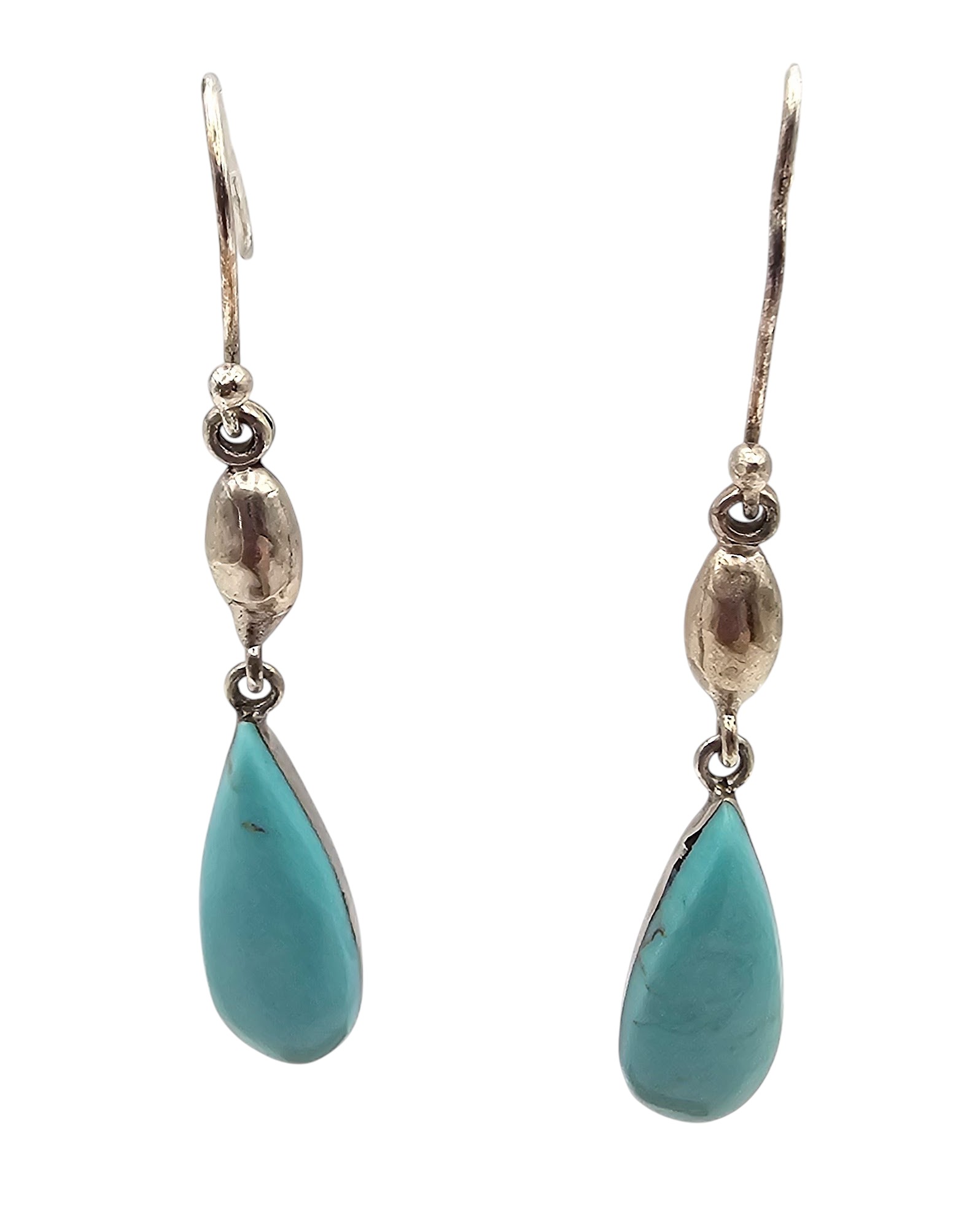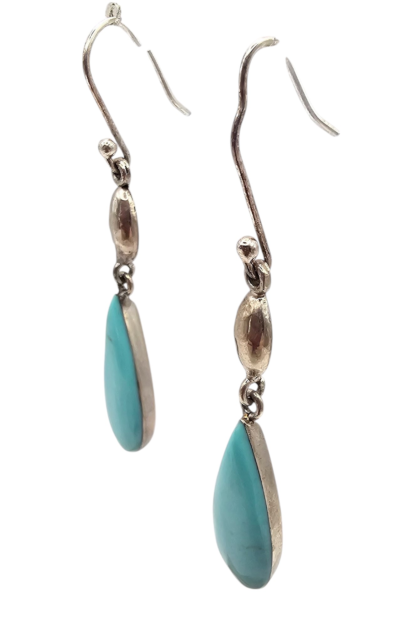 ATI Mexico Turquoise Sterling Silver Drop Dangle Earrings 4.6 G