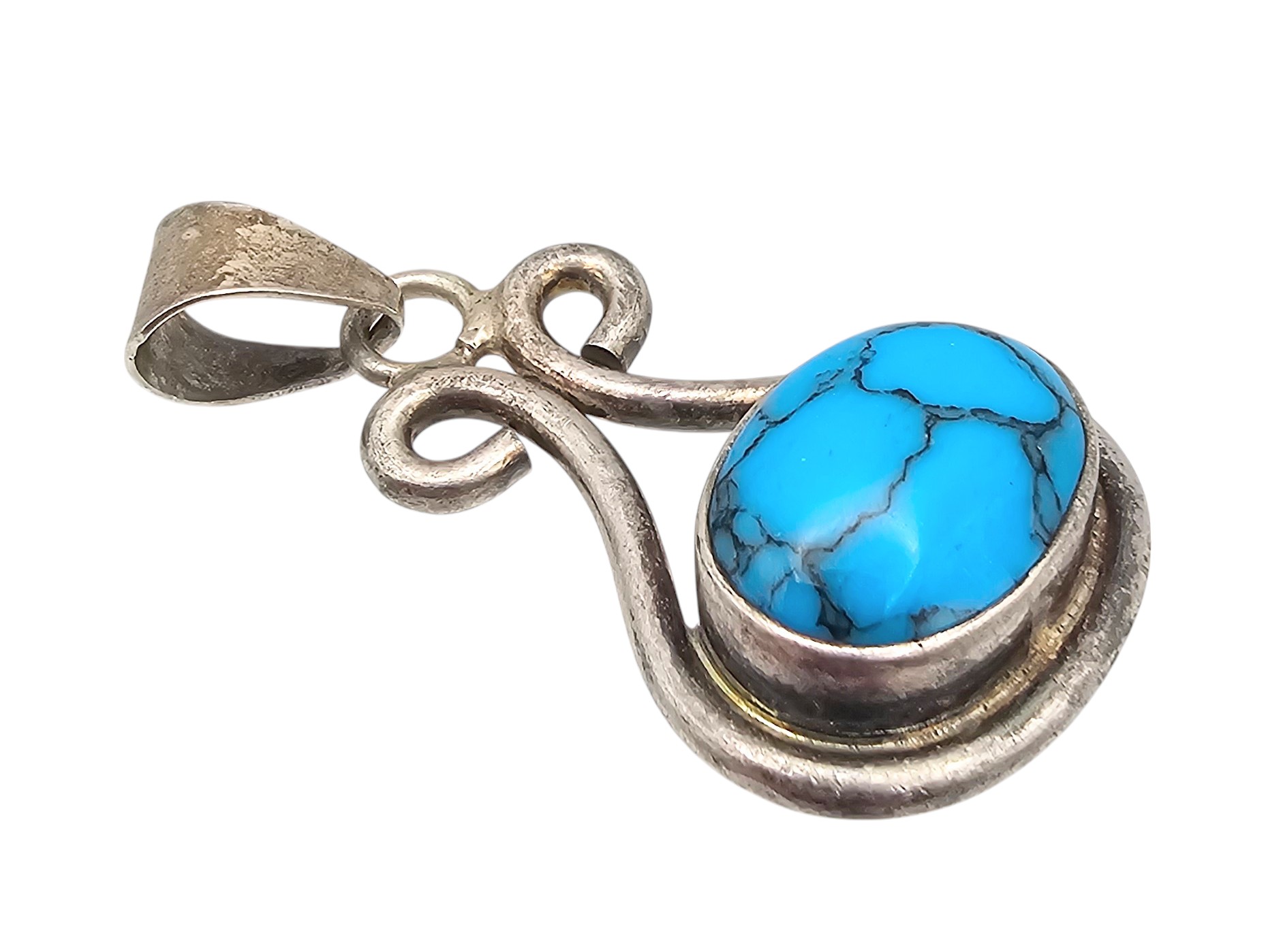 Mexico Taxco TW-76 Turquoise Sterling Silver Pendant 12.4 G