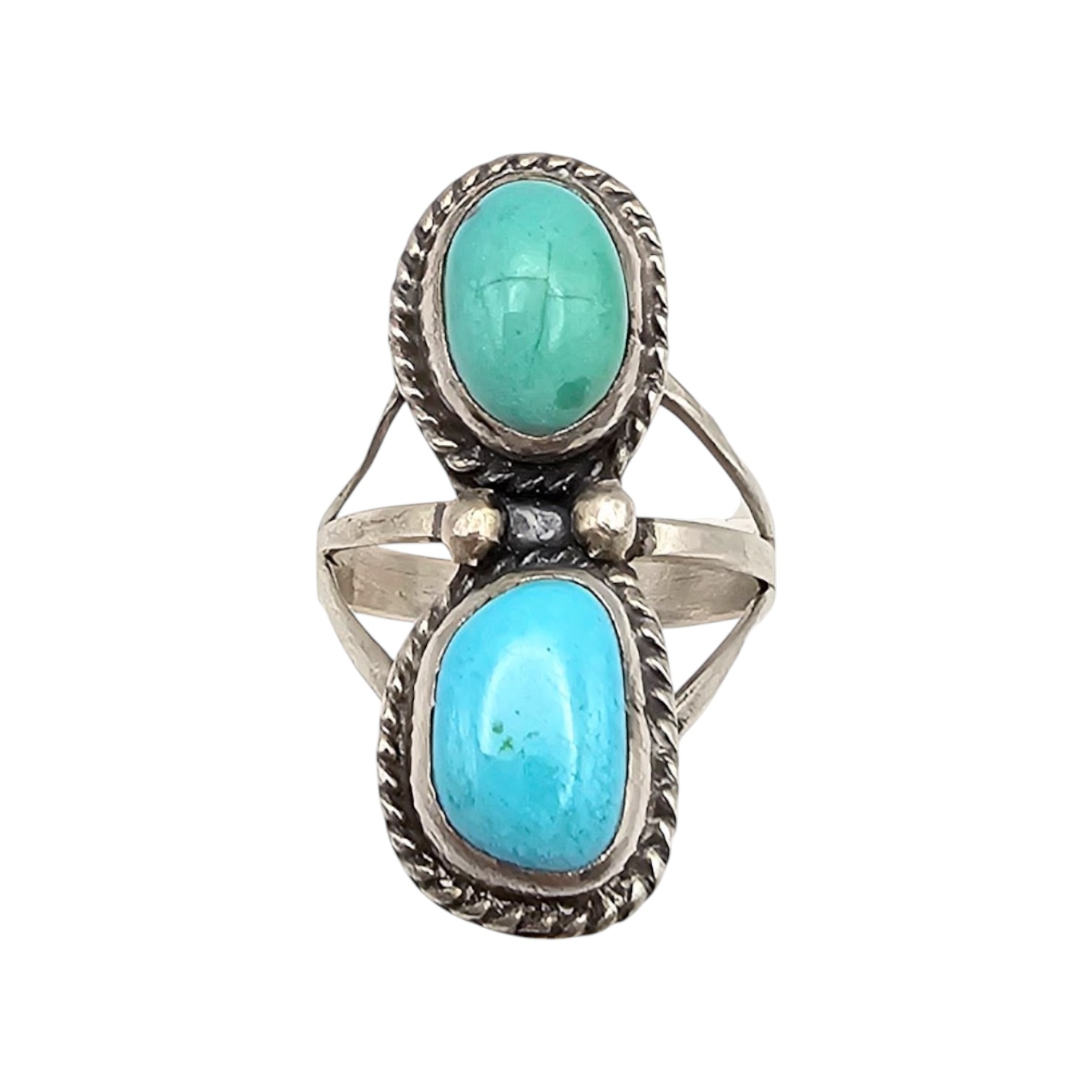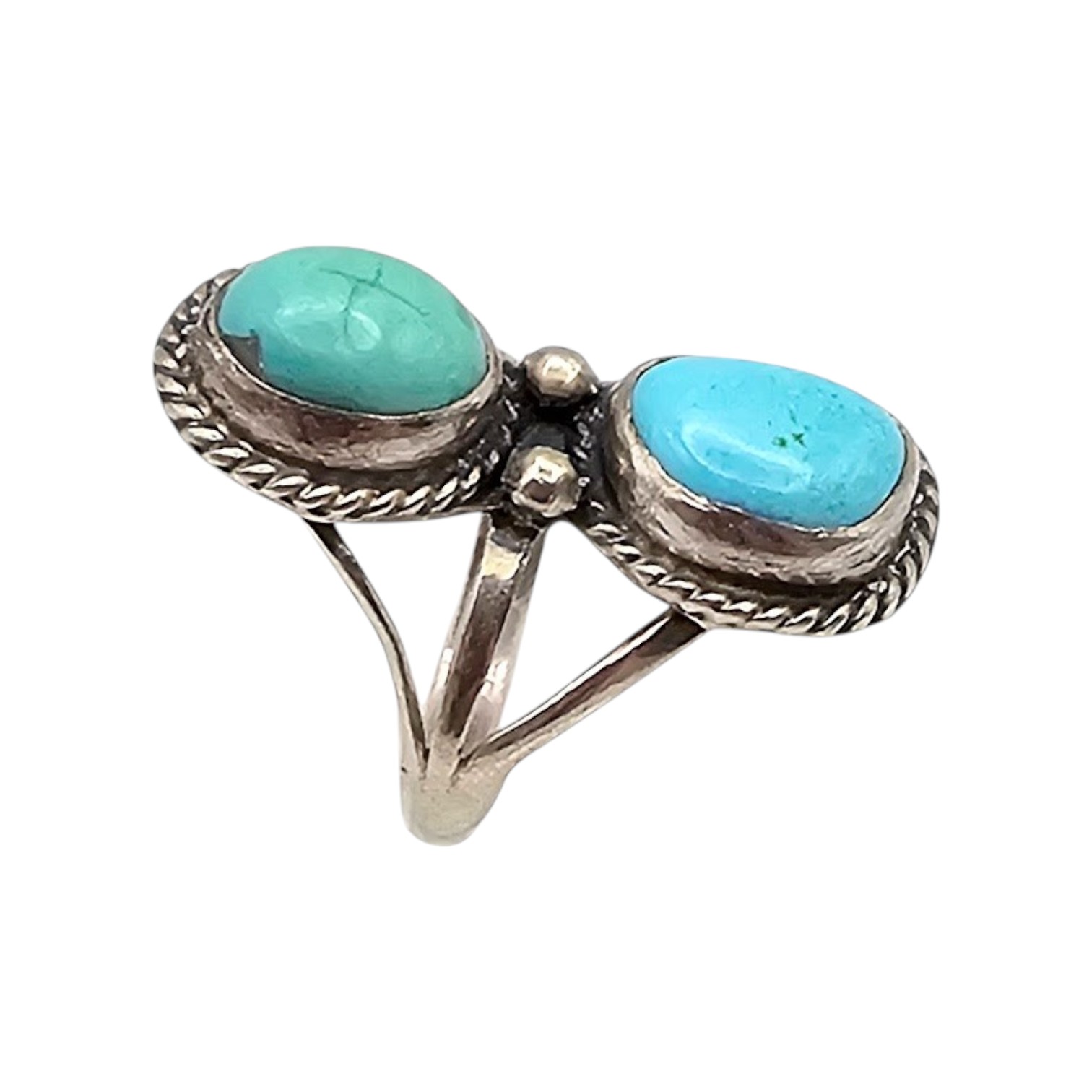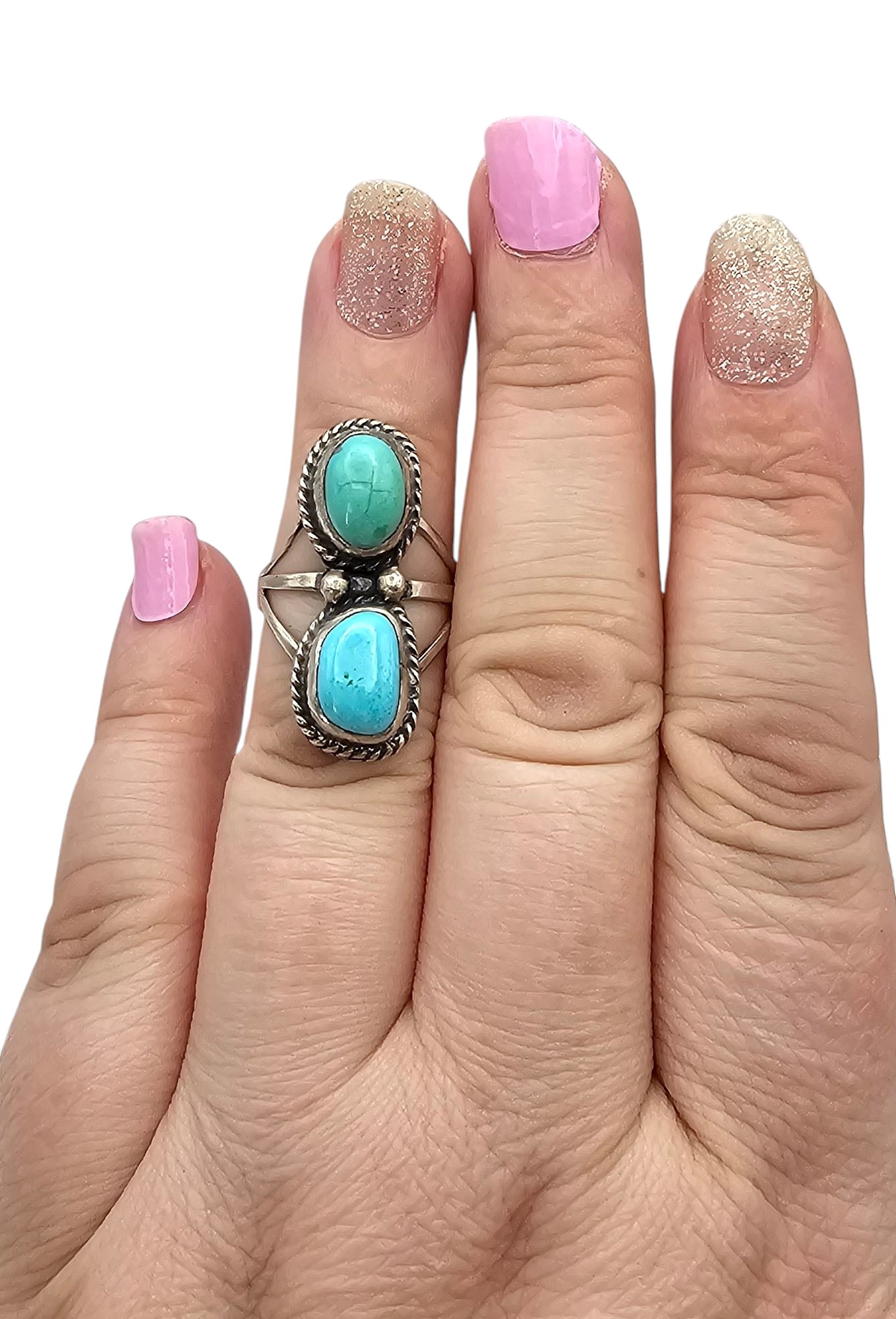 Navajo Double Turquoise Sterling Silver Ring Size 5.75 5.5 G