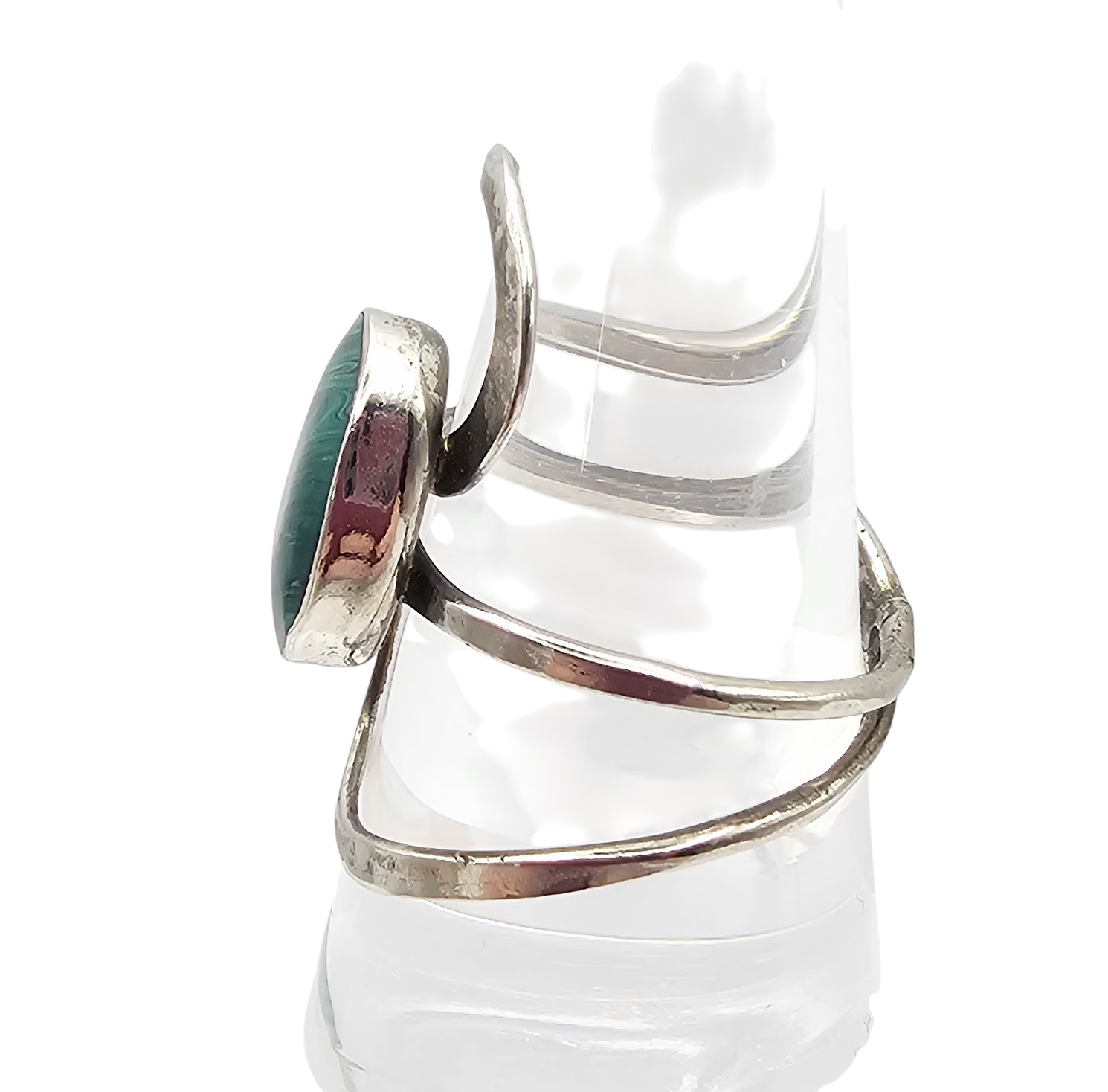 Mexico Malachite Sterling Silver Modernist Ring Size 8.5 3.9 G