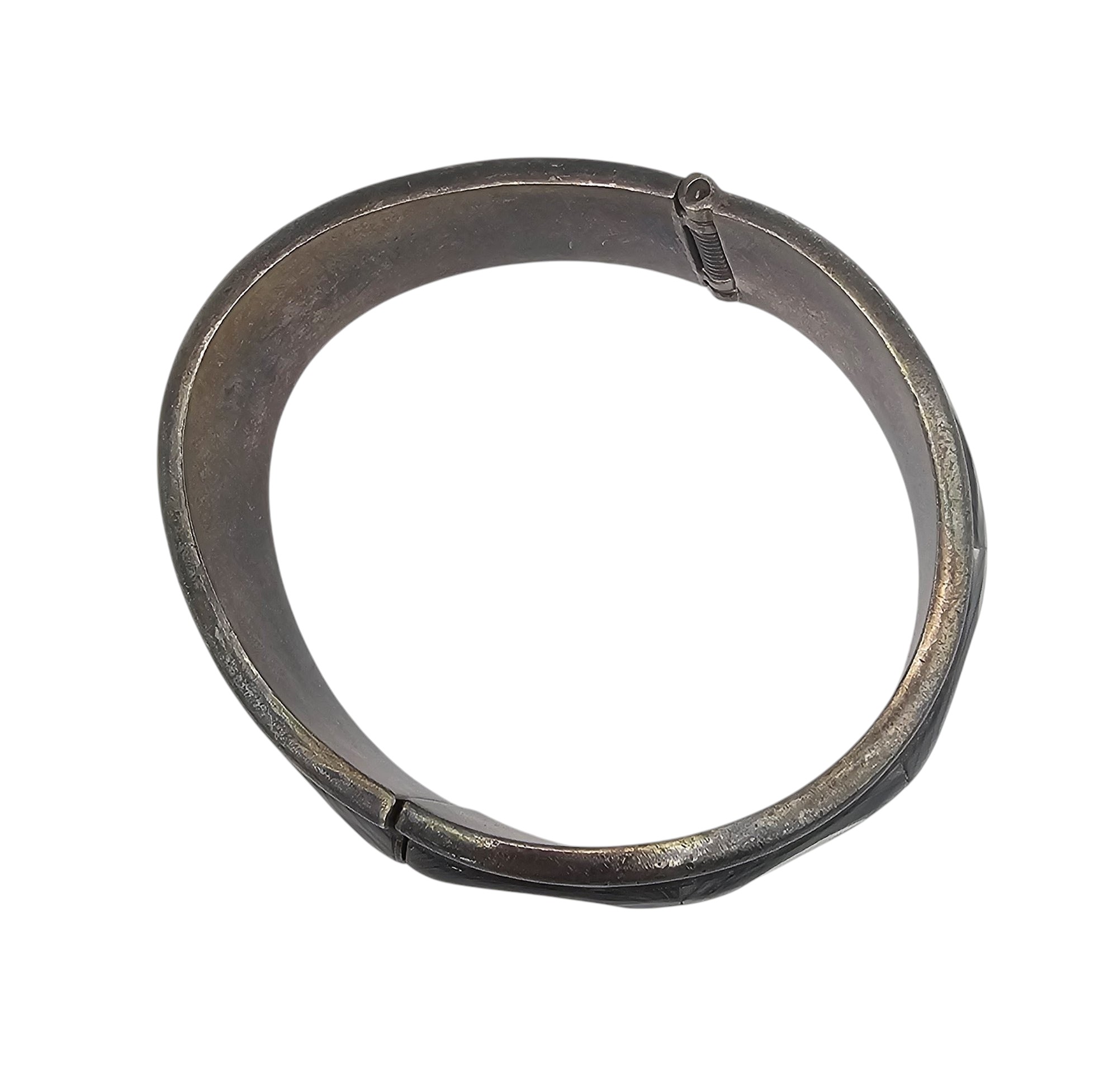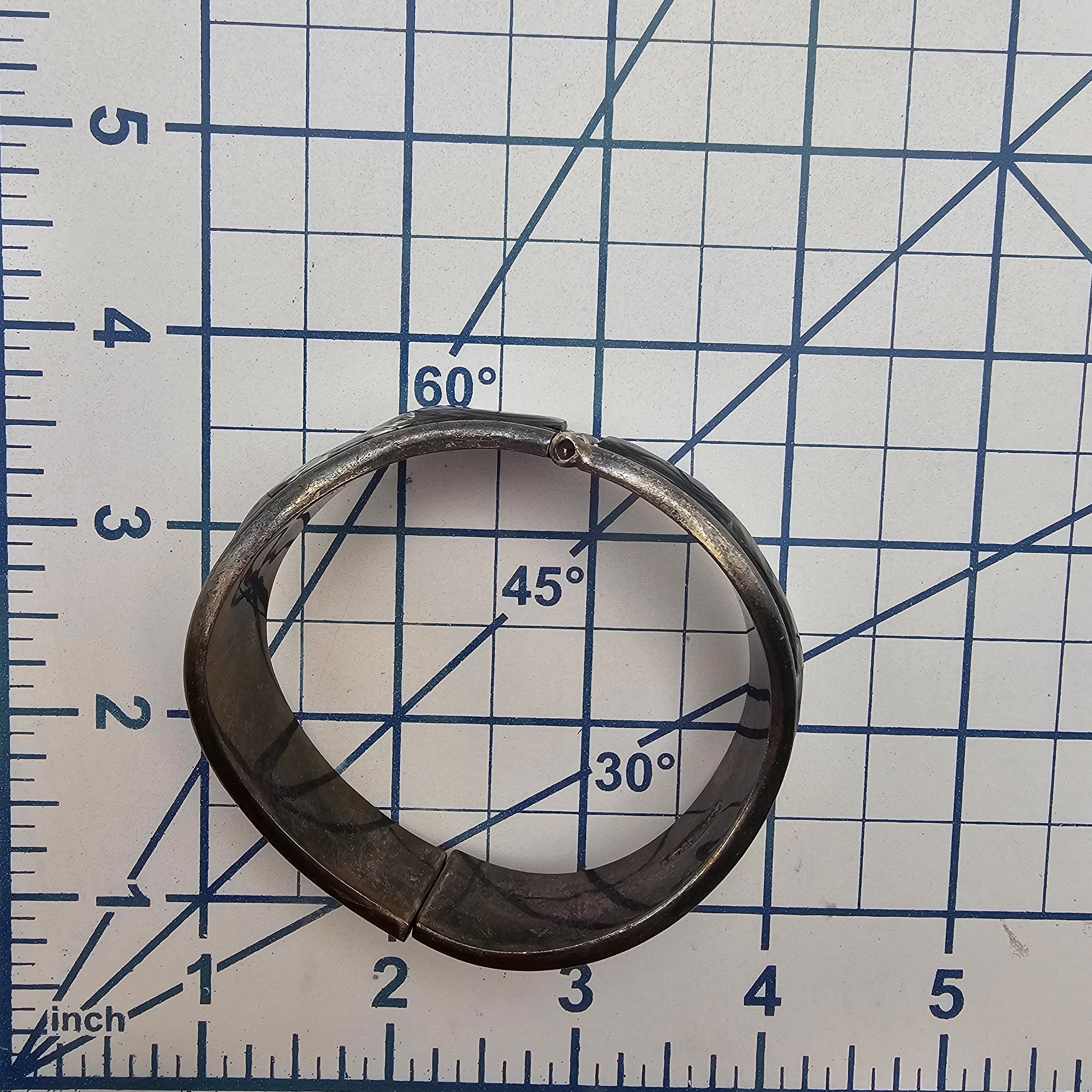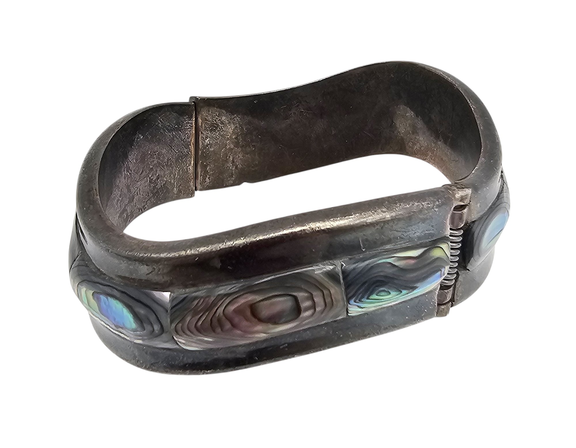 Mexico Abalone Sterling Silver Wave Hinge Bangle Bracelet 57.1 G