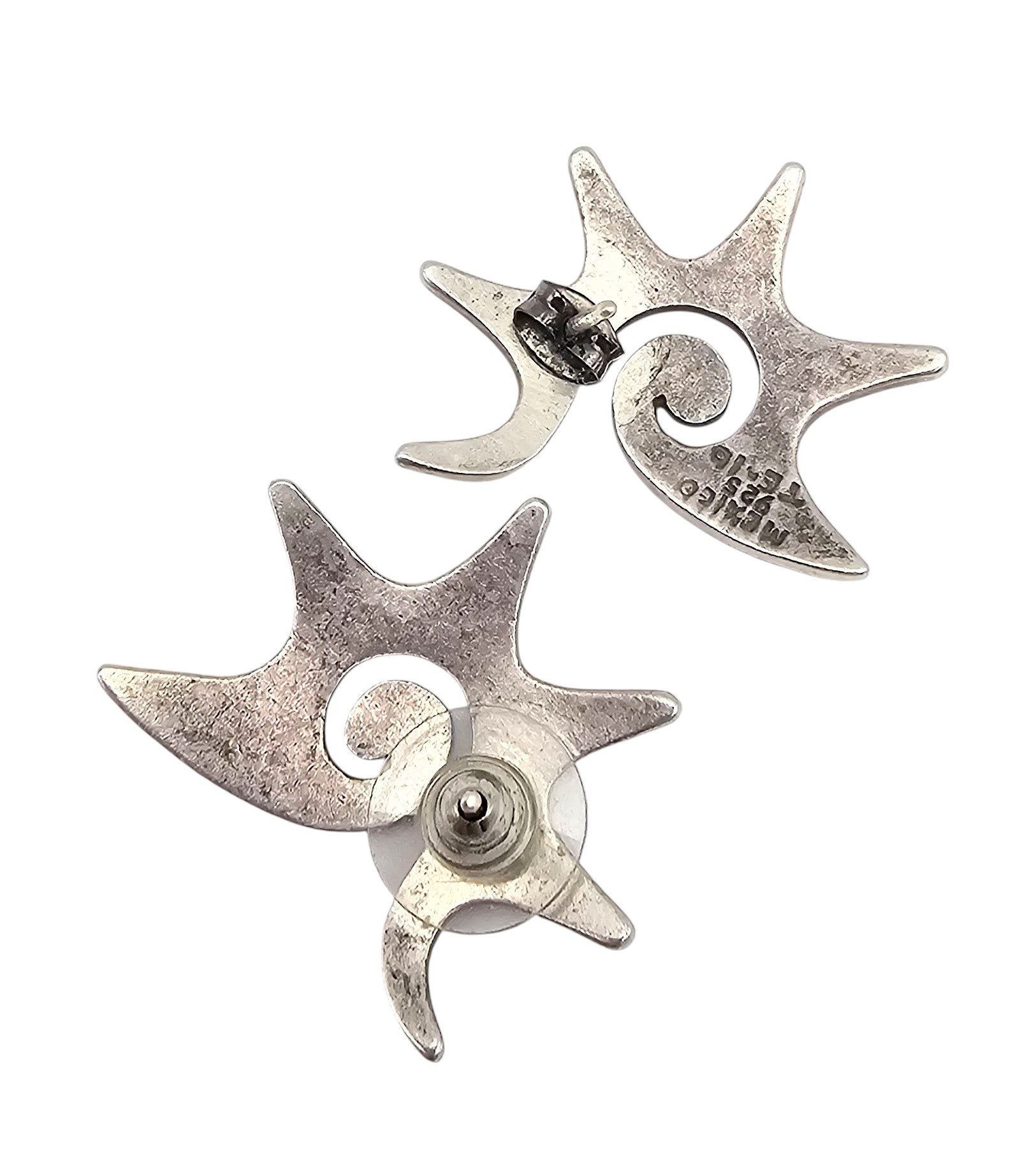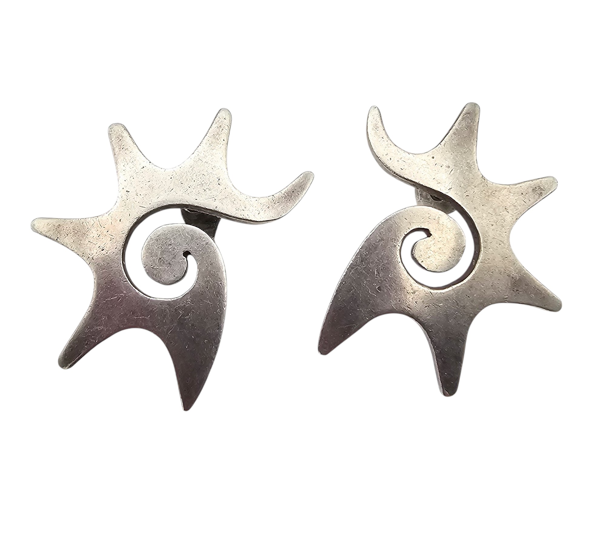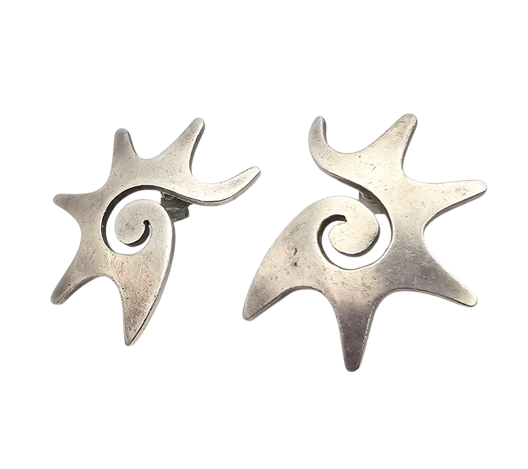 Mexico Taxco TE-16 Sterling Silver Spike Swirl Earrings 10.2 G