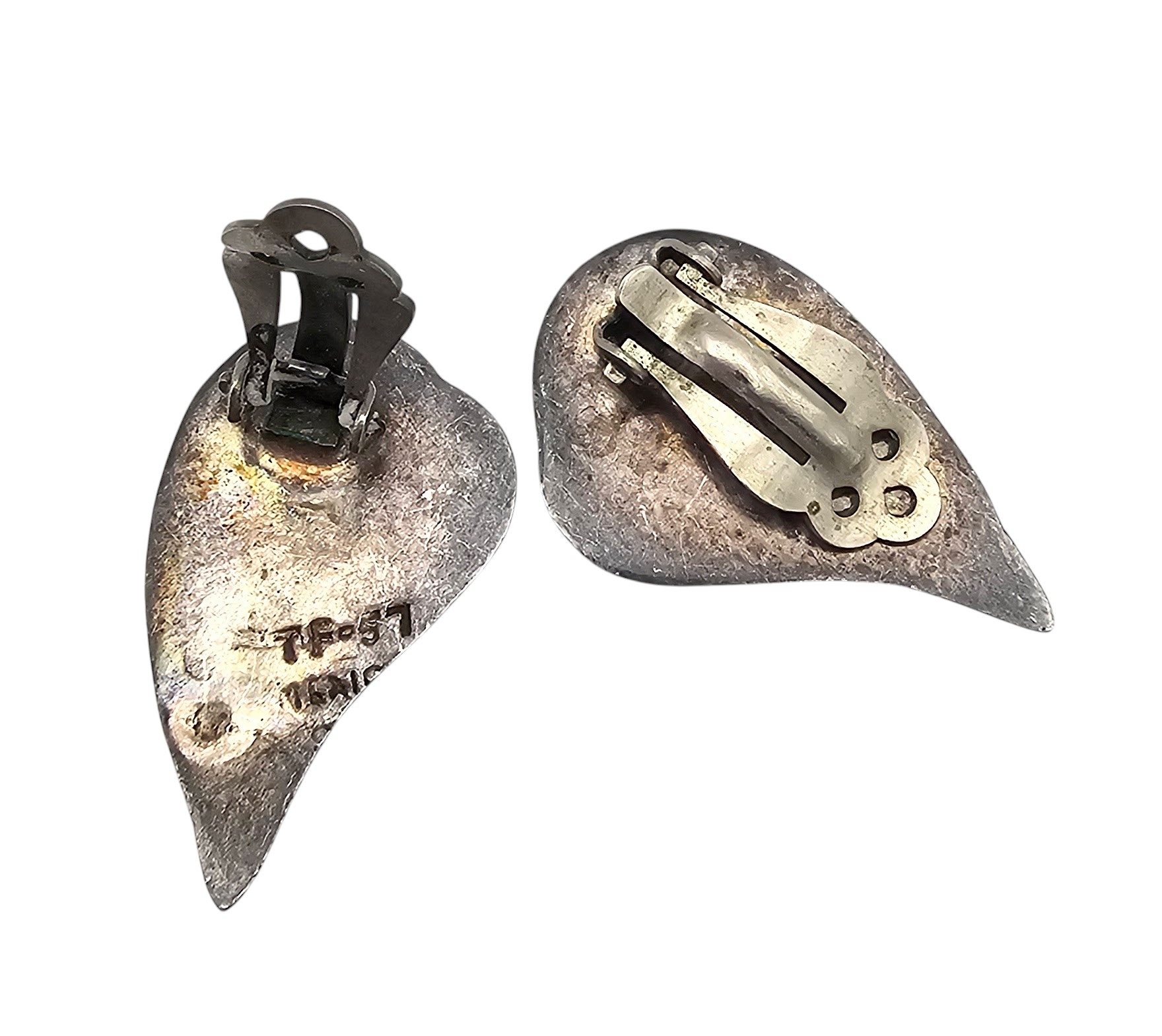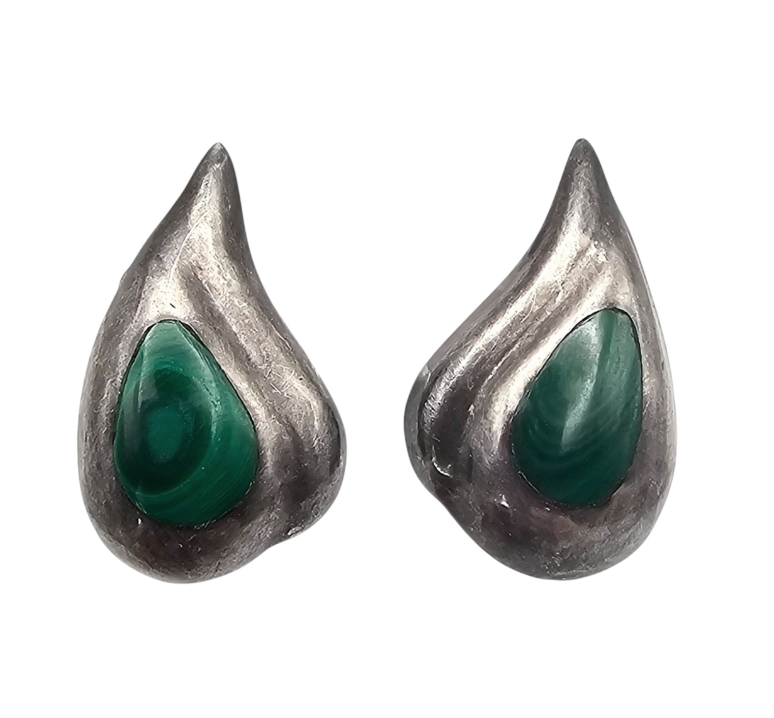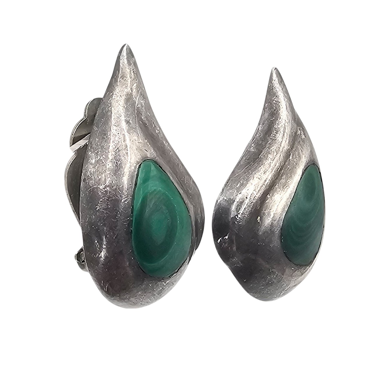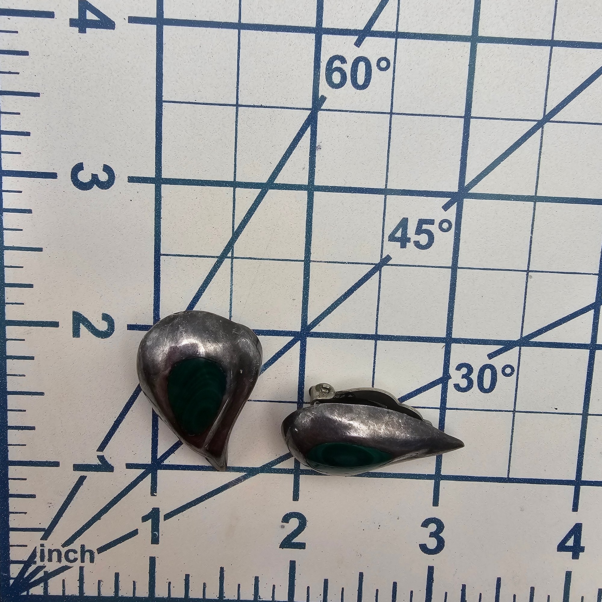 Mexico Taxco TF-57 Malachite Sterling Silver Earrings 13.3 G