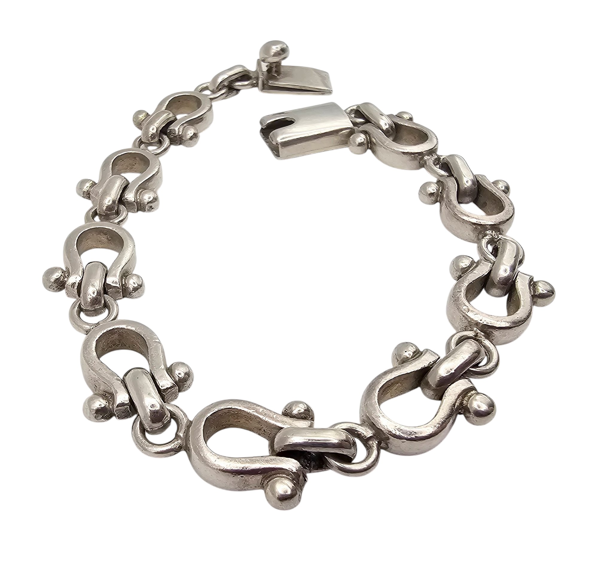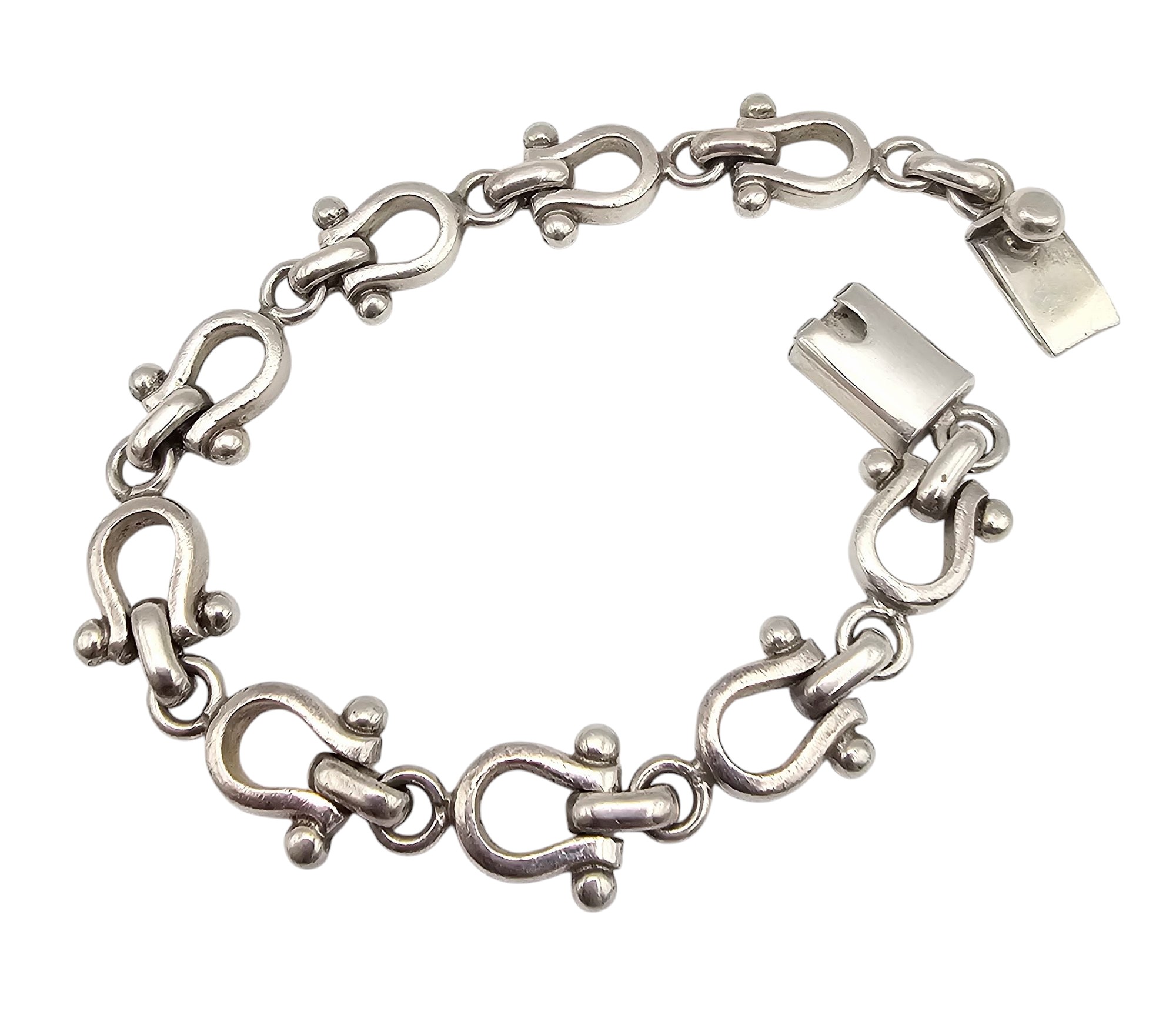 Mexico Sterling Silver Horse Bridle Hinge Link Bracelet 28.6 G