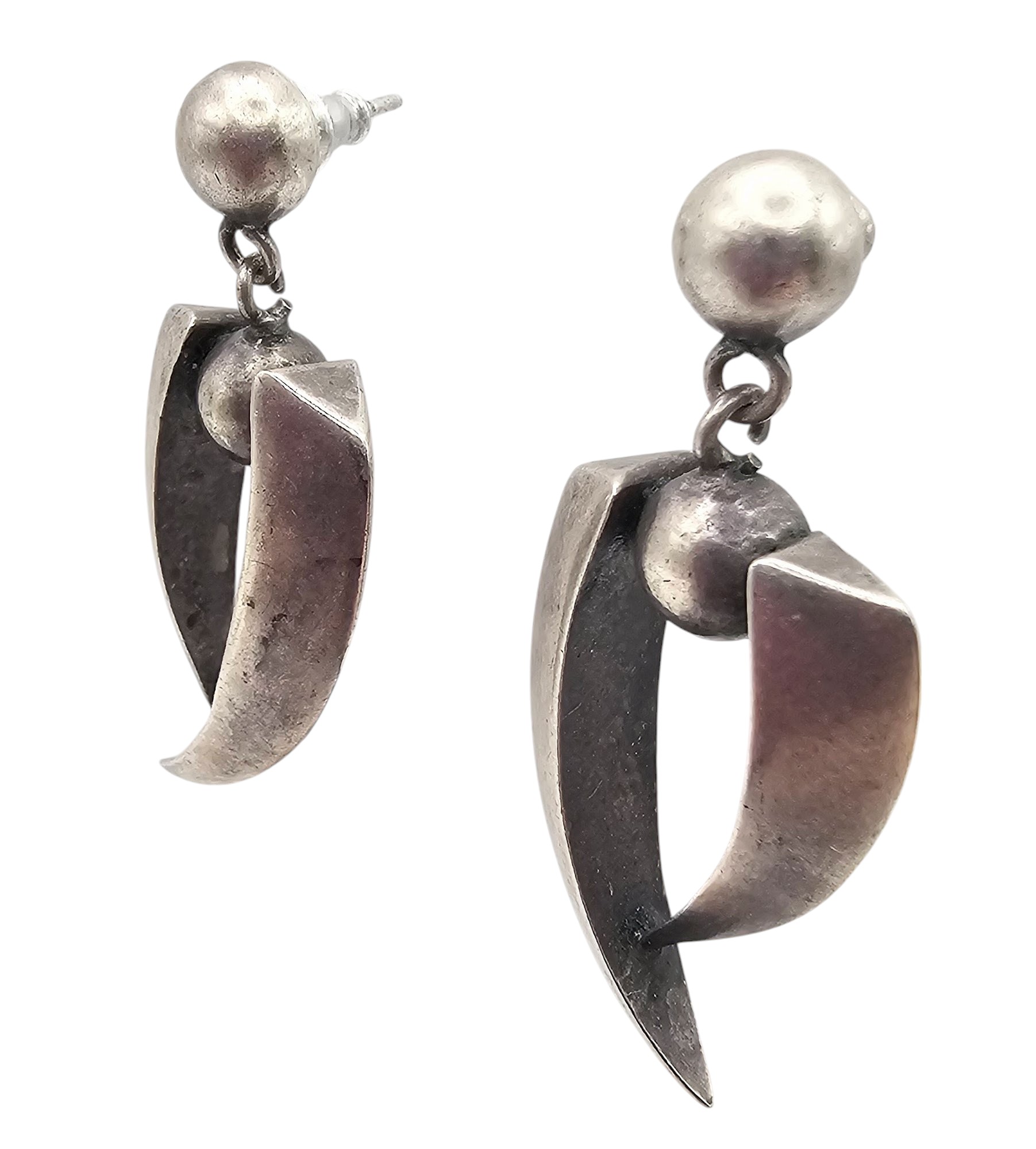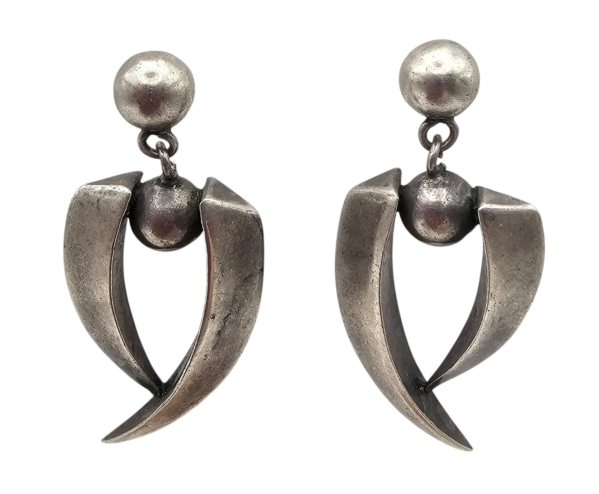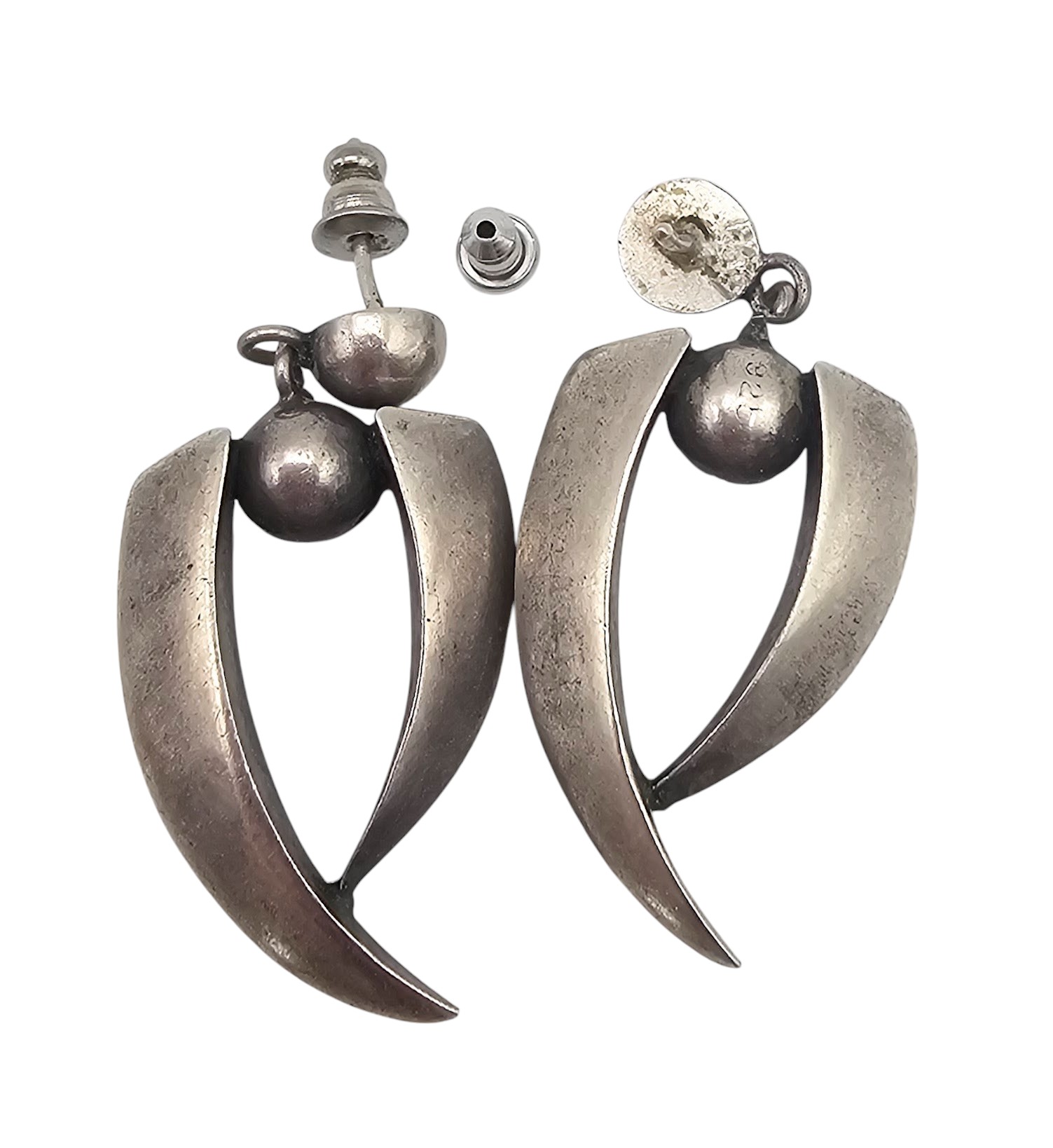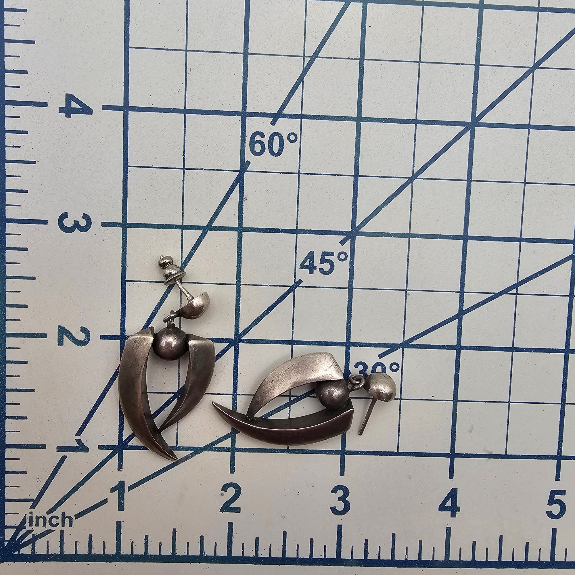 Sterling Silver Modernist Circle Spike Drop Dangle Earrings 7.6 G