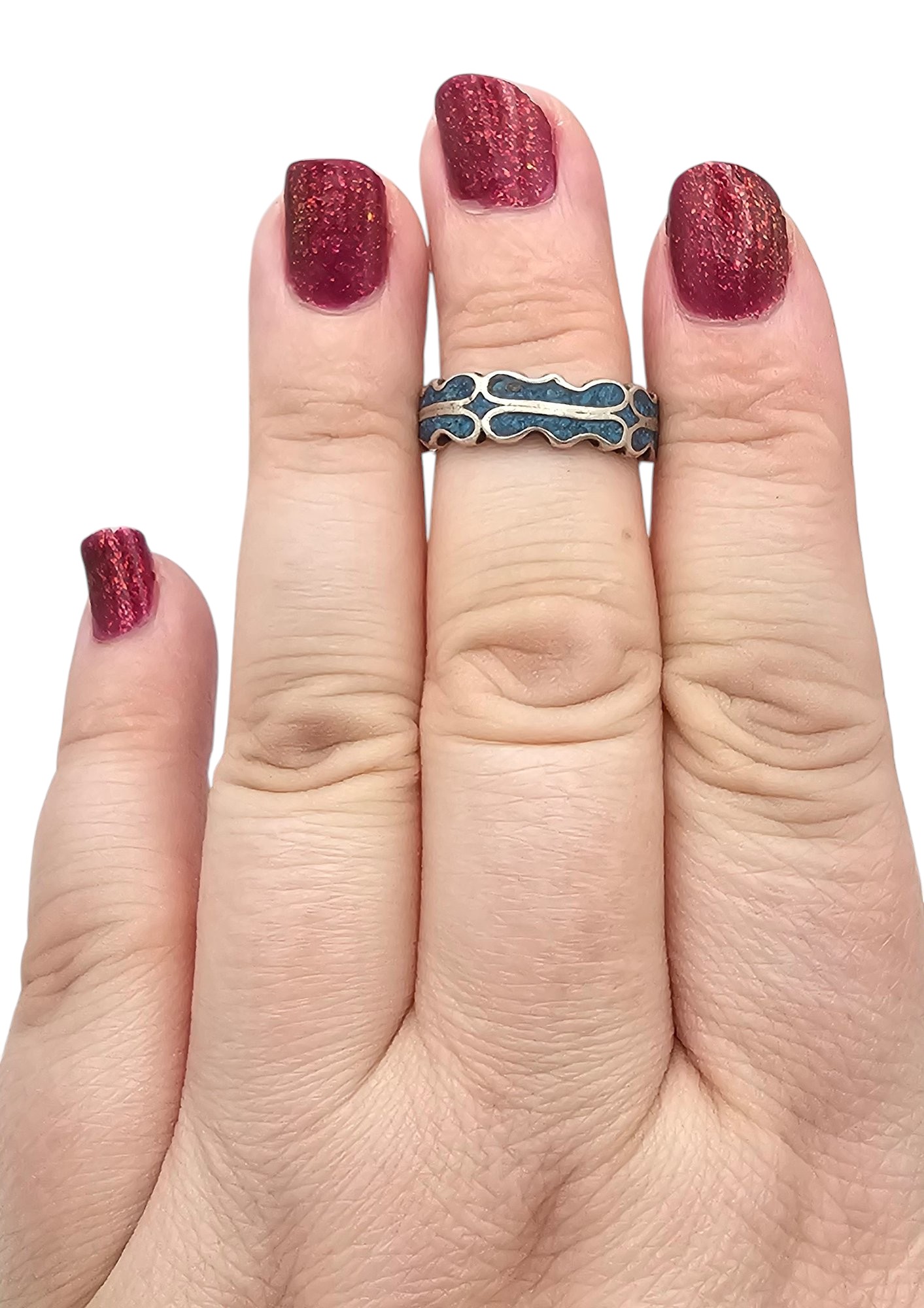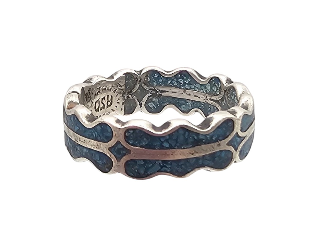 Mexico Crushed Turquoise Sterling Silver Ring Size 6.25 2.8 G