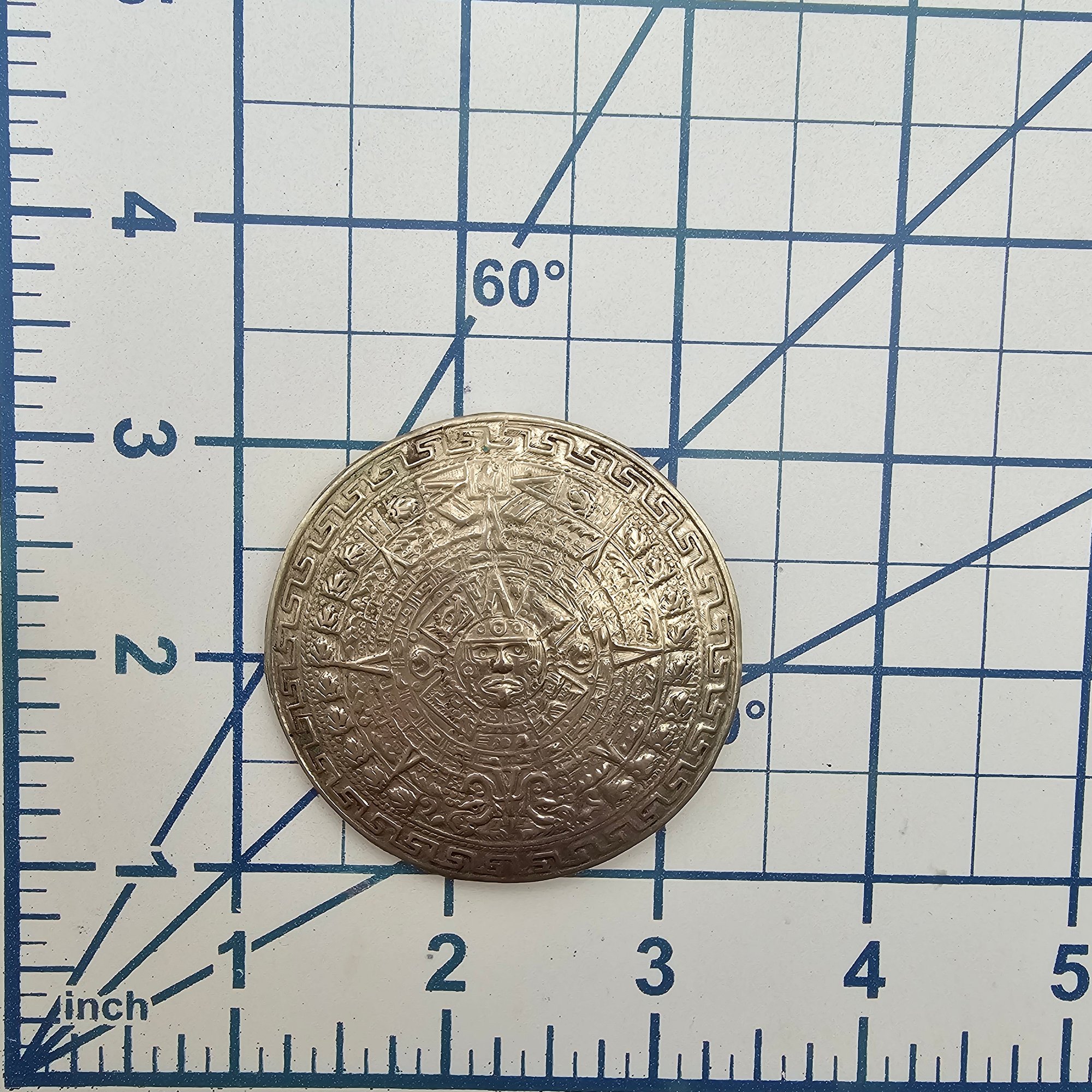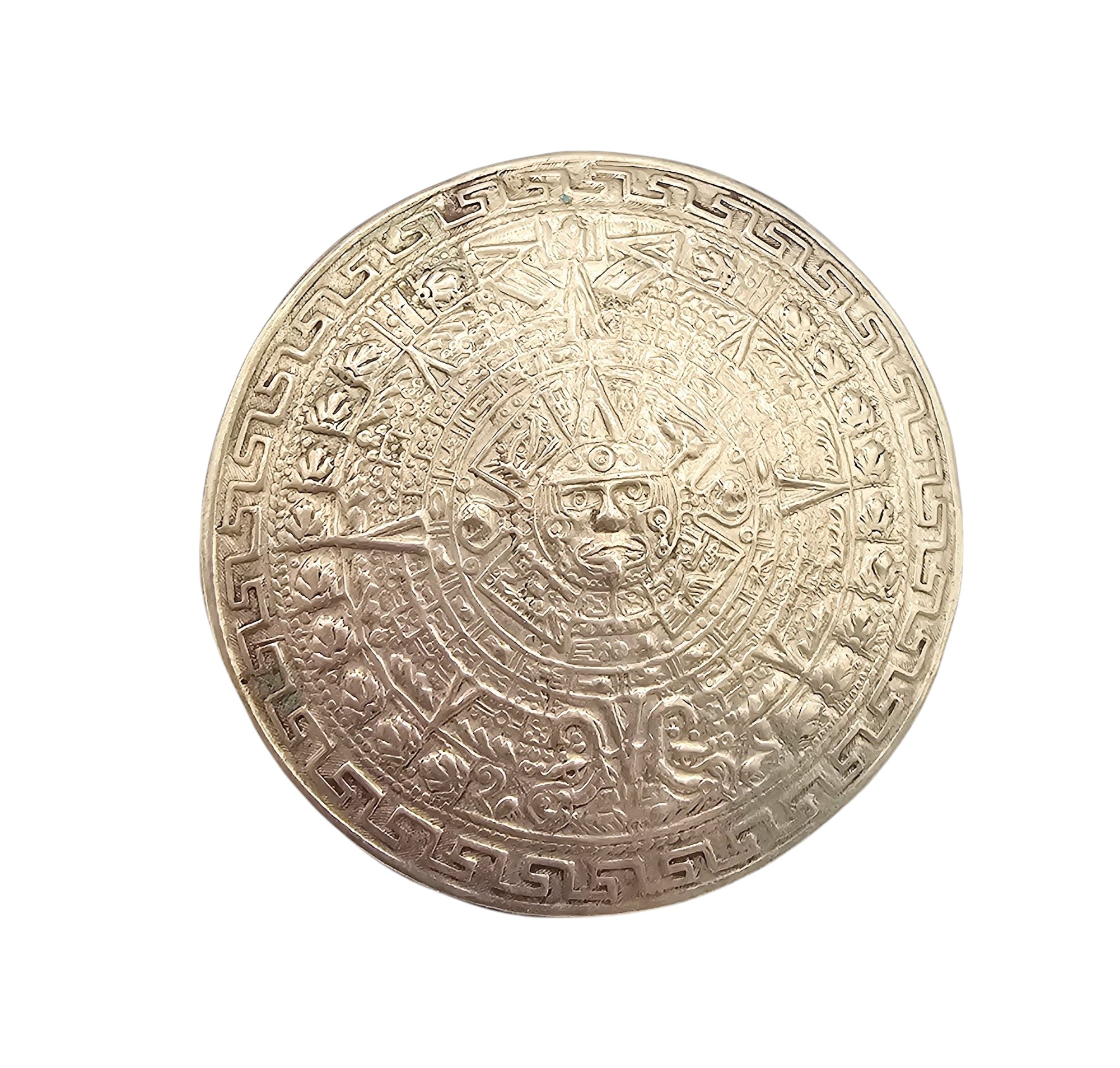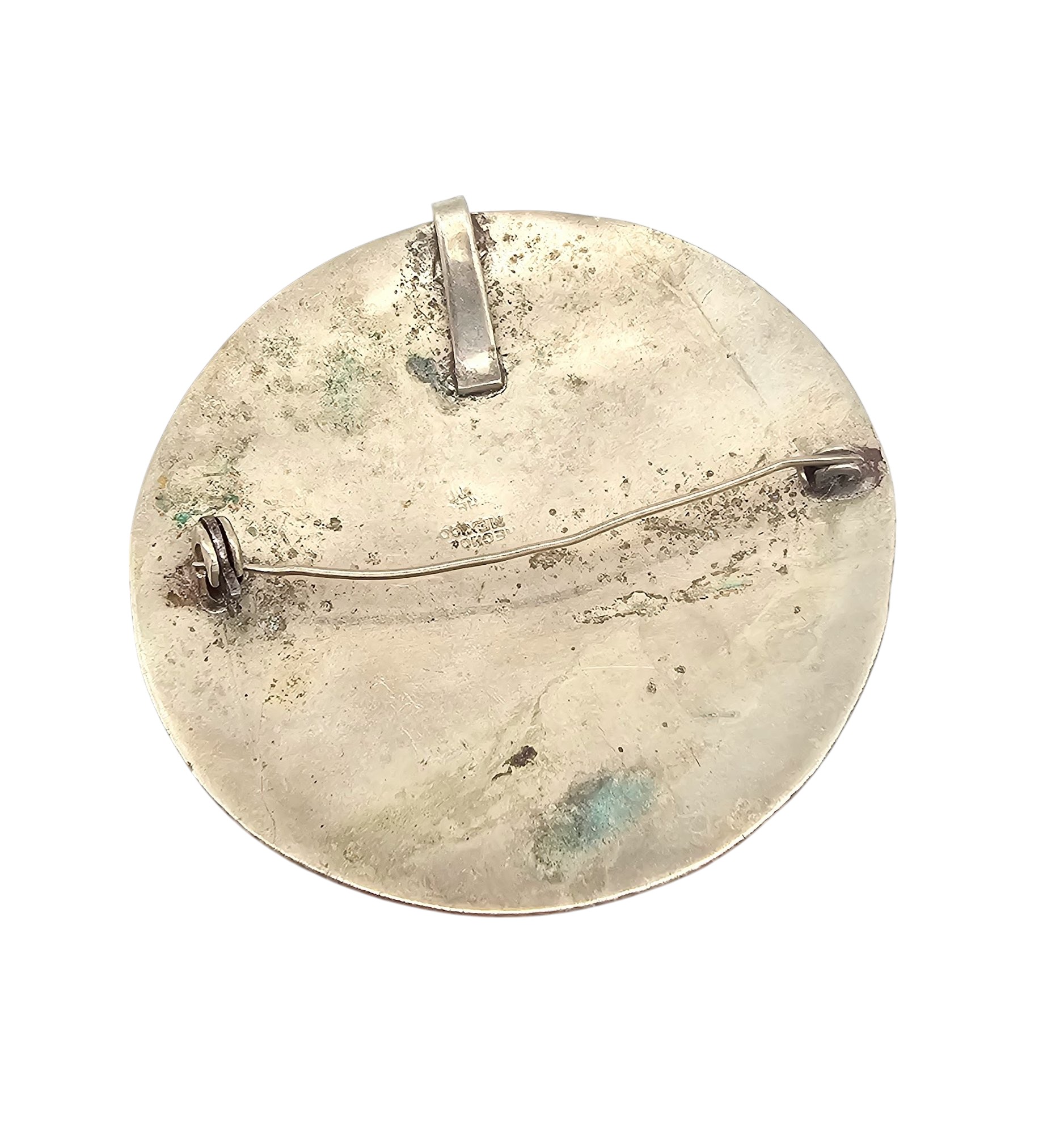 Mexico Sterling Silver Aztec/Mayan Style Round Brooch Pendant 16 G